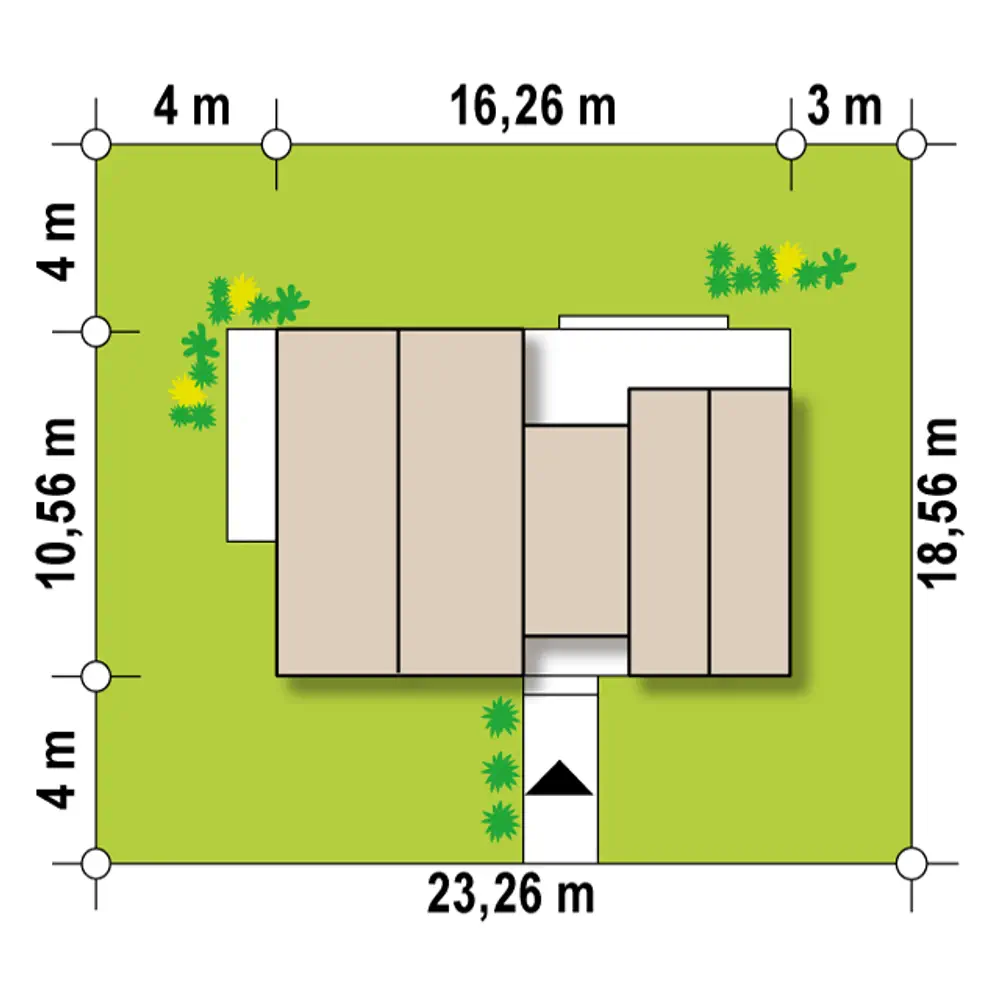 Ten dom o stosunkowo niewielkiej powierzchni (115 m2!) jest idealny dla rodziny 2+2, a nawet 2+3 i większej. Największa część budynku to wydzielona część nocna z czterema pokojami i łazienkami. Jeden pokój posiada własną łazienkę i nadaje się idealnie na sypialnię rodziców. W pokoju znajdującym się w sąsiedztwie sieni przewidziano gabinet. Daje to możliwość aranżacji wejścia bezpośrednio z sieni. Pozostała część domu to otwarta na ogród część dzienna. Kuchnia posiada funkcjonalną spiżarnię i poziome okno doświetlające blat roboczy. Ciekawy układ salonu z jadalnia daje możliwość nowoczesnej aranżacji wnętrza strefy dziennej.