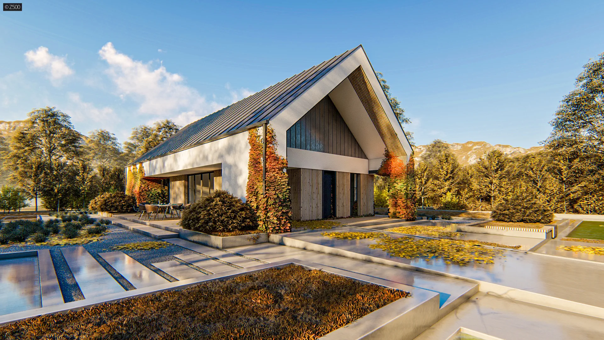 Z472 to współczesna wersja domu z dachem dwuspadowym na wąską działkę.