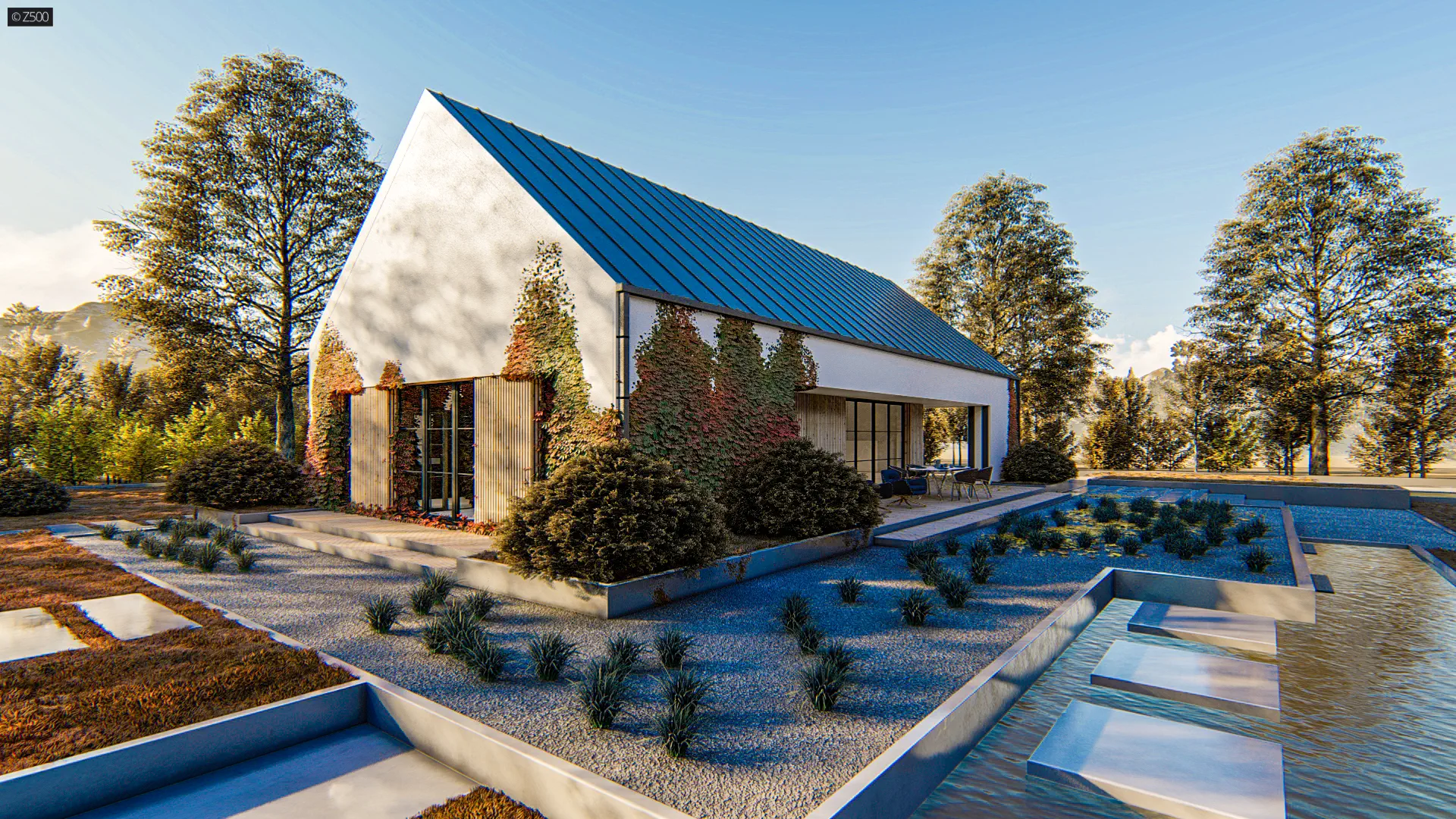 Dom parterowy nowoczesna stodoła z dachem 2-spadowym, sypialnią master i pralnią