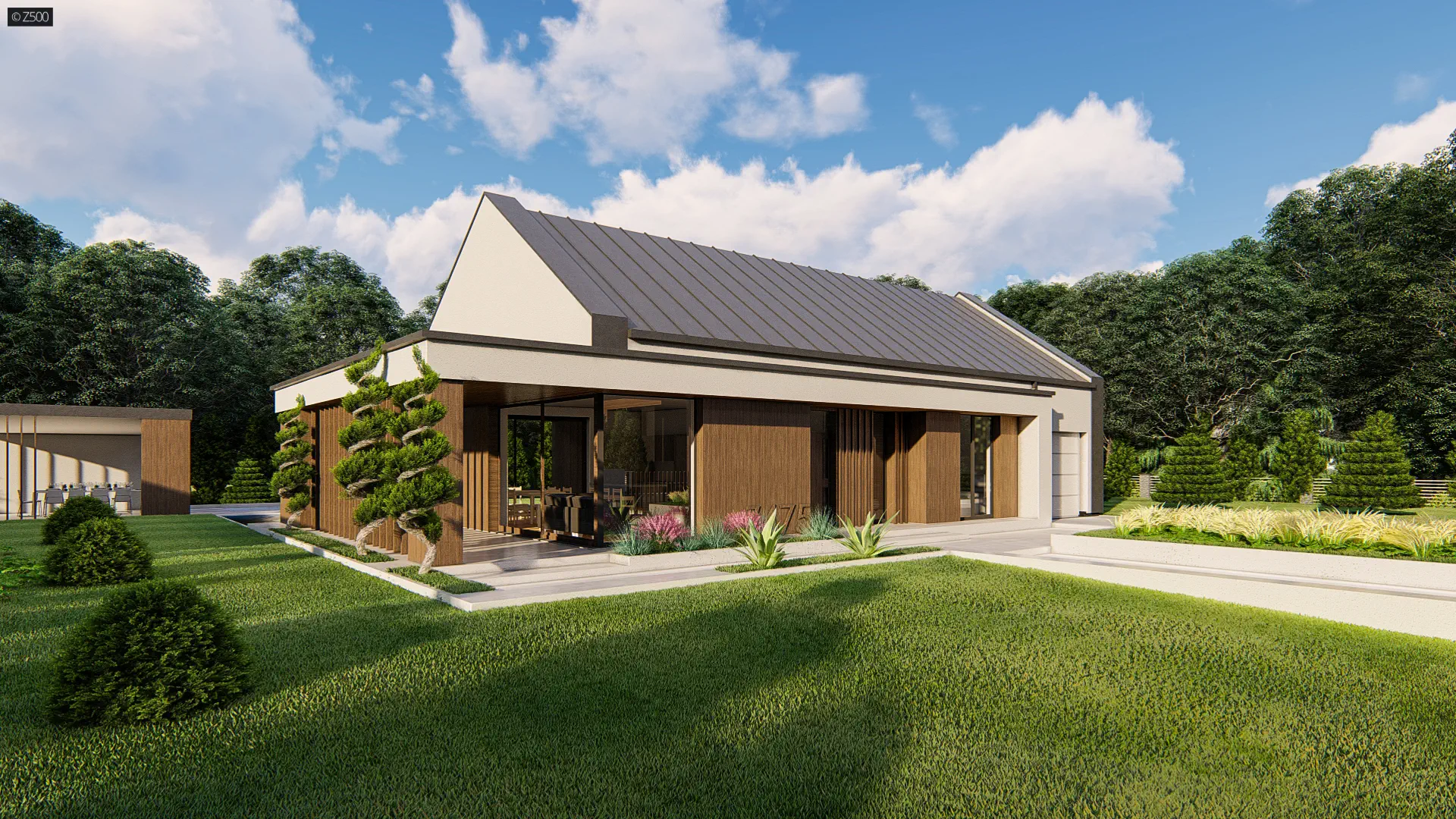 Z475 to niewielki dom parterowy z dachem dwuspadowym i garażem jednostanowiskowym.