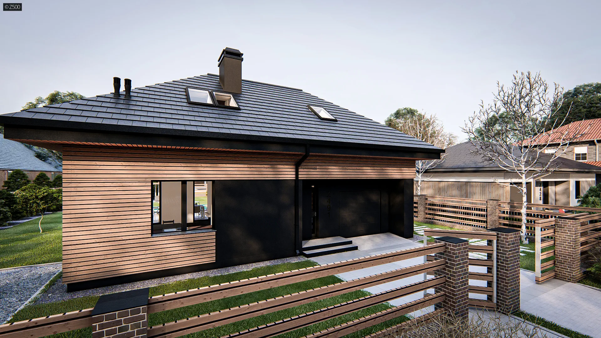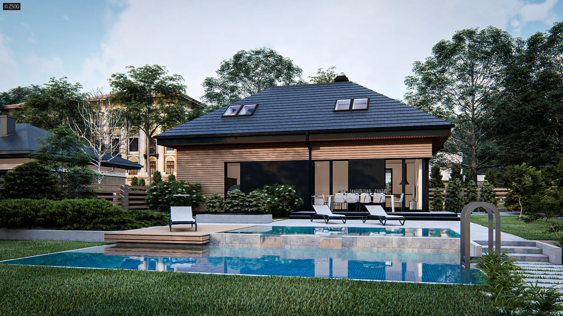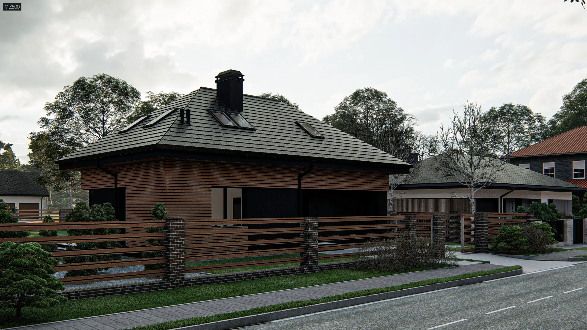 Dom z poddaszem z dachem kopertowym, poddaszem użytkowym, salon, 4 pokoje