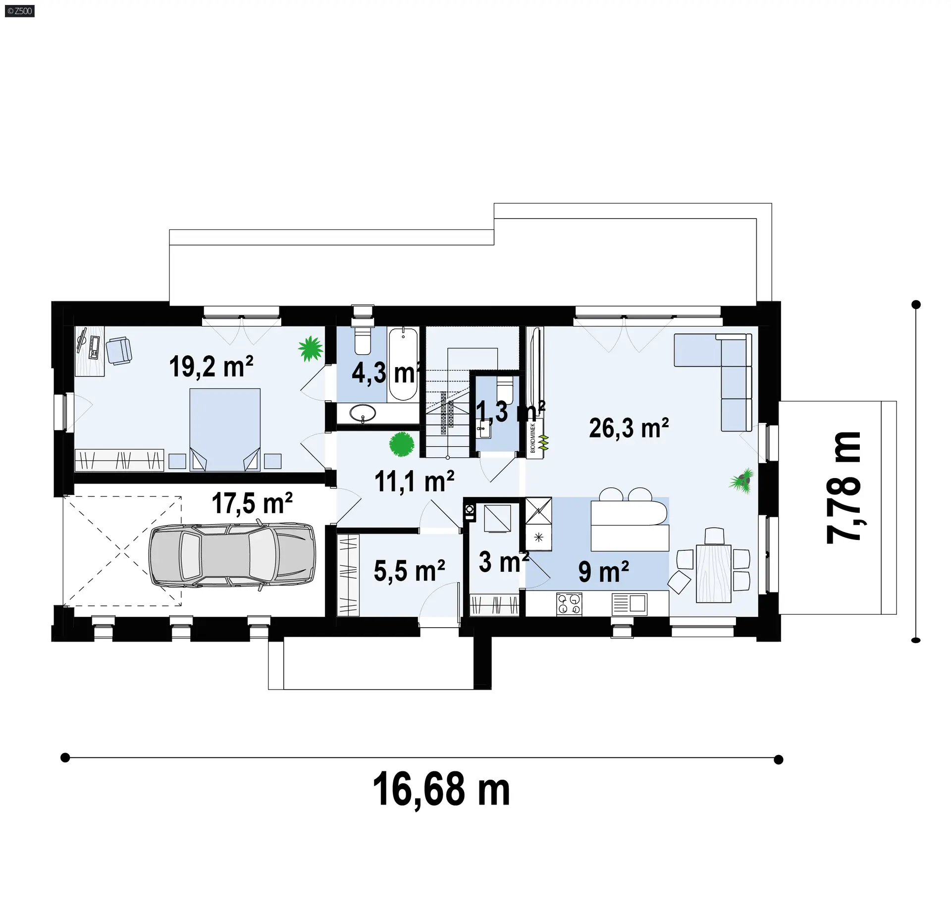 Nowoczesny dom z poddaszem, antresolą, 3 pokoje i garaż