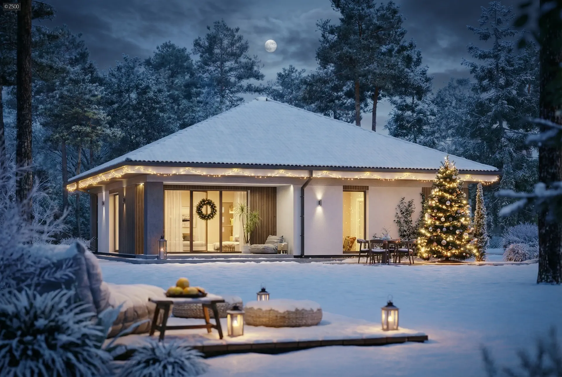 Parterowy dom ze strychem, dwoma sypialniami i garażem jednostanowiskowym