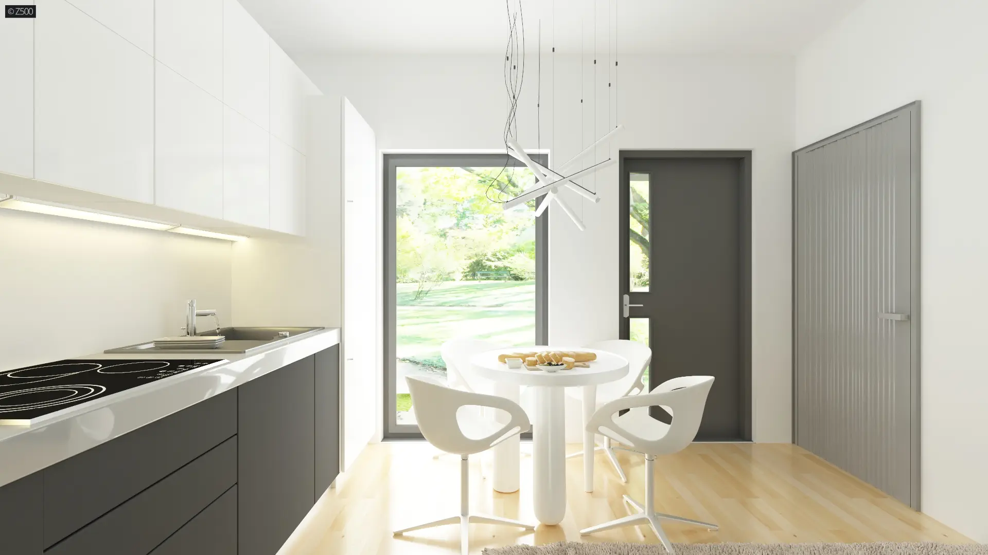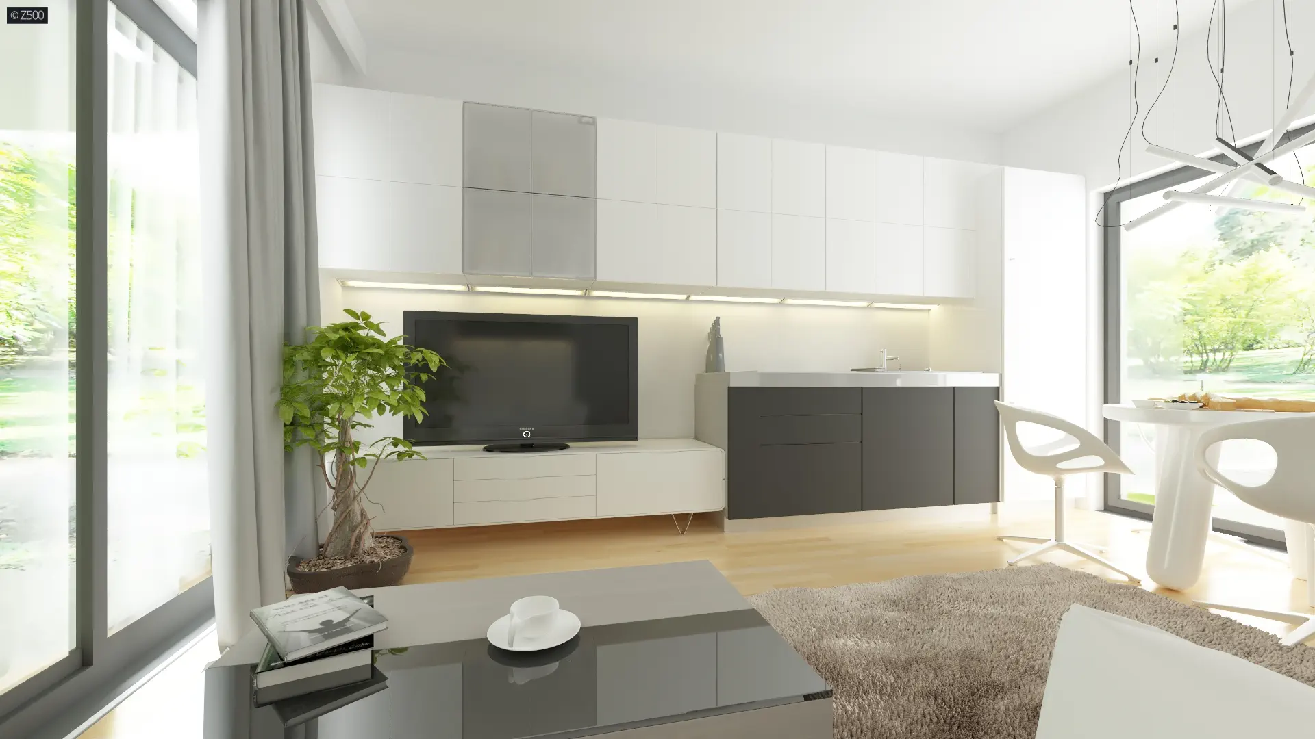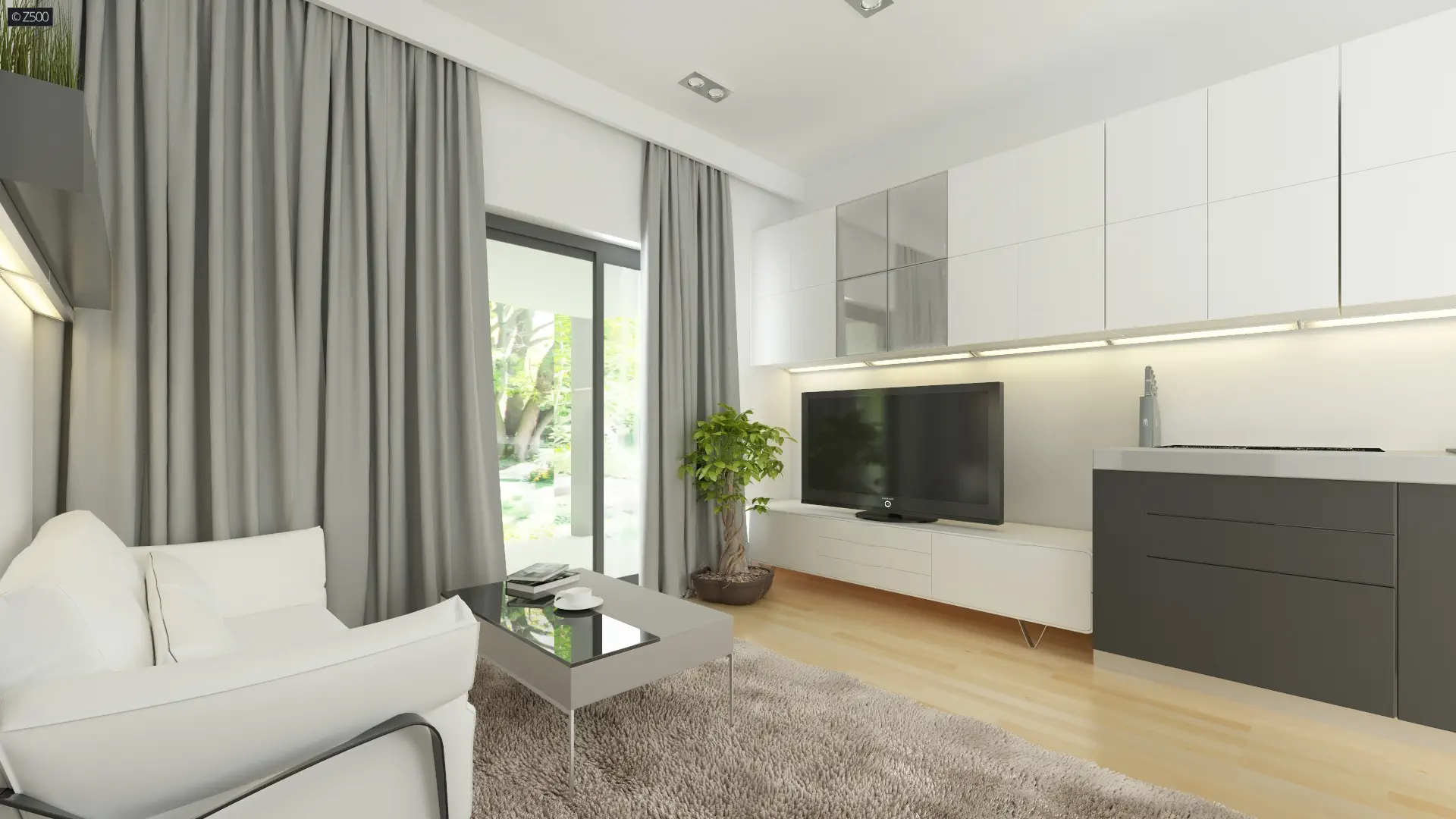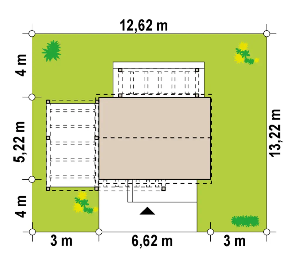 Projekt domu Z544 D to dom jednorodzinny całoroczny o powierzchni zabudowy do 35m2. W układzie przewidziano 1 sypialnia, 1 łazienka, salon 17,39 m², bez garażu. Minimalna działka: 12,62 m × 13,22 m.