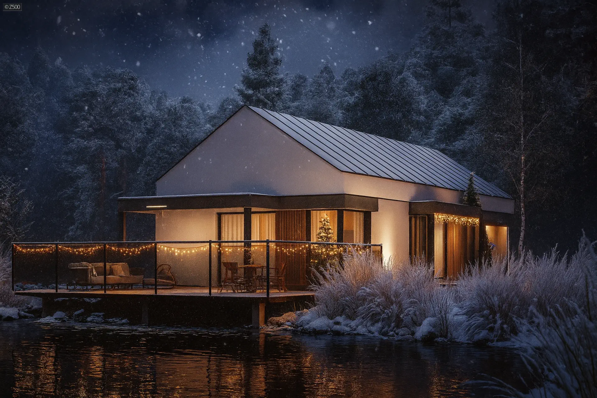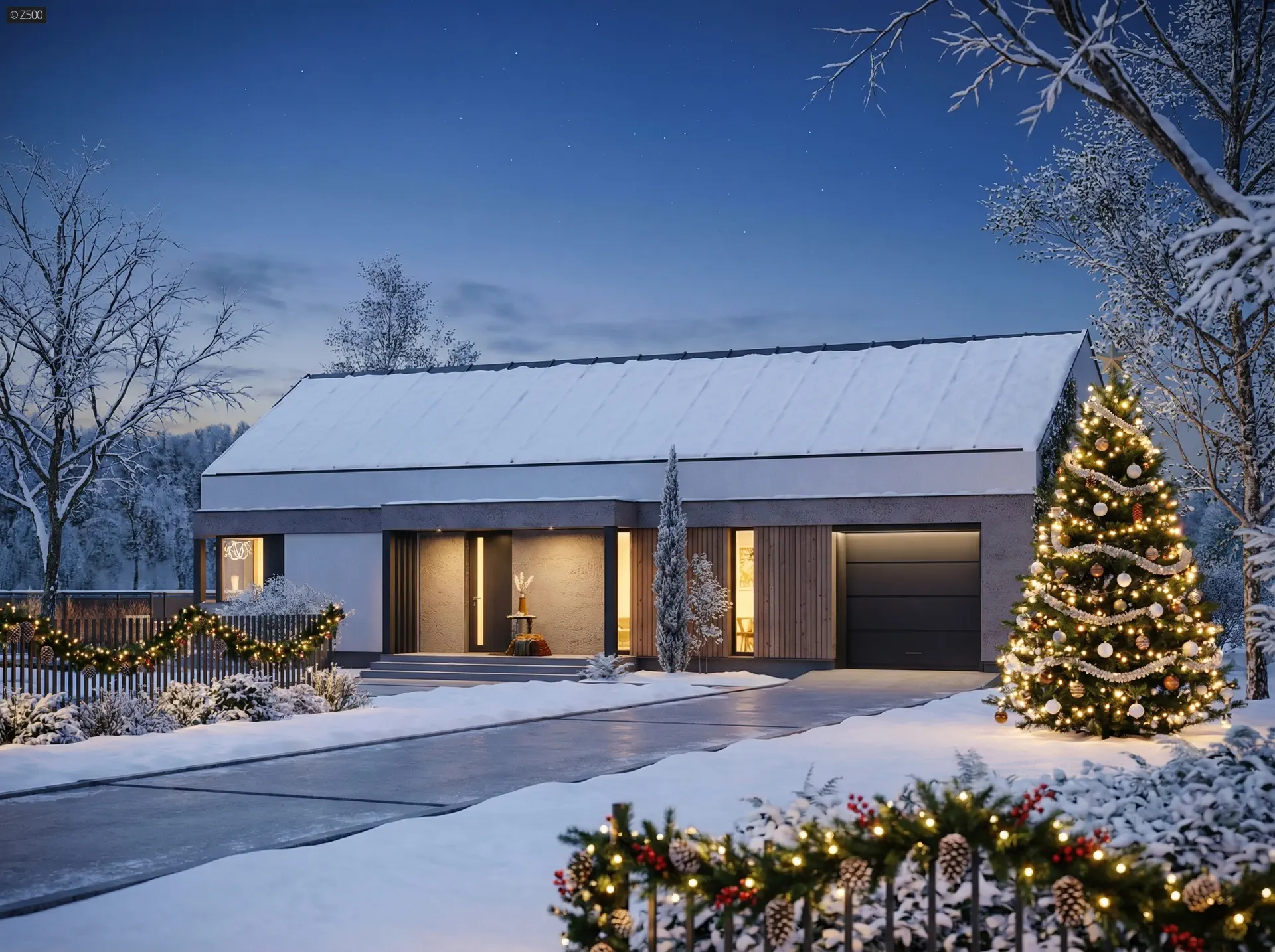 Parterowa Nowoczesna Stodoła z dwoma pokojami, dużymi przeszkleniami i garażem