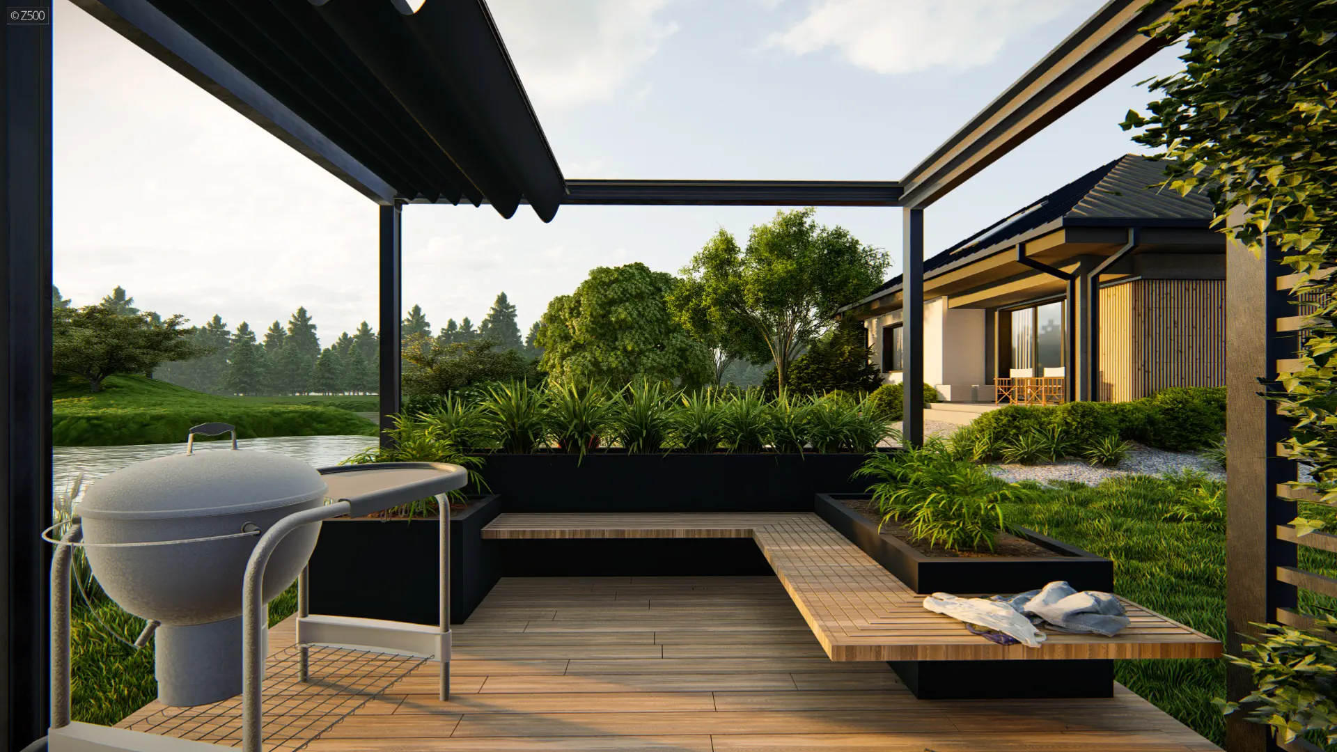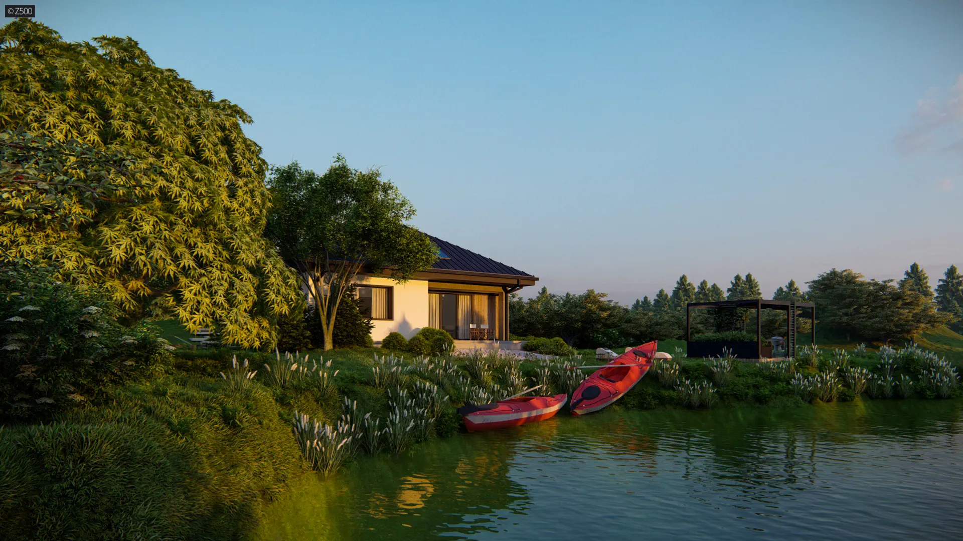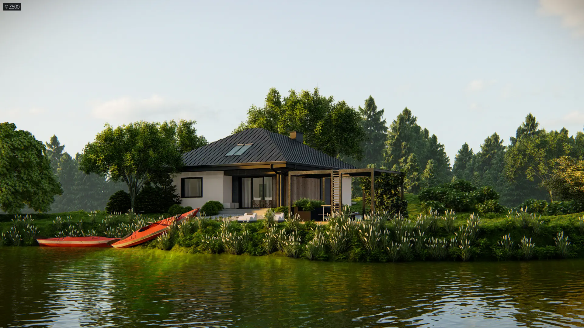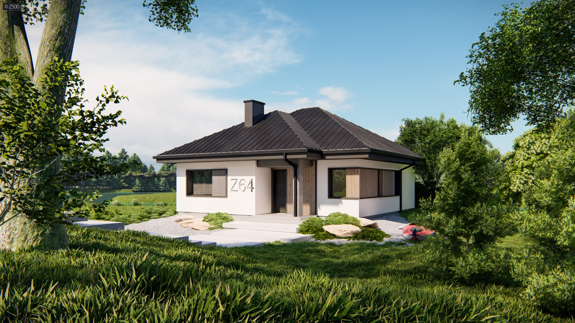 Mały i parterowy dom z funkcjonalnym układem pomieszczeń i zadaszonym tarasem