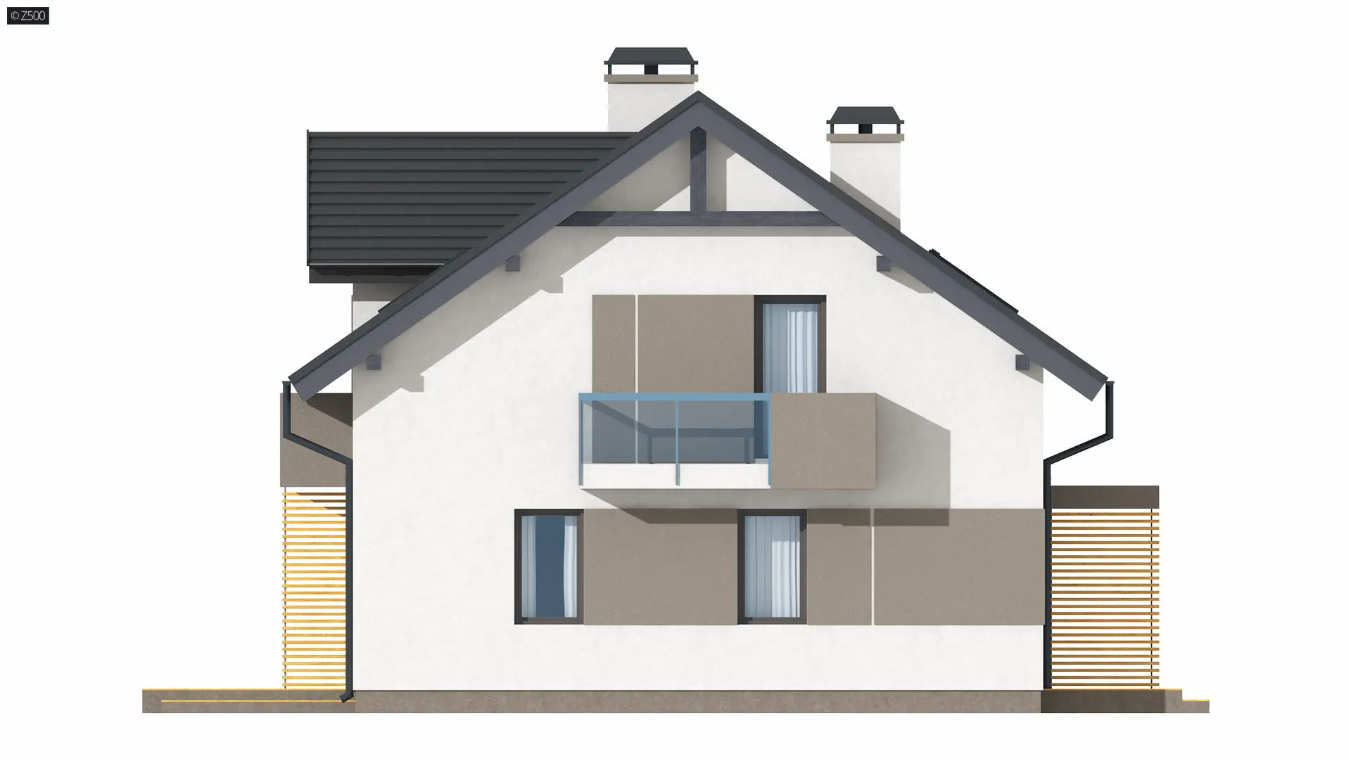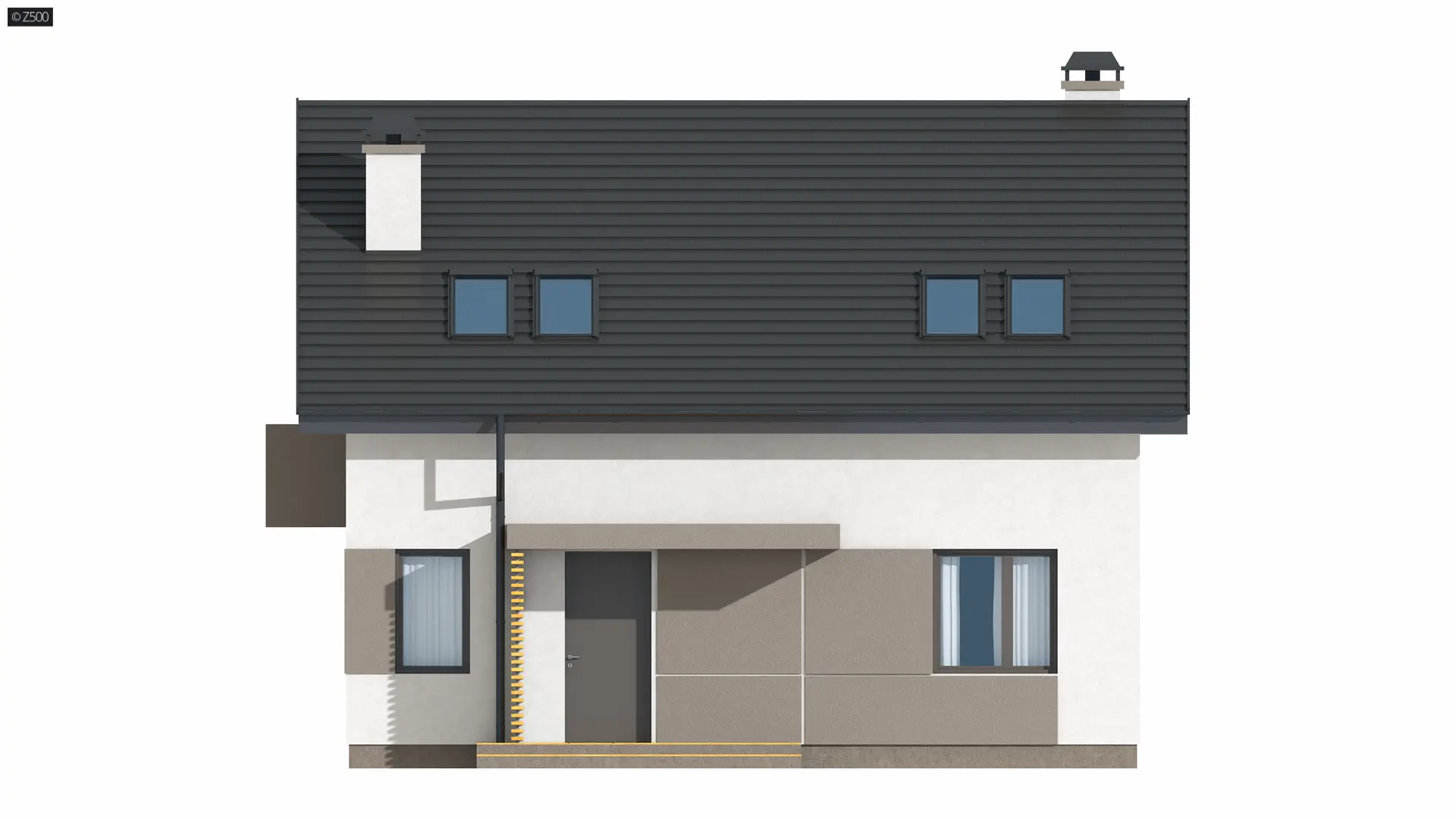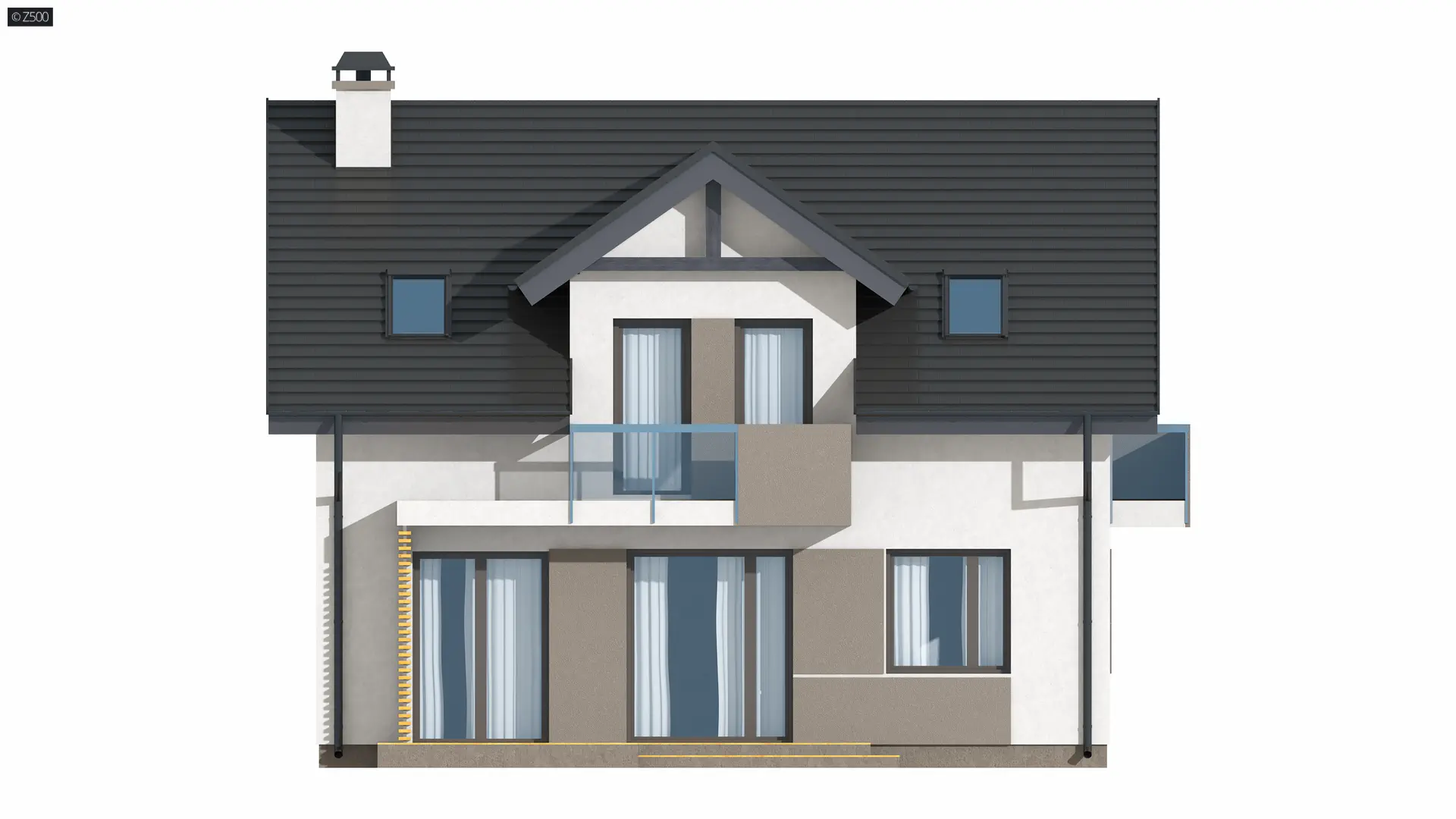 Projekt Z65 v2 to dom jednorodzinny z wygodnym poddaszem użytkowym. Ciekawa i łatwa w budowie bryła przykryta dwuspadowym dachem z lukarną. Podziały na elewacji nadają jej wyjątkowego charakteru. Wygodne poddasze poprawia zdecydowanie komfort użytkowania cennej powierzchni pod skosami. W projekcie postawiono na małą, lecz dobrze wykorzystaną, powierzchnię zabudowy. Propozycja wykonania ciepłej i jasnej kolorystyki uderza świeżością będąc jednocześnie wyważoną w swych proporcjach.