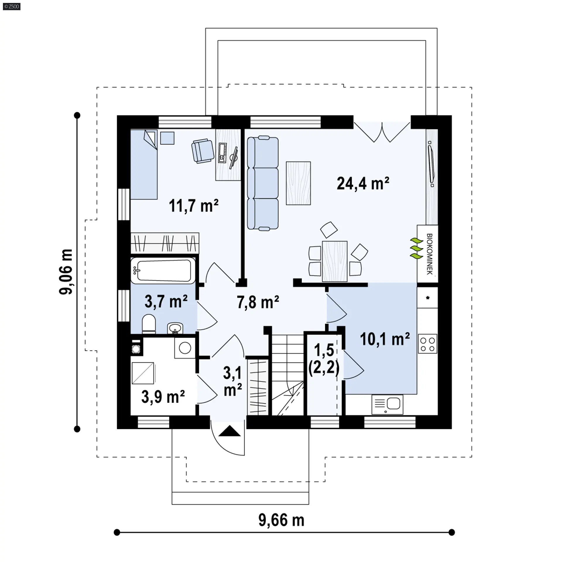 Zarówno z zewnątrz i w środku domek jest funkcjonalny, ustawny, sprawia wrażenie przytulnego i ciepłego kąta, który pokocha każdy domownik.