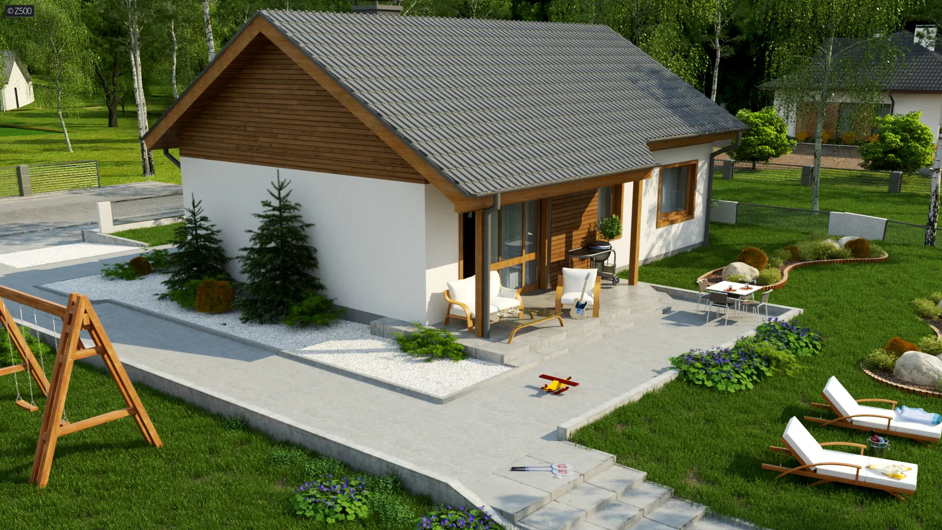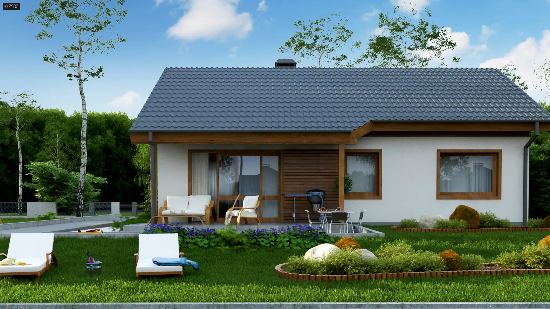 Dom parterowy z funkcjonalnym układem i prostym dachem dwuspadowym