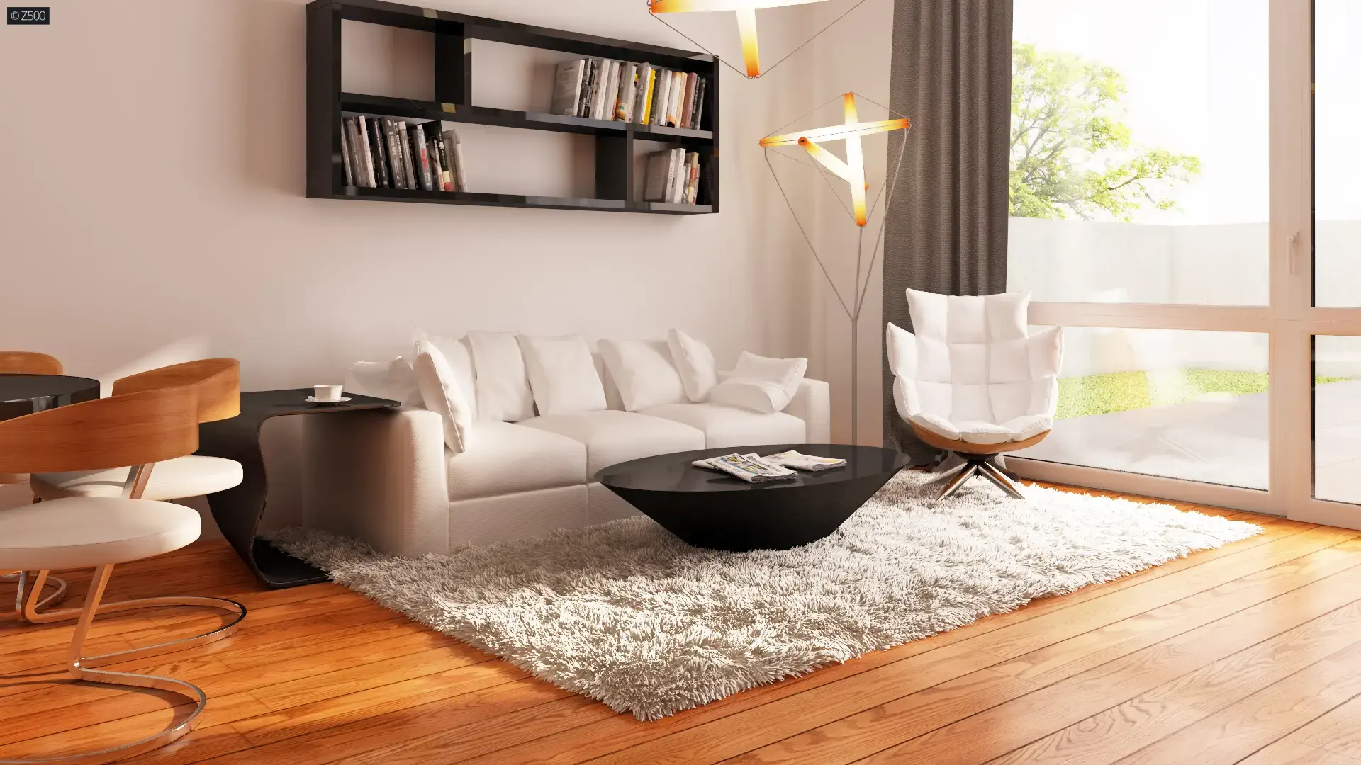 Na parter wchodzimy poprzez zadaszone wejście, prosto do sieni, skąd dalej wchodzimy do holu. Stanowi on ciąg komunikacyjny pomiędzy poszczególnymi pomieszczeniami. Parter możemy podzielić na dwie strefy, dzienną i sypialną. W jednej znajdują się trzy sypialnie oraz spora łazienka, natomiast w drugiej salon połączony z jadalnią i kuchnią oraz pomieszczenie gospodarcze. Z salonu mamy wyjście na zadaszony taras, który może być miłym miejscem na spędzenie wieczoru. Przeszklone duże drzwi zapewnią widok na ogród, a tym samym jedność z otoczeniem zewnętrznym.