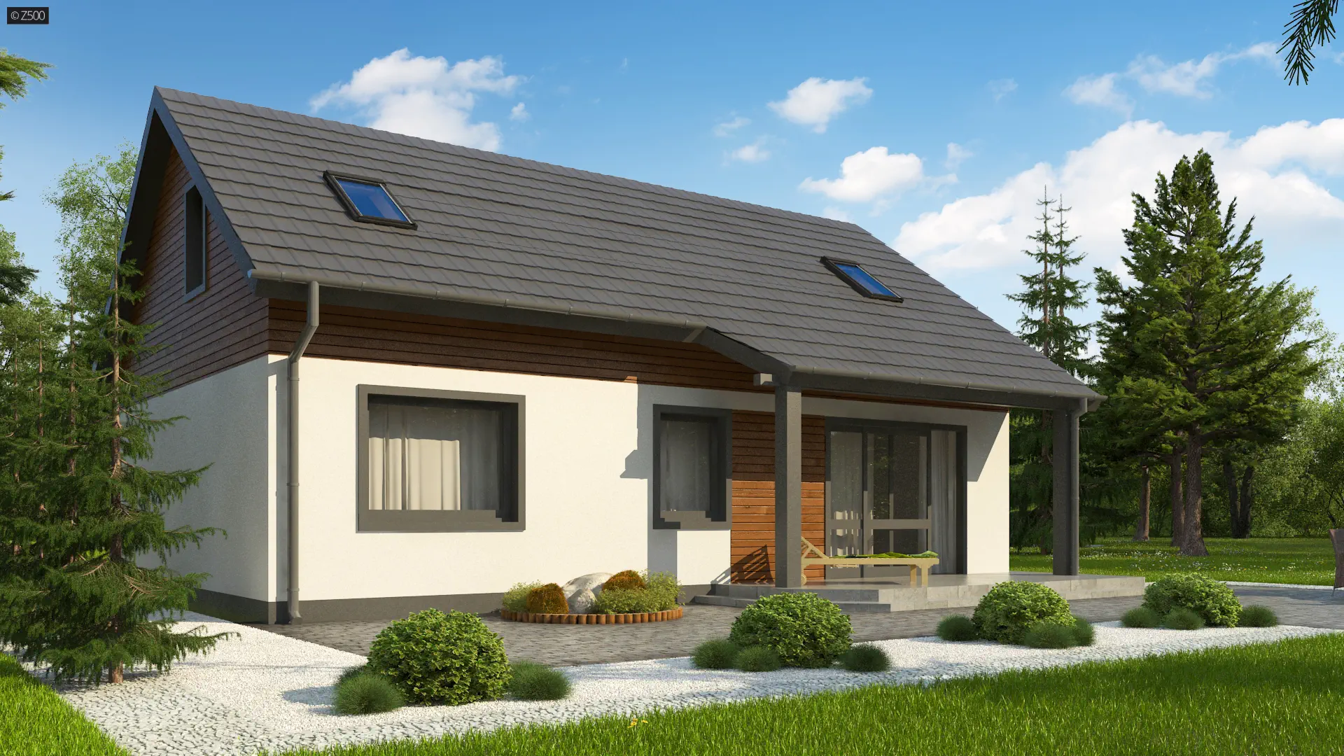 Funkcjonalny, nieduży dom z poddaszem użytkowym, dachem dwuspadowym i 5 pokojami