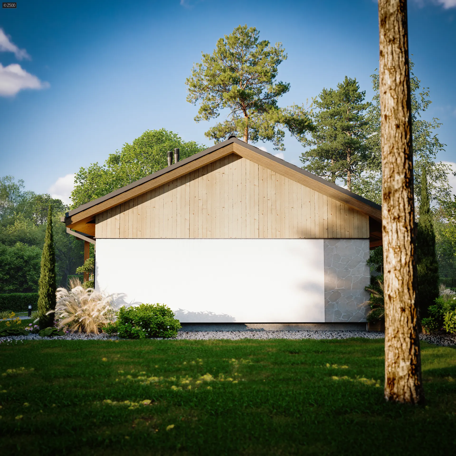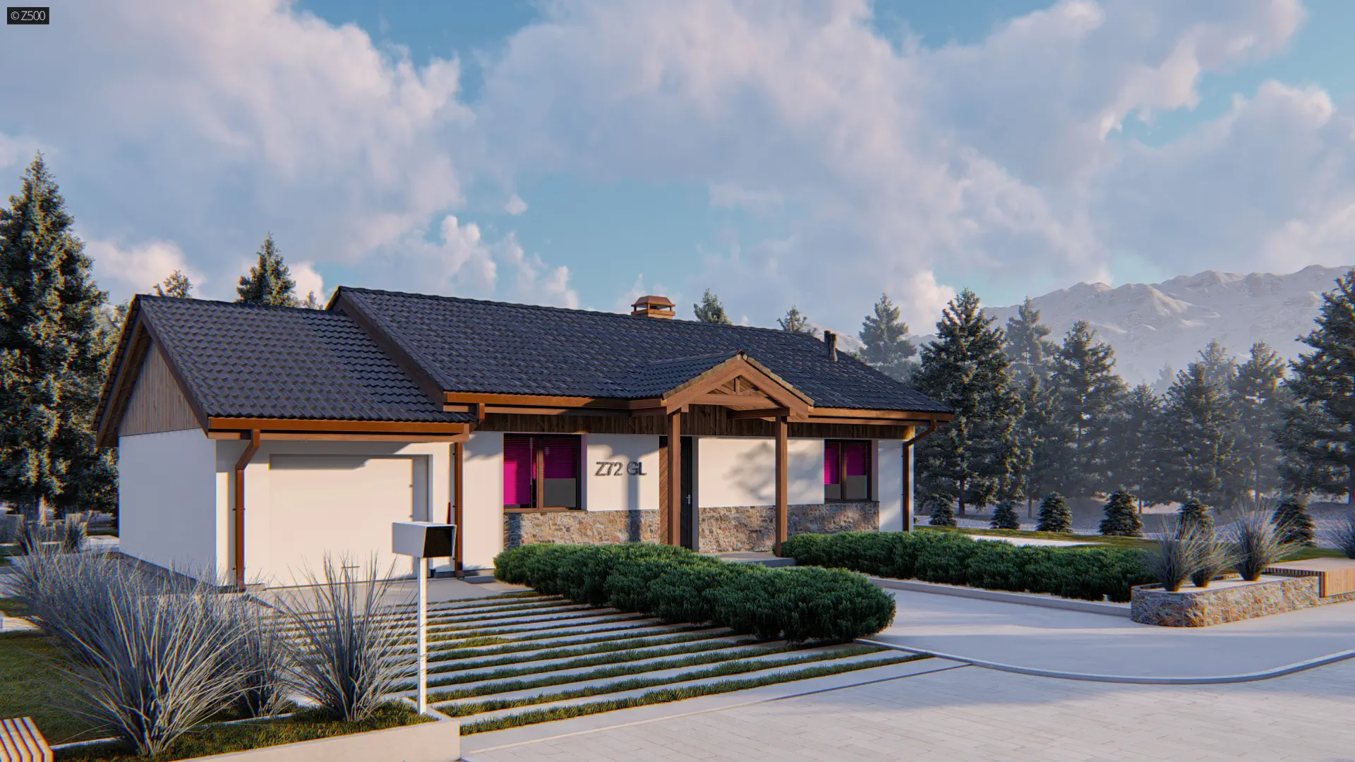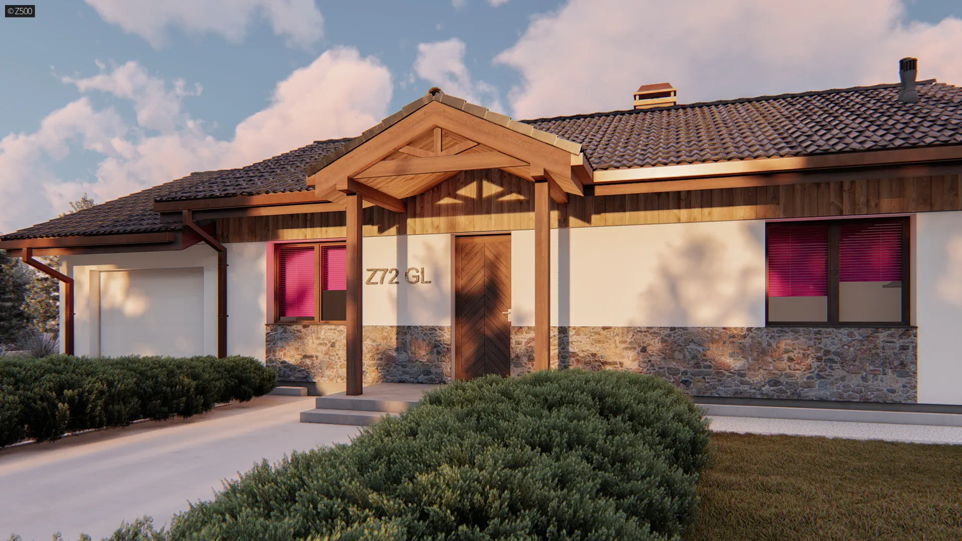 Projekt Z72 GL jest wariantem projektu Z72 z dodanym z lewej strony garażem. Zaletą tego domu to niesamowita prostota formy, a poprzez połączenie różnych materiałów niepowtarzalny wygląd i charakter całej budowli. Ta propozycja to zarówno niewielkie koszty inwestycji jak i eksploatacji. Idealny dla niewielkiej rodziny lub jako dom wypoczynkowy.