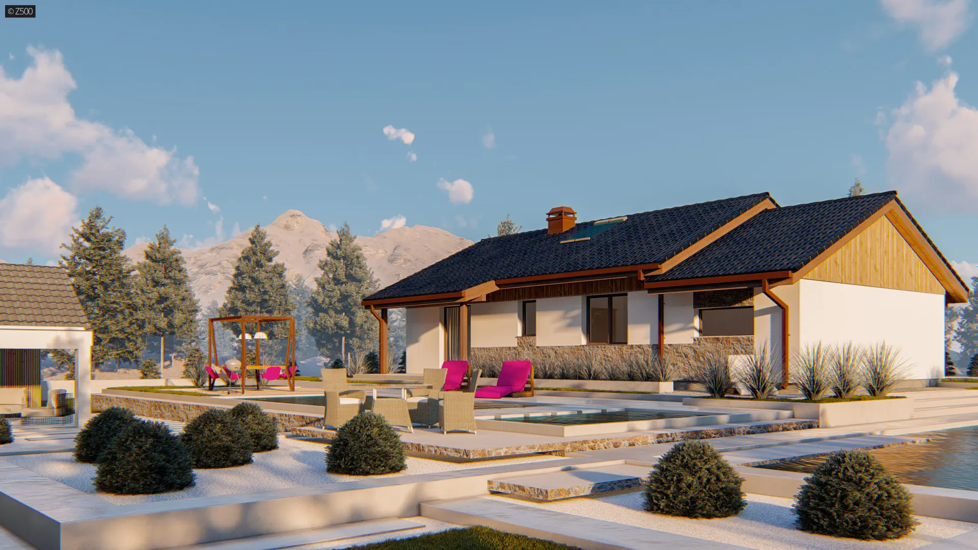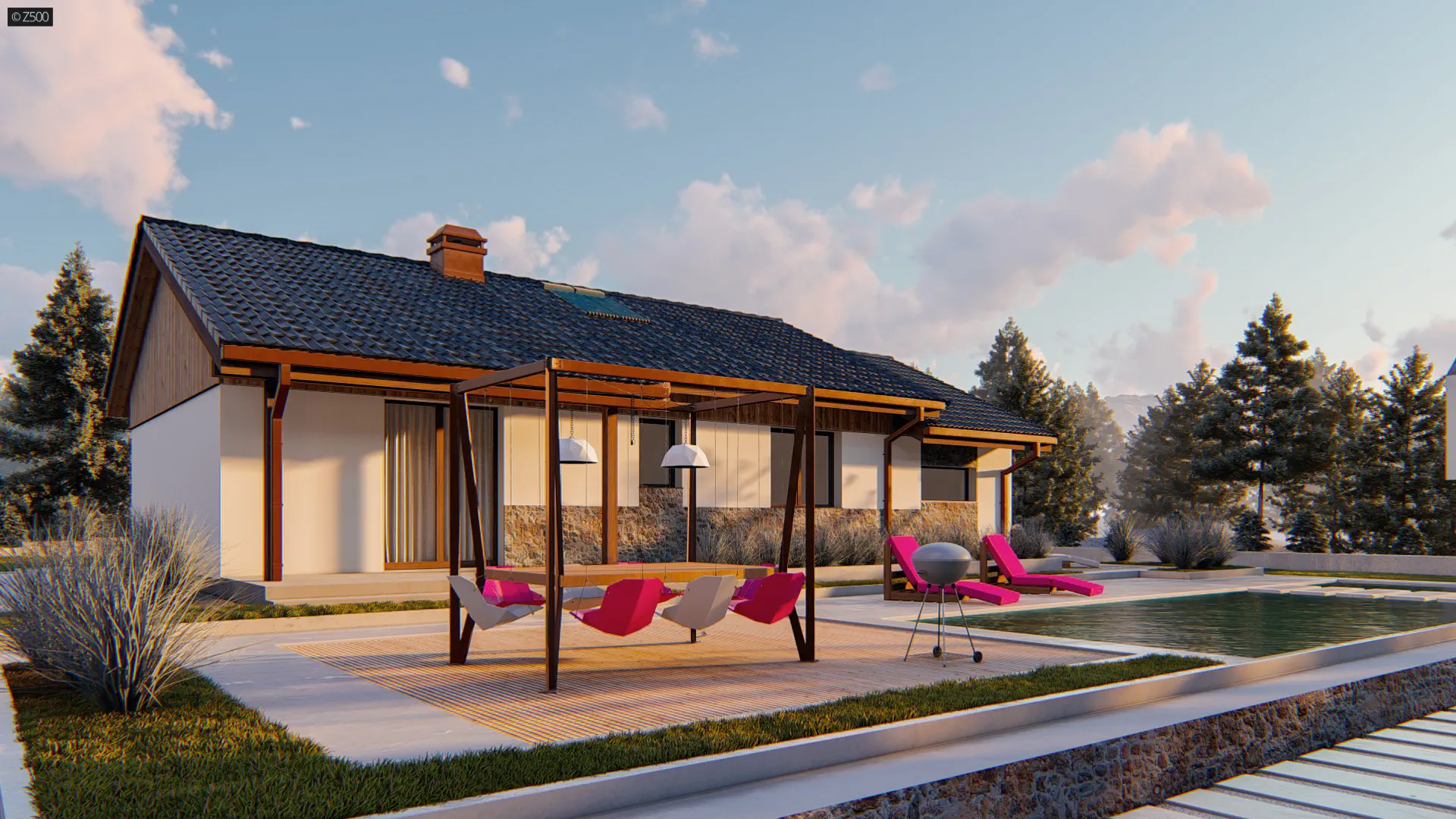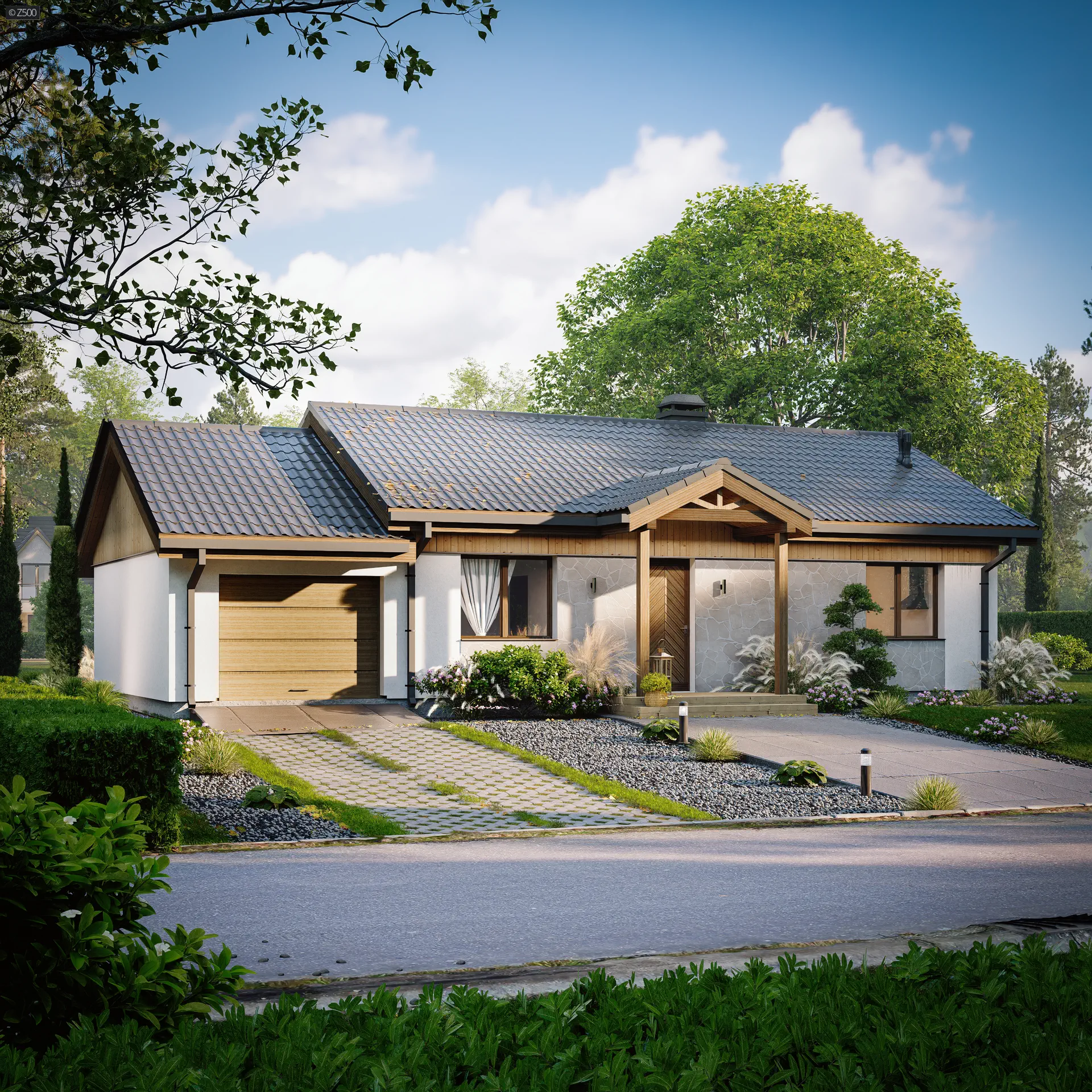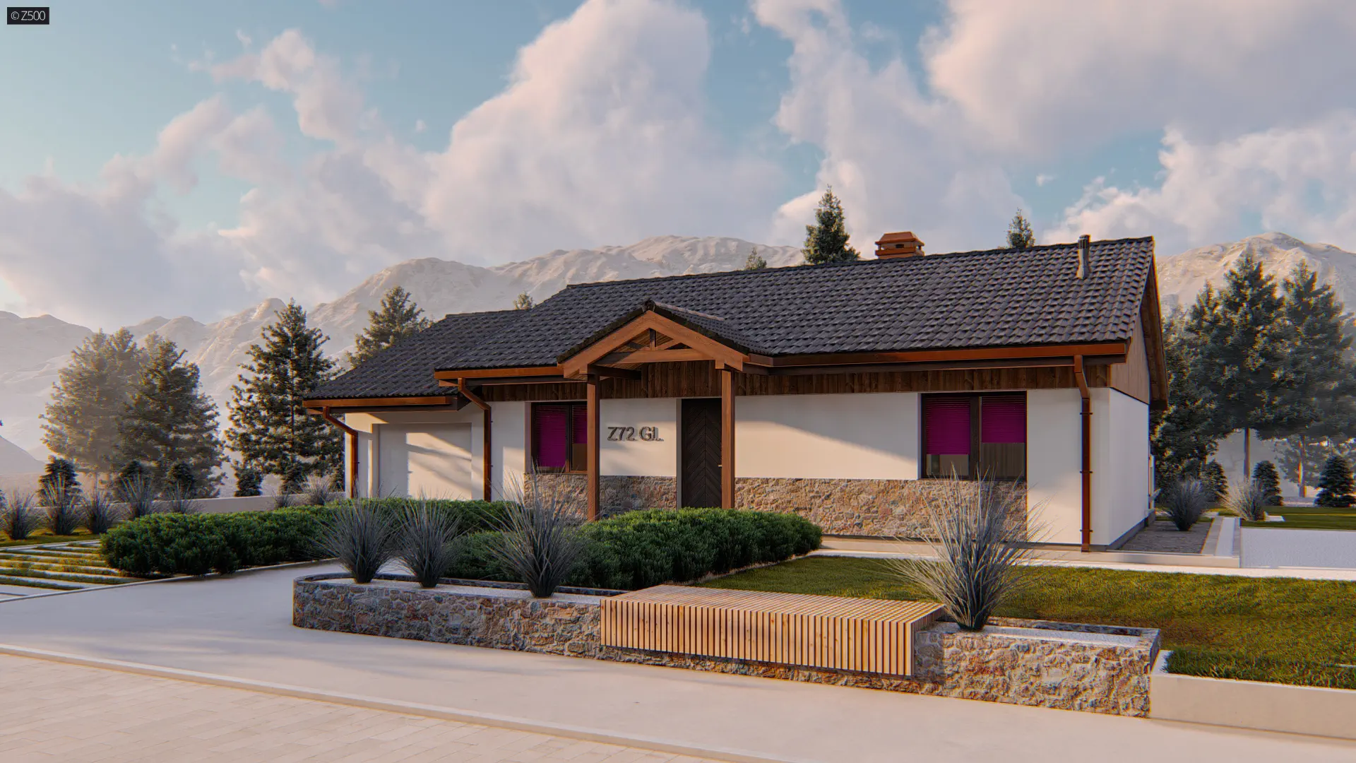 Projekt Z72 GL jest wariantem projektu Z72 z dodanym z lewej strony garażem. Zaletą tego domu to niesamowita prostota formy, a poprzez połączenie różnych materiałów niepowtarzalny wygląd i charakter całej budowli. Ta propozycja to zarówno niewielkie koszty inwestycji jak i eksploatacji. Idealny dla niewielkiej rodziny lub jako dom wypoczynkowy.