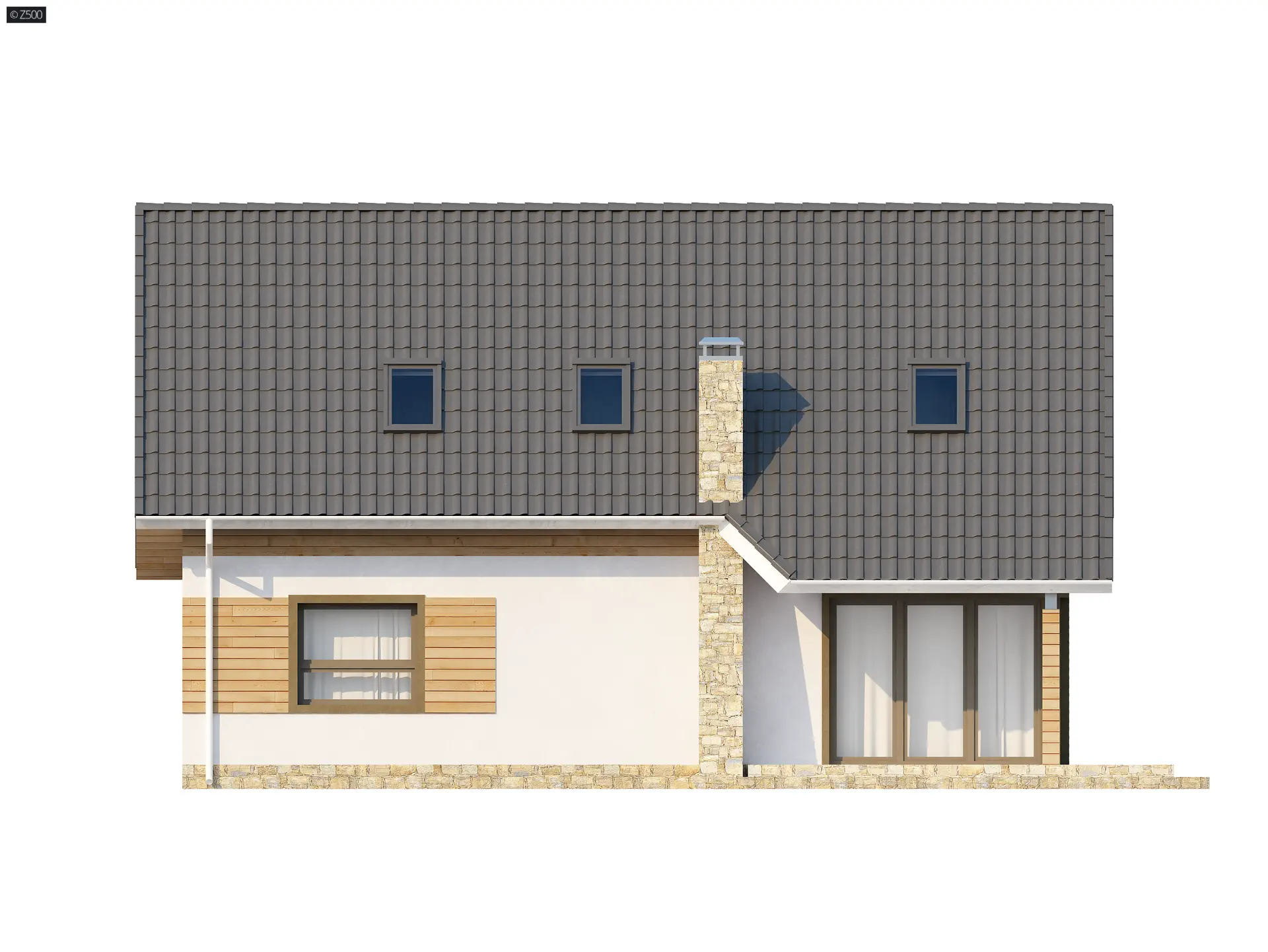 Projekt Z79 to parterowy dom z poddaszem użytkowym. Tworzy go prosta forma, która wpływa na ekonomiczność budowy i zarazem tanią eksploatację.