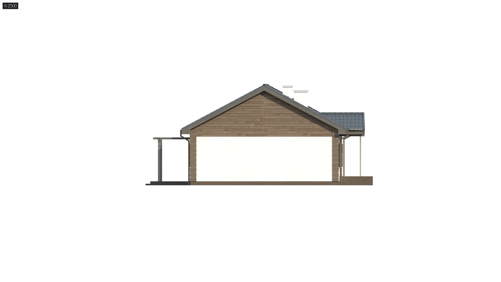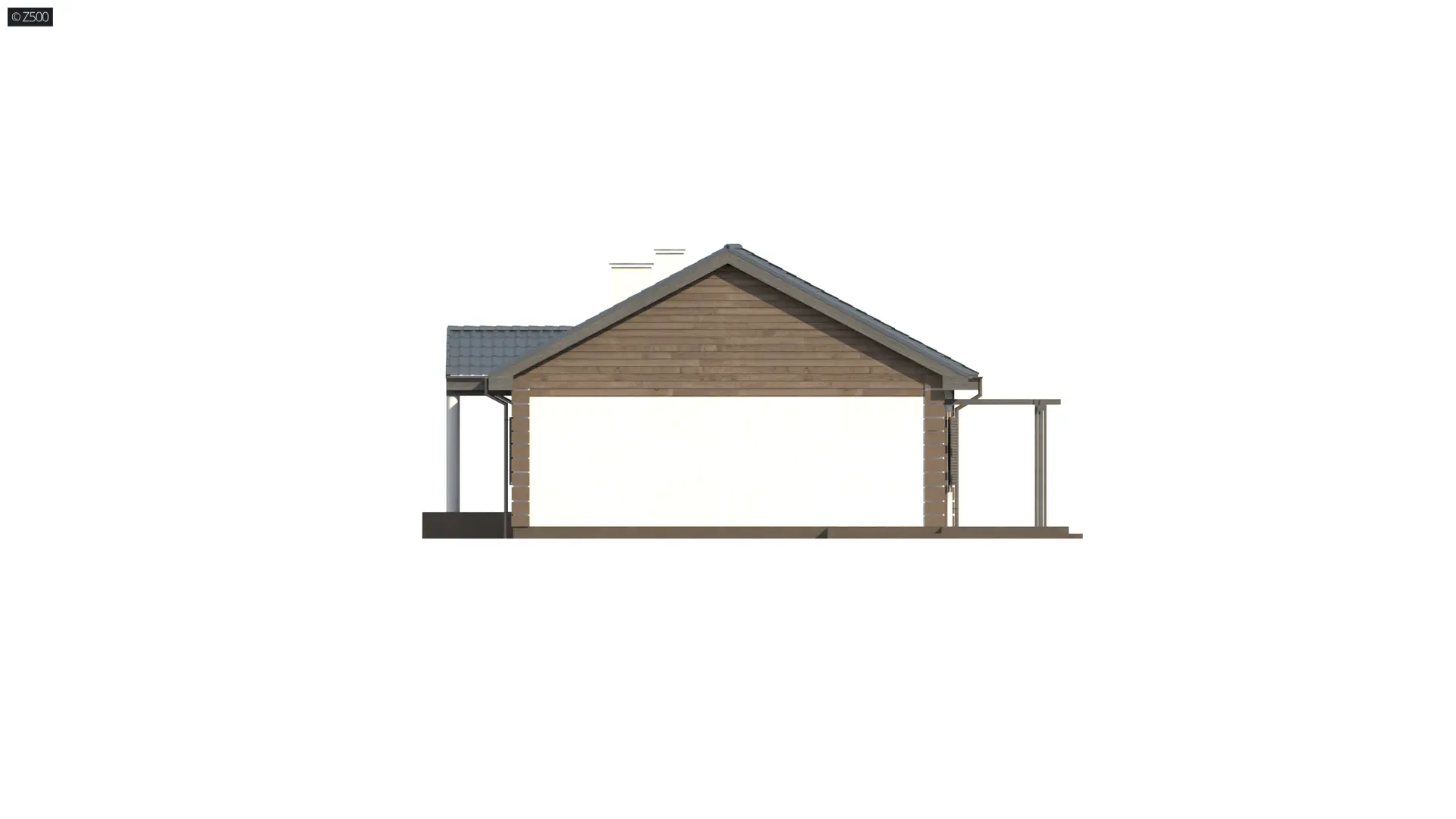 Projekt domu Z8 D V2 to dom parterowy z trzema sypialniami, prostą bryłą i funkcjonalnym układem wnętrz. W układzie przewidziano 3 sypialnie, 2 łazienki, salon 30,44 m², bez garażu. Minimalna działka: 18,91 m × 17,01 m.