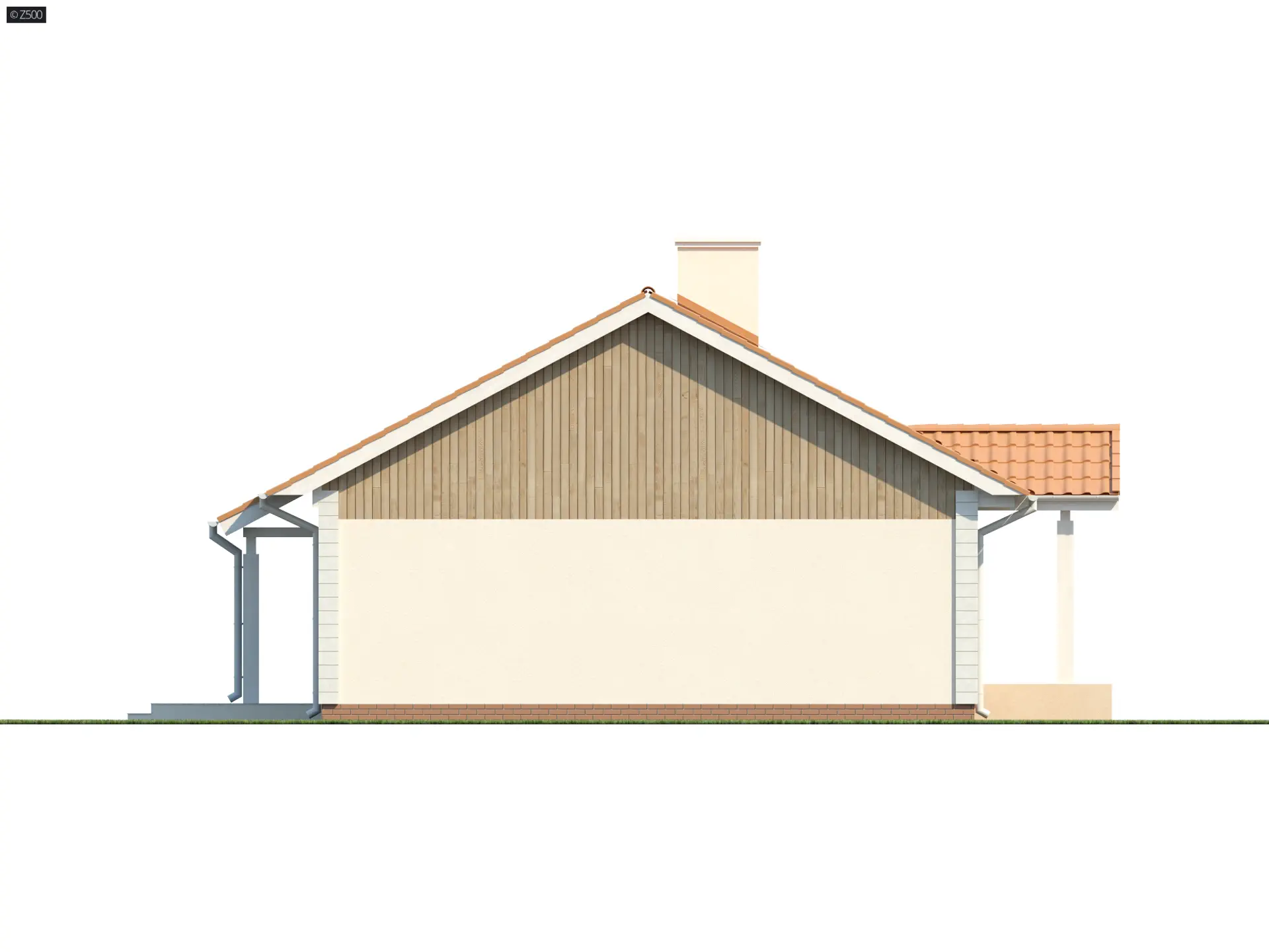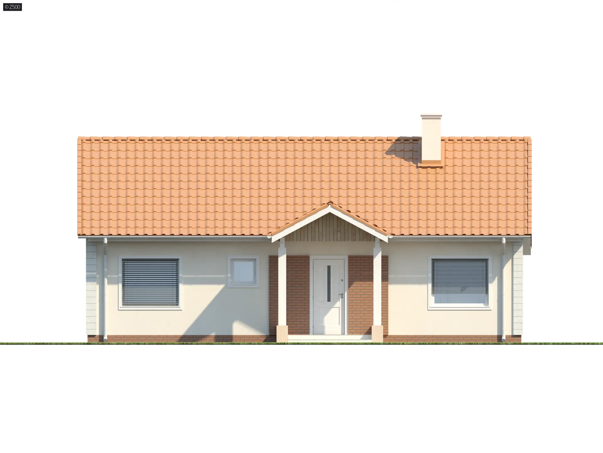Projekt Z91 jest domem parterowym z dachem dwuspadowym, prostym a zarazem tanim w realizacji. Urok dodaje klasyczny podcień wejściowy podparty dwoma słupami.
