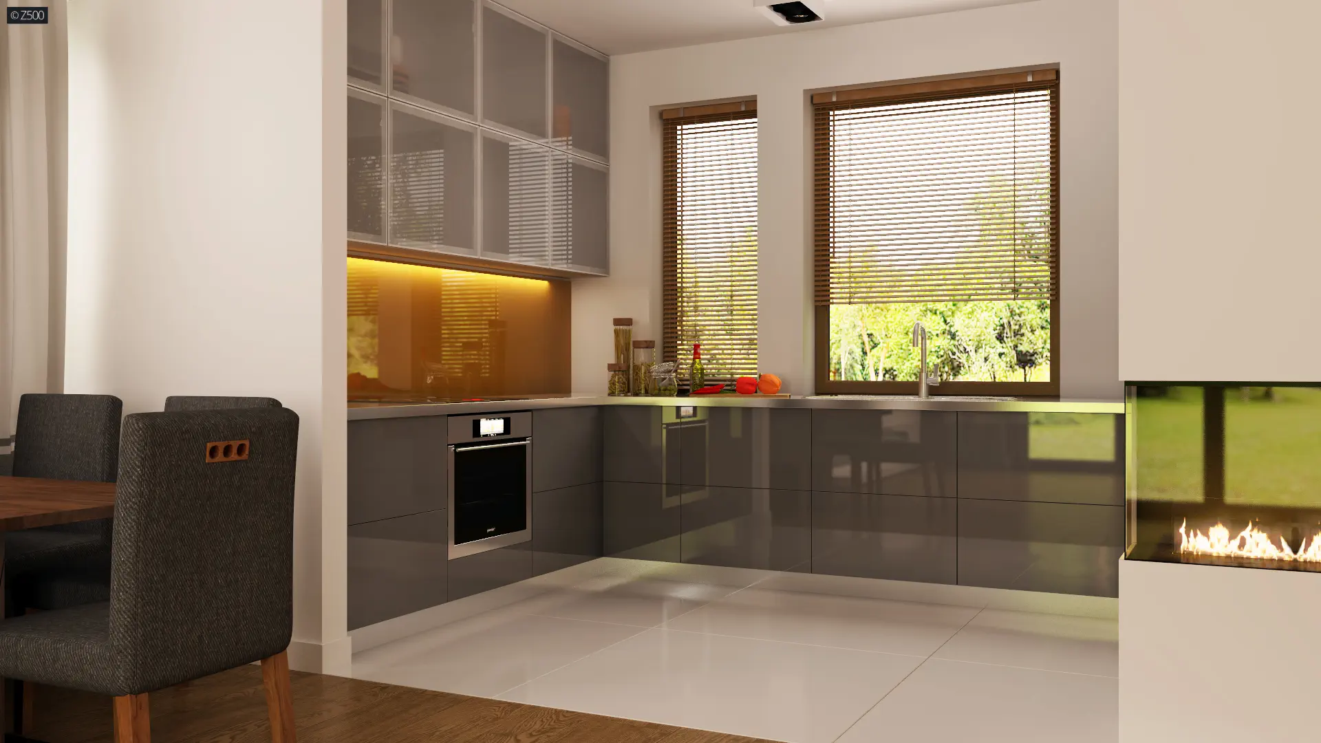 Wygodny dom parterowy z wykuszem w salonie, dachem dwuspadowym i 3 sypialniami