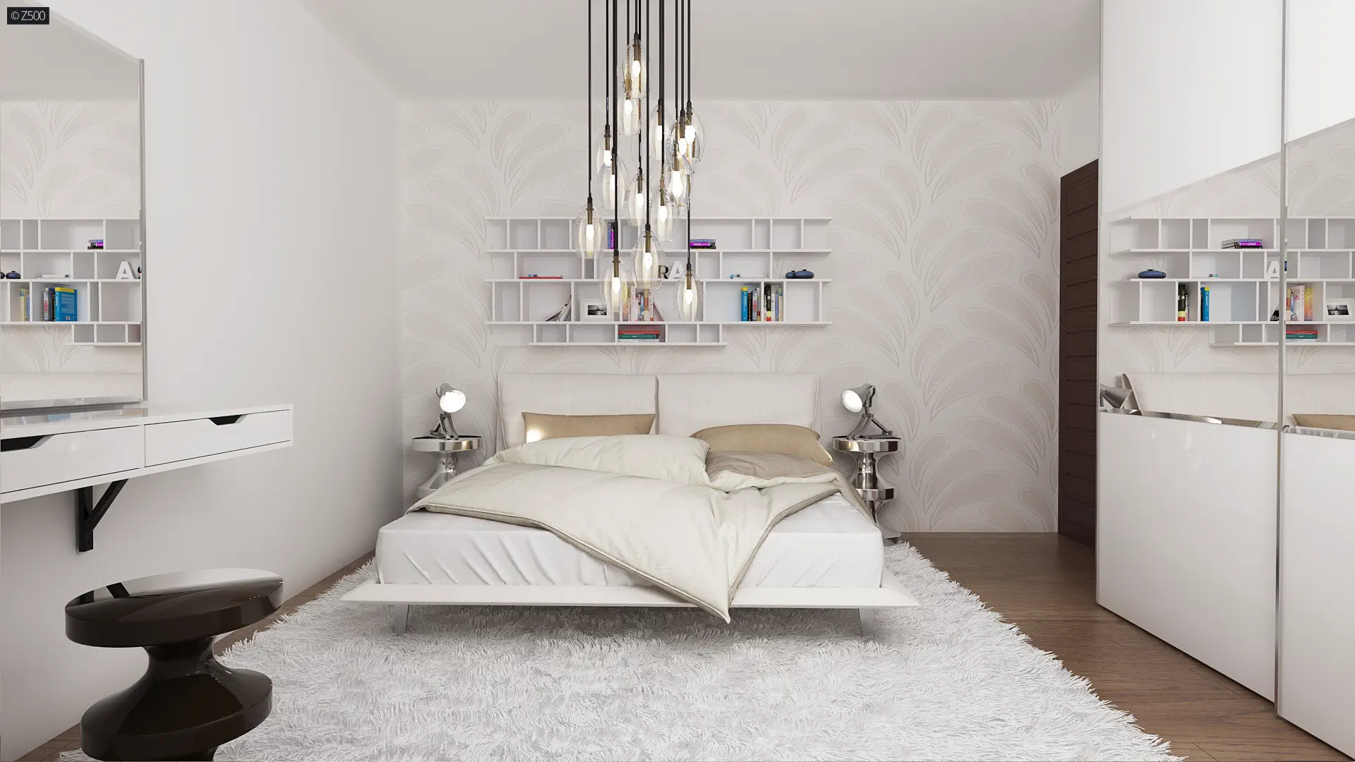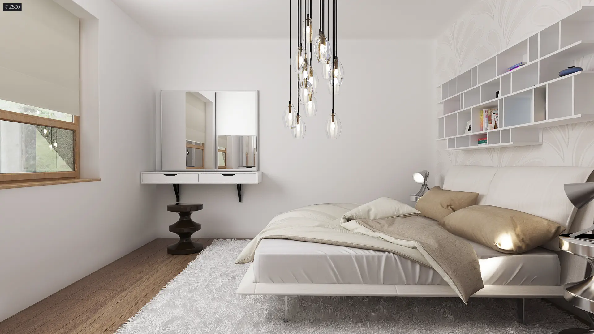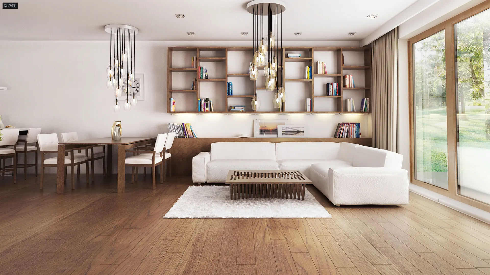 Parterowy dom z dwoma pokojami, dachem wielospadowym oraz garażem od frontu