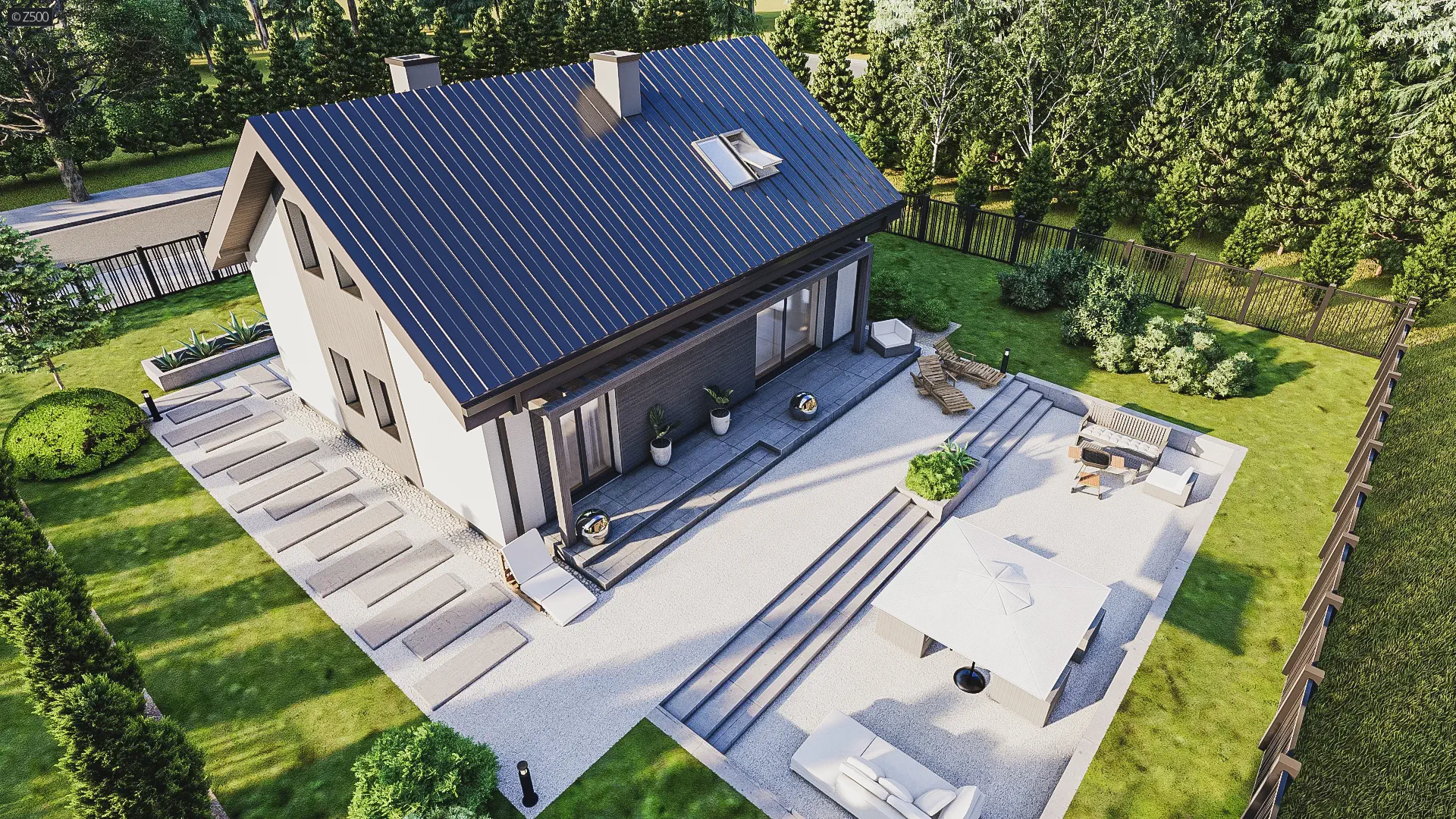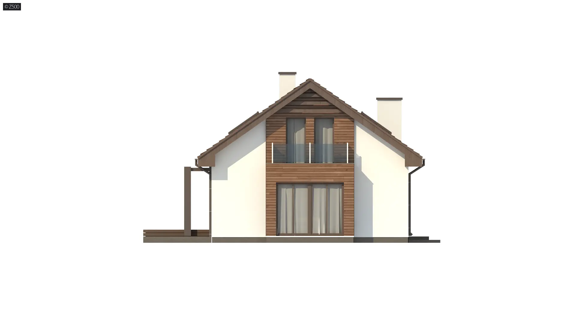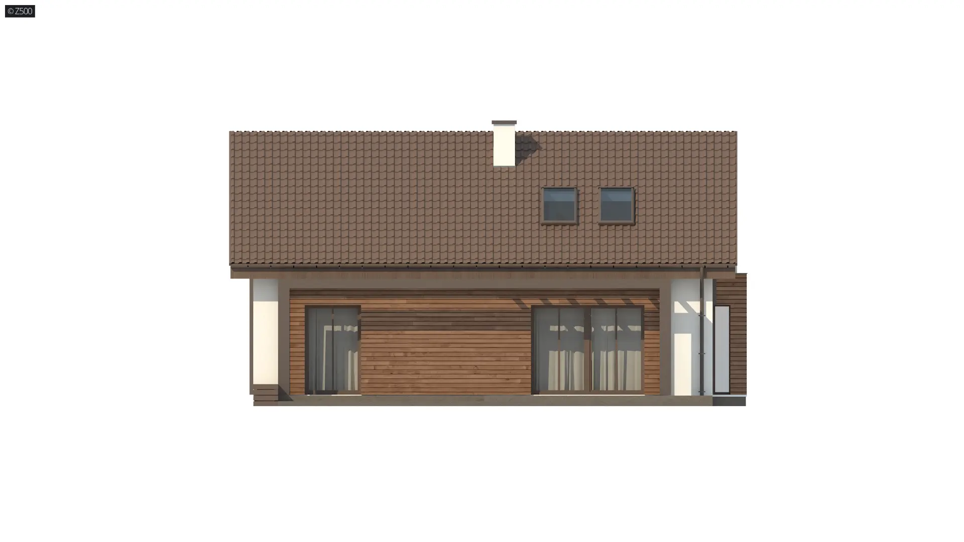 Z95 A to projekt domu o powierzchni użytkowej niecałych 120 m2. Prosty dach dwuspadowy bez dodatkowego zadaszenia nad wejściem jak w wersji podstawowej, jest niedrogi w budowie. Wejście zostało delikatnie cofnięte i osłonięte aby deszcz nie przeszkadzał nam w poszukiwaniu kluczy.