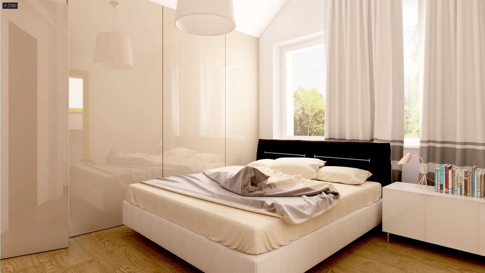 Poddasze użytkowe składa się z trzech sypialni. Jedna z nich posiada prywatną łazienkę i garderobę. Pozostałe dwie mogą być pokojami dla dzieci. Z każdego z pokoi prowadzi wyjście na niewielki balkon umiejscowiony nad wykuszem. Wnętrza doświetlono oknami dachowymi oraz oknami szczytowymi.