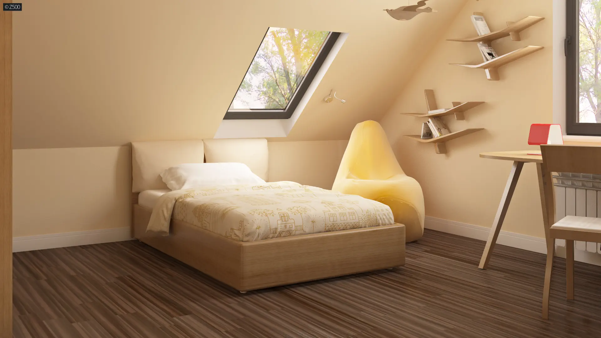 Mały, funkcjonalny dom z pokojem na parterze oraz kuchnią i wykuszem od ogrodu