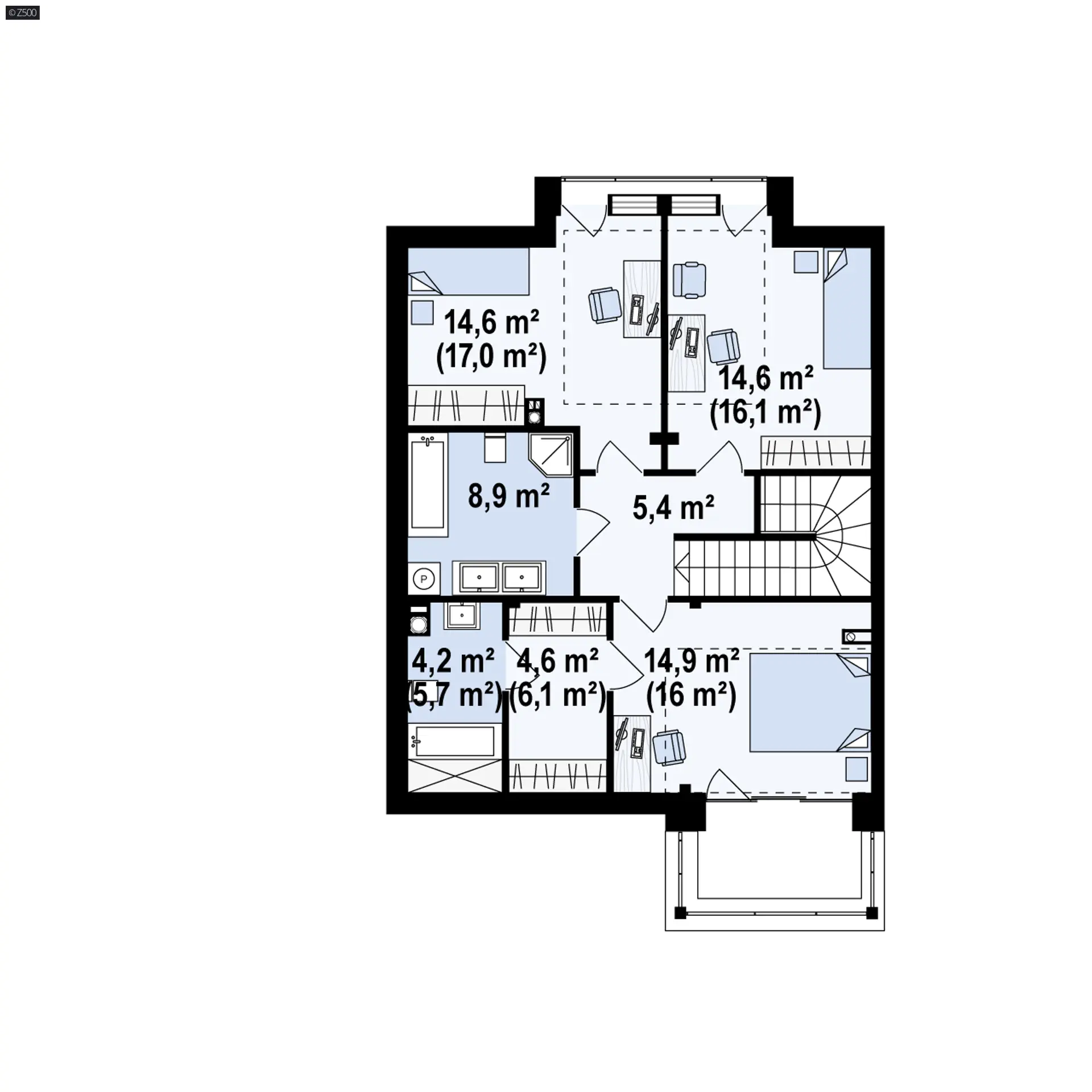 Projekt Zb14 daje możliwość utworzenia dodatkowej sypialni, aby poddasze było wyposażone nie w 3 lecz w 4 pokoje. Wprowadzona zmiana polega na zlikwidowaniu łazienki i garderoby w master bedroom, nieznacznym przesunięciu ścianki wspólnej łazienki, i utworzeniu dodatkowych drzwi wejściowych do nowo powstałego w ten sposób pokoju.