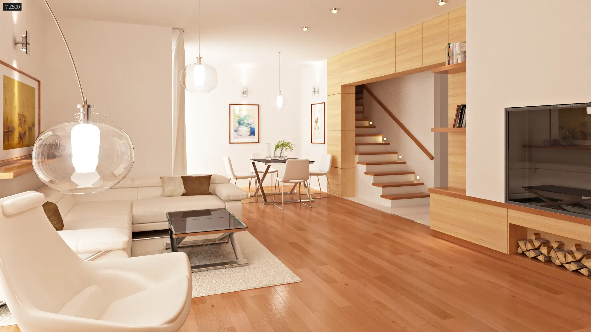 Zb4 wyróżnia nowatorska bryła, wysmakowany detal i czysty układ funkcjonalny. Szara kolorystyka projektu została złamana ciepłymi okładzinami drewnianymi, które występują w strefie wejściowej i balkonowej.
