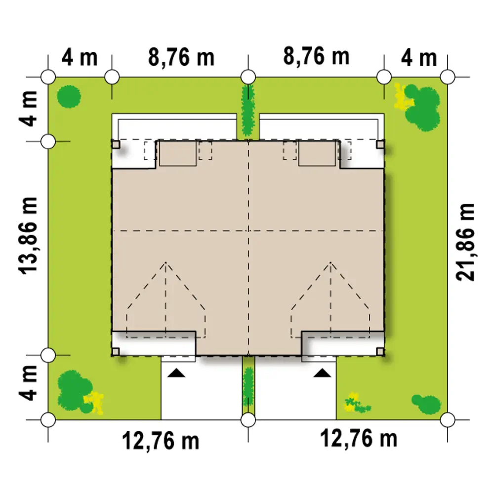 Zb4 jest doskonałym pomysłem na biznes, dom spełnia oczekiwania polskiej rodziny wg najnowszych rankingów badania rynku. Ten projekt nadaje się do zagospodarowania urbanistycznego jako sąsiadujące pary bliźniaków bądź jako segmenty szeregowe (bez okien w ścianach bocznych).