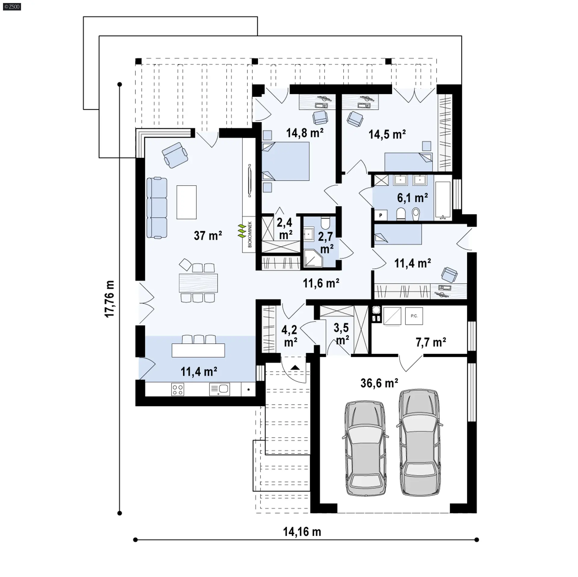 Zx100 to propozycja dla osób poszukujących wyjątkowego projektu. Oryginalne elewacje, ciekawe dodatki podkreślają nowoczesny charakter domu.