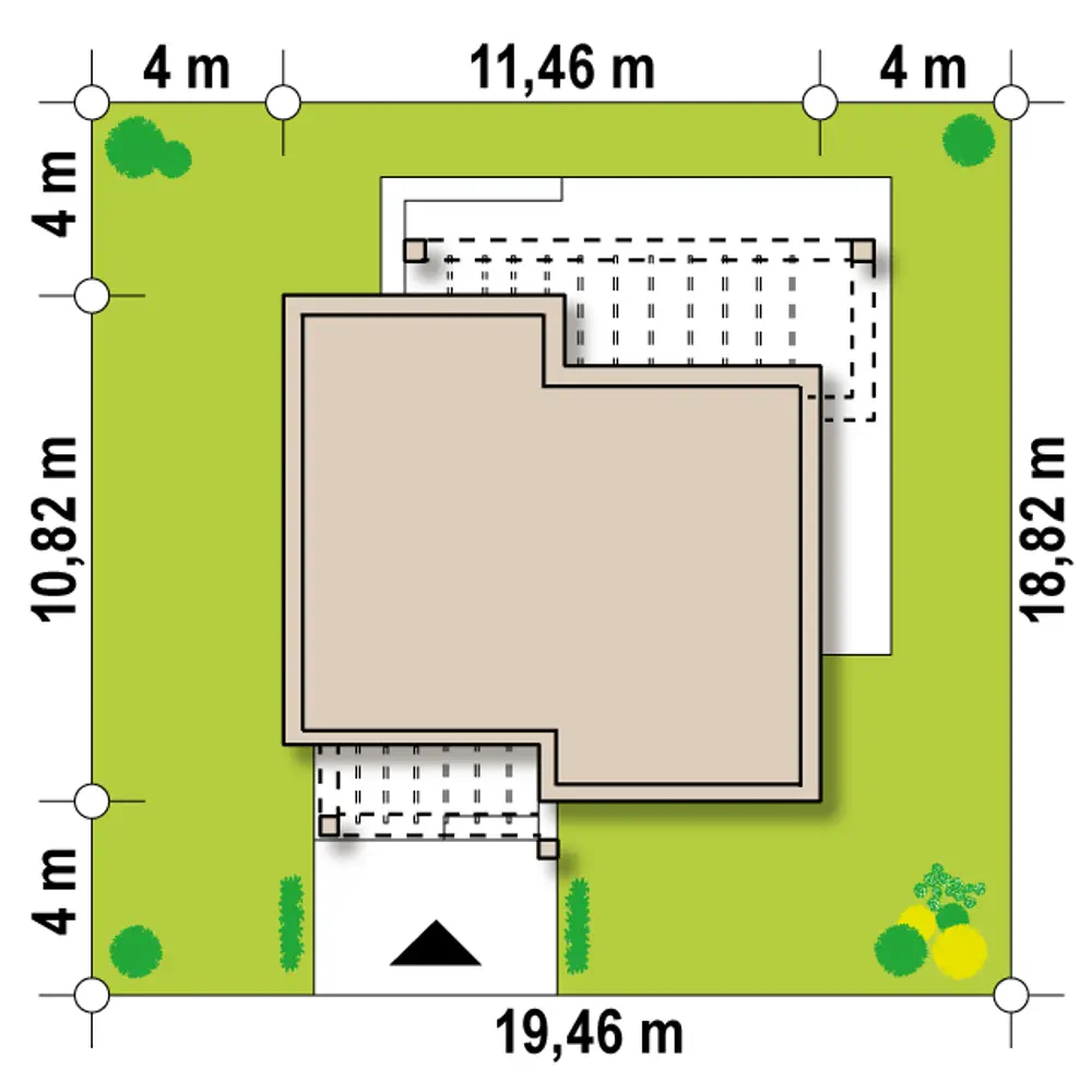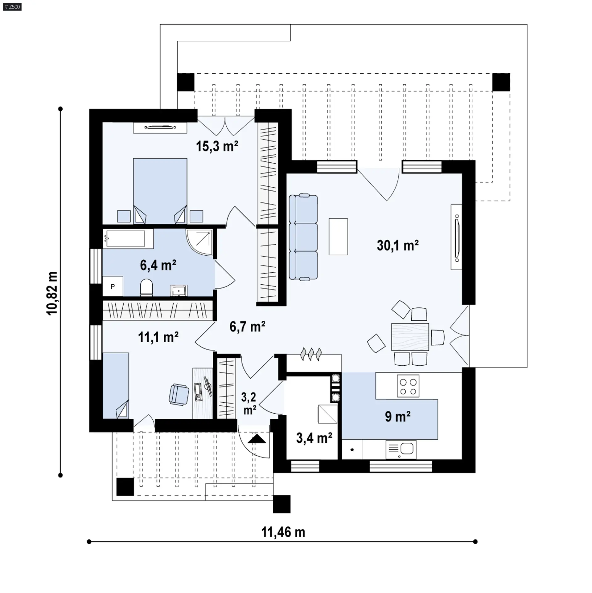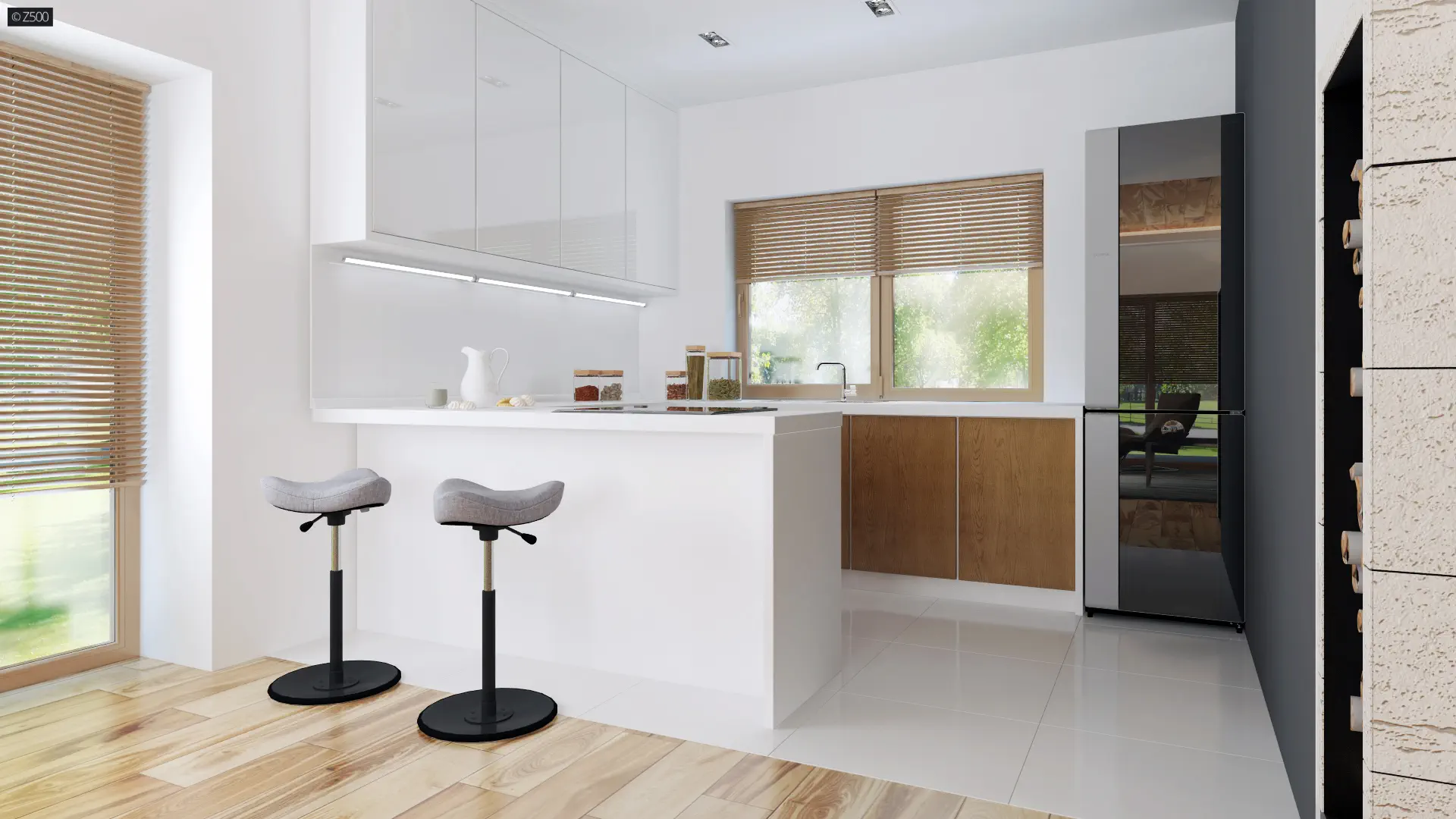 Zx105 to kompaktowy dom parterowy z płaskim dachem dla 2-3 osobowej rodziny.