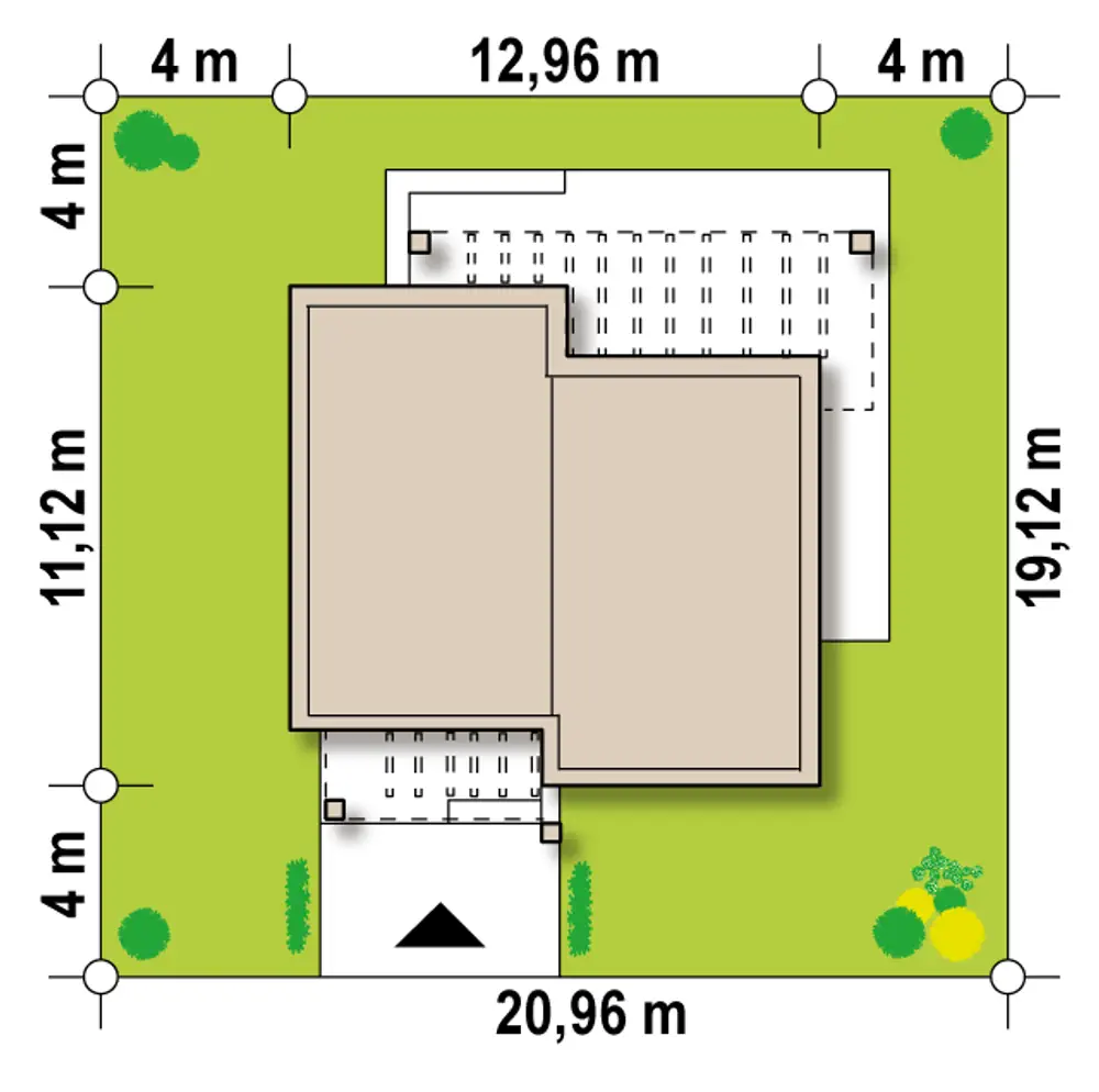 Kompaktowy dom w nowoczesnym stylu z trzema pokojami oraz własnymi garderobami.