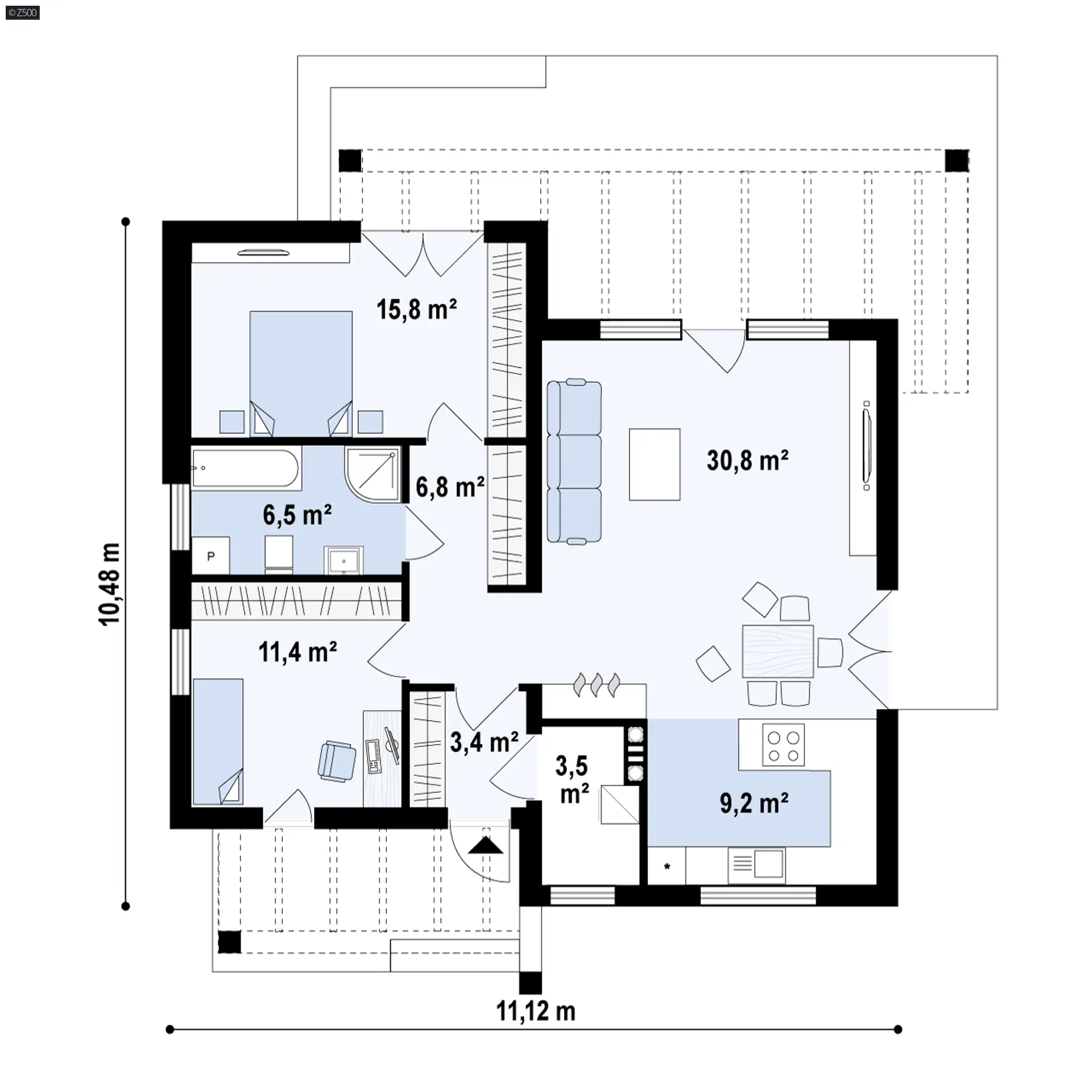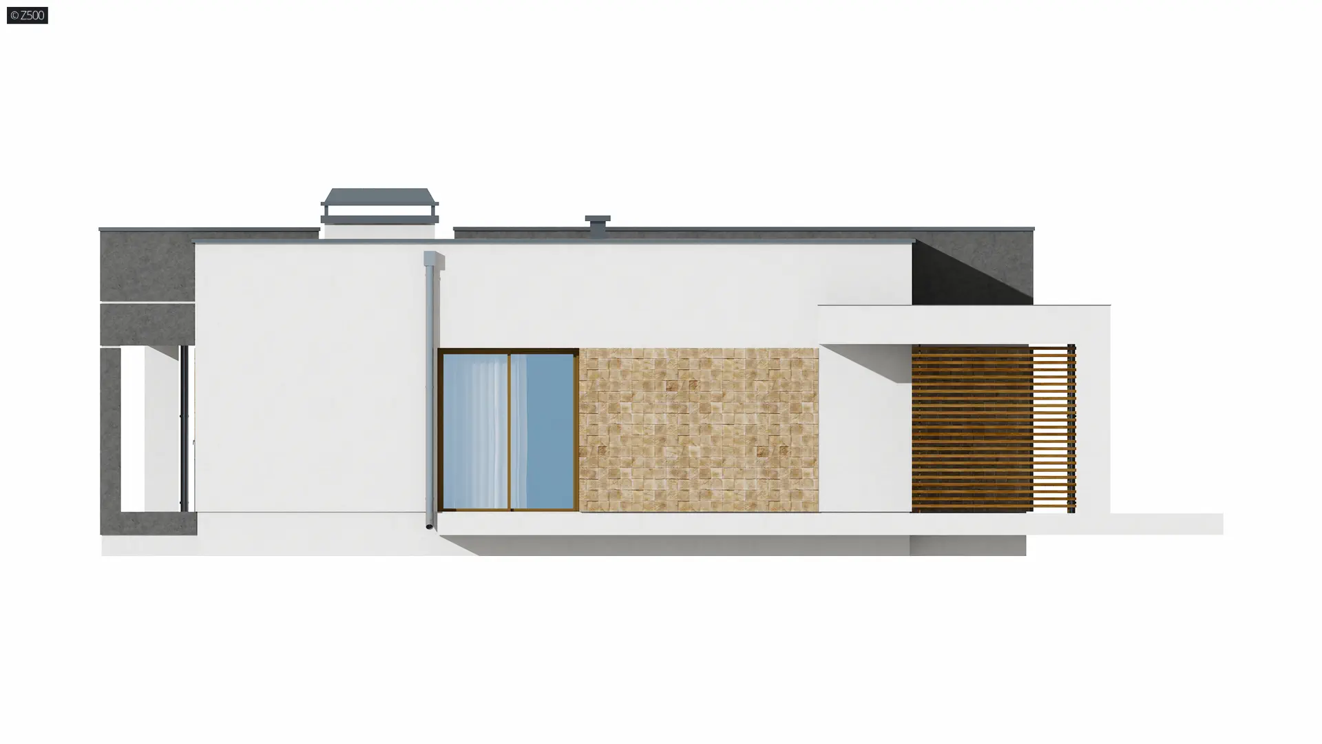 Zx105 to kompaktowy dom parterowy z płaskim dachem dla 2-3 osobowej rodziny.
