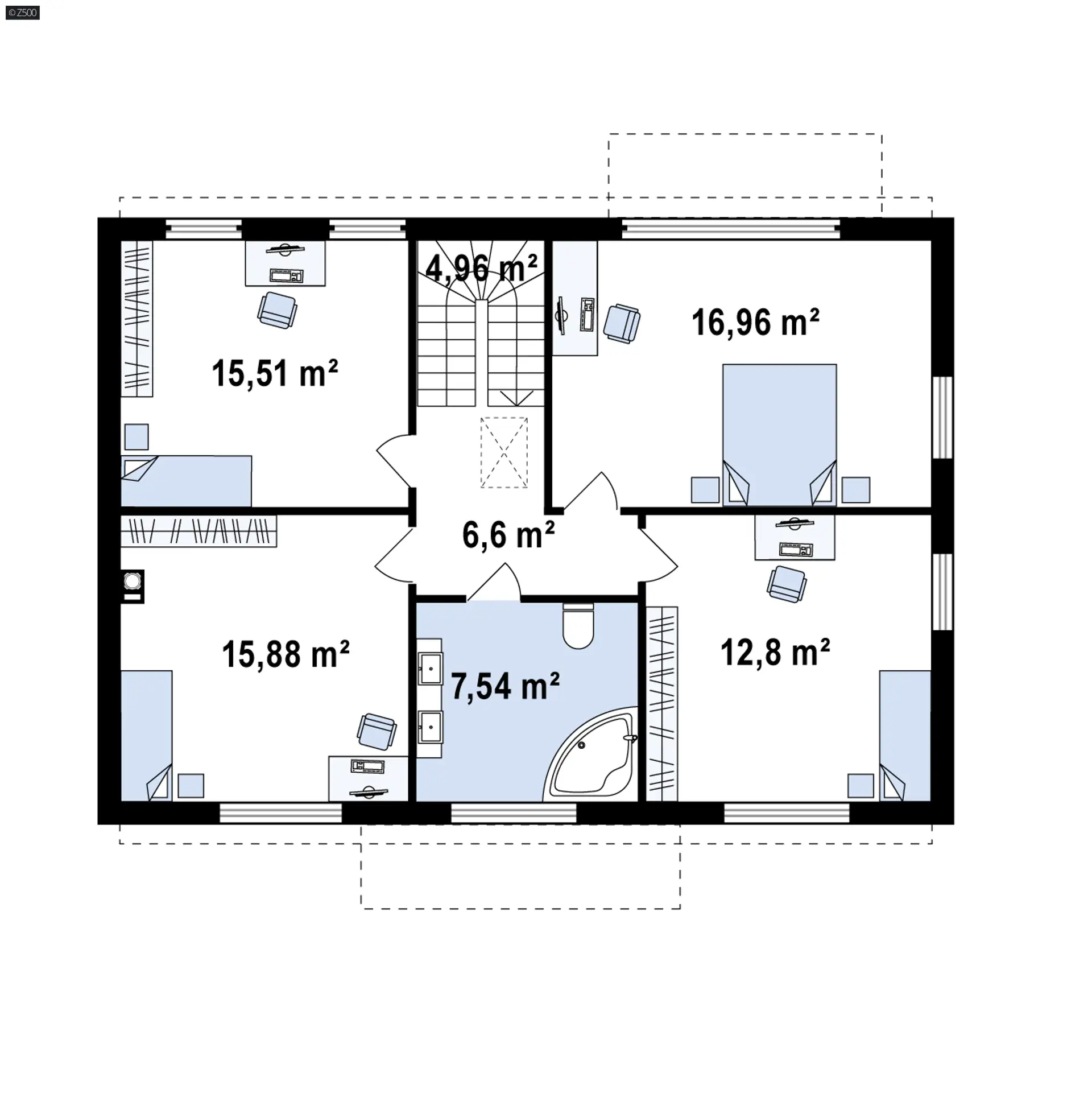 Zx11 C to projekt piętrowego domu z dachem dwuspadowym.