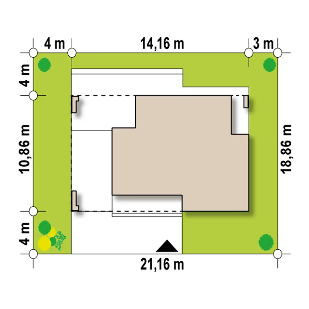 To, co wyróżnia projekt spośród innych, to otwarty garaż-wiata, który stanowi integralną część budynku. Garaż-wiatę można przekształcić na etapie adaptacji również w garaż pełny, osłonięty z czterech, a nie z dwóch stron.