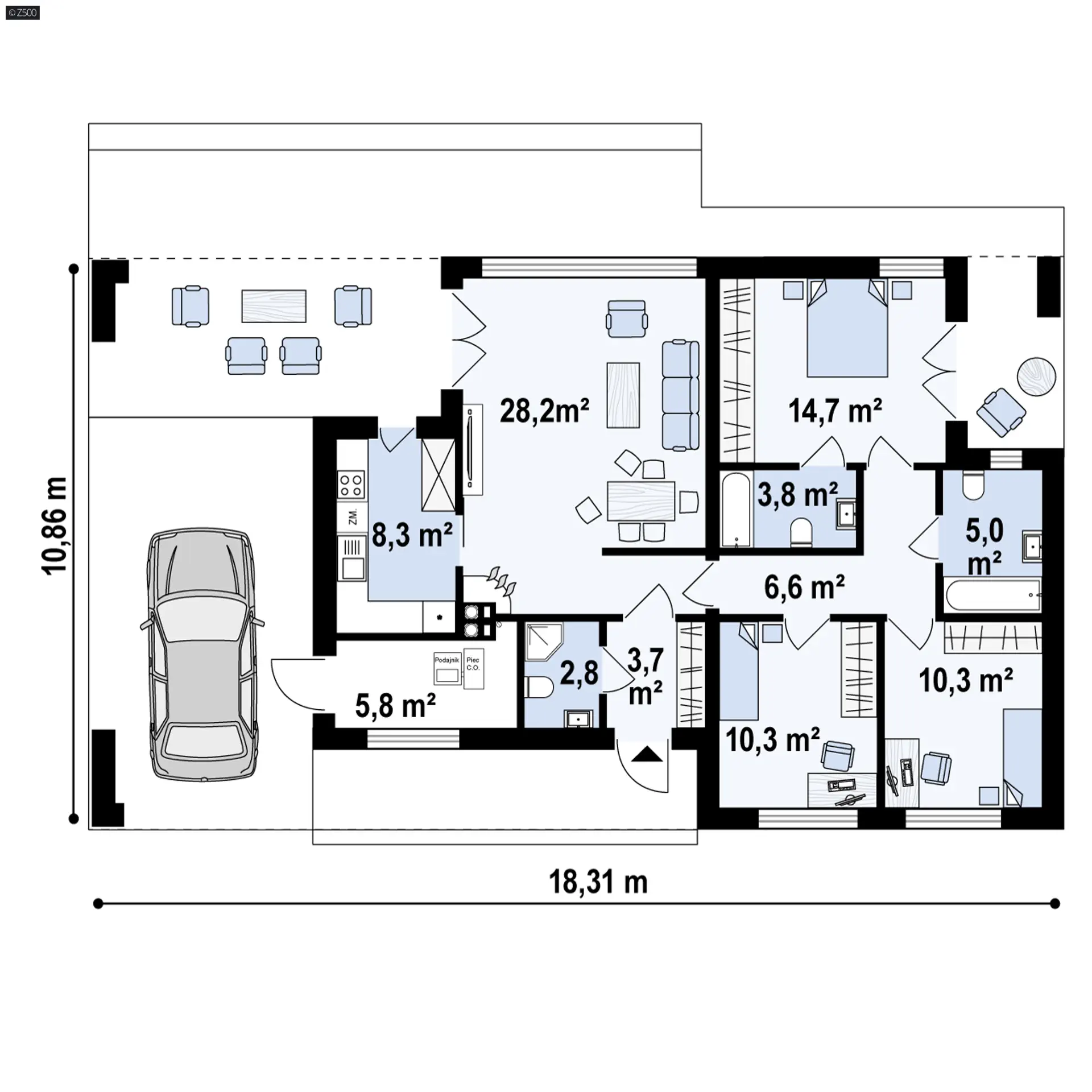 Nowoczesny parterowy dom z otwartym garażem o pow. użytkowej 100m2