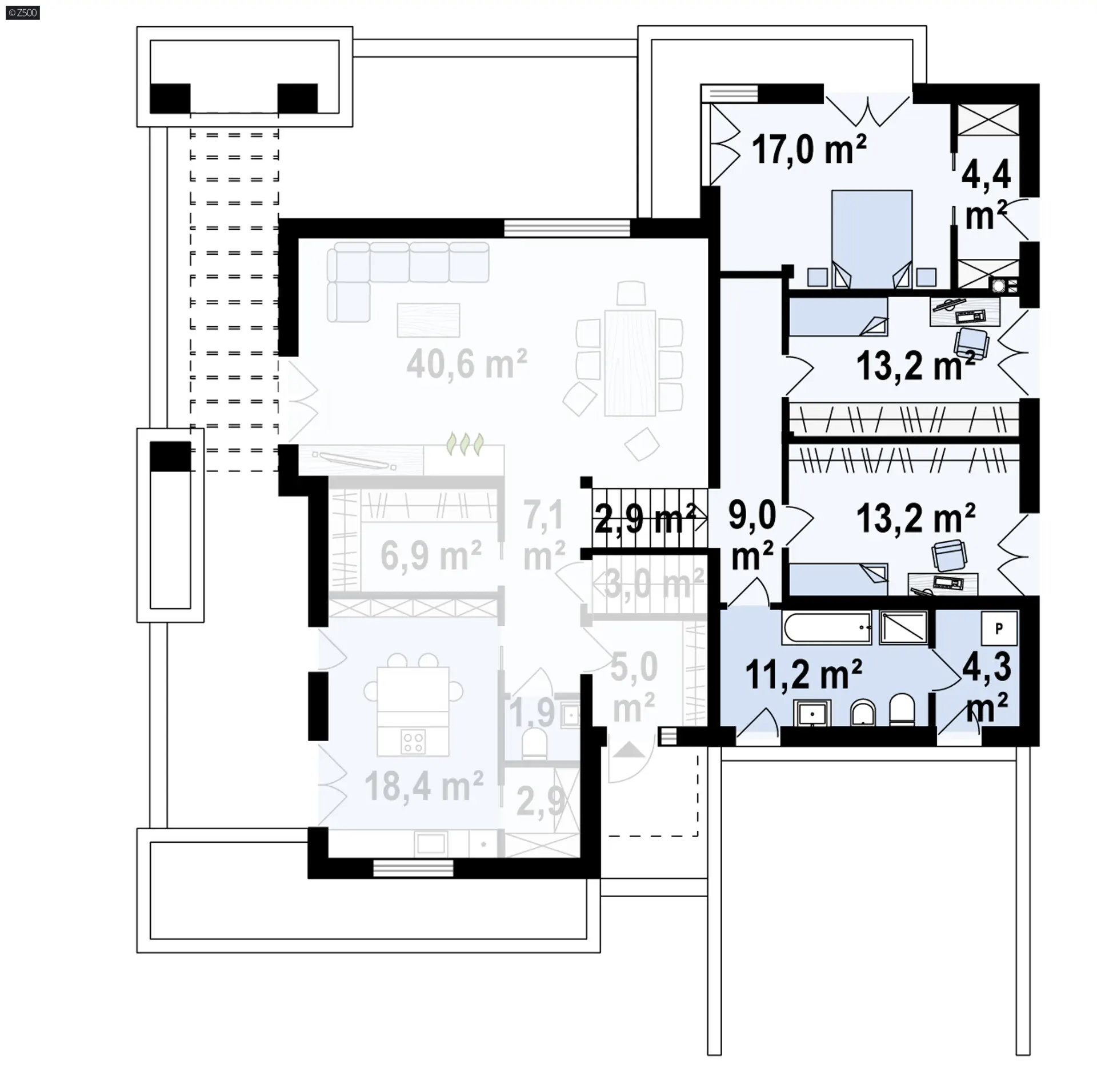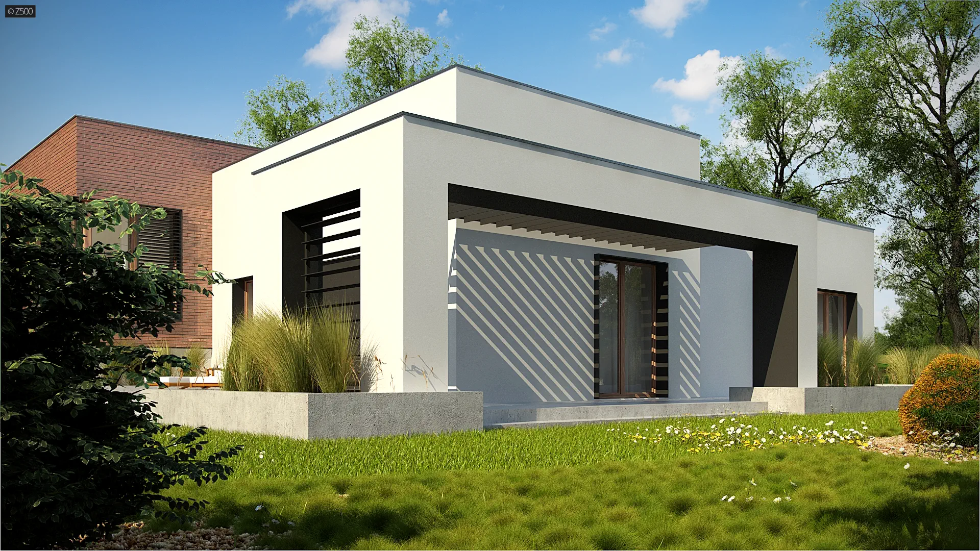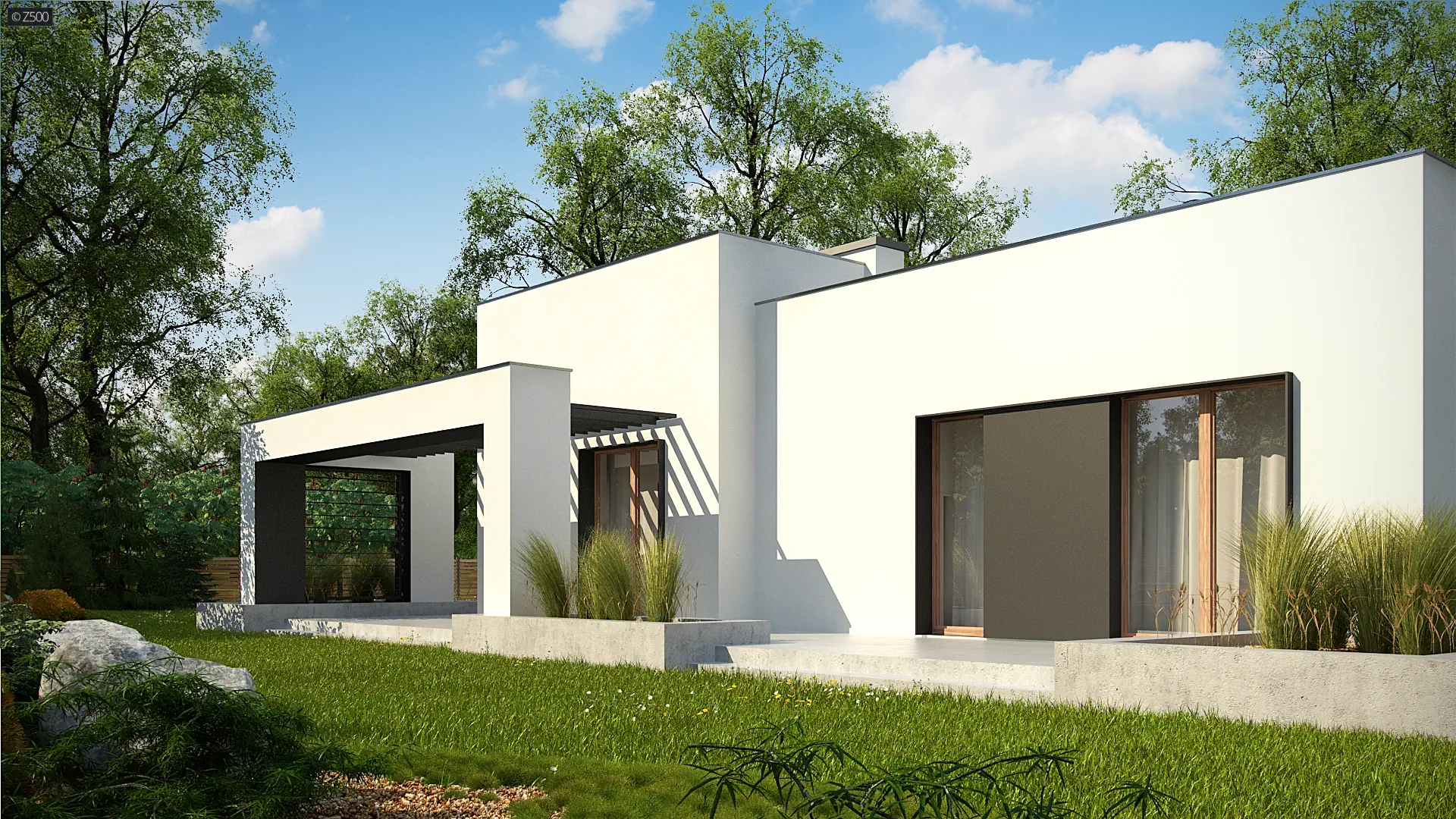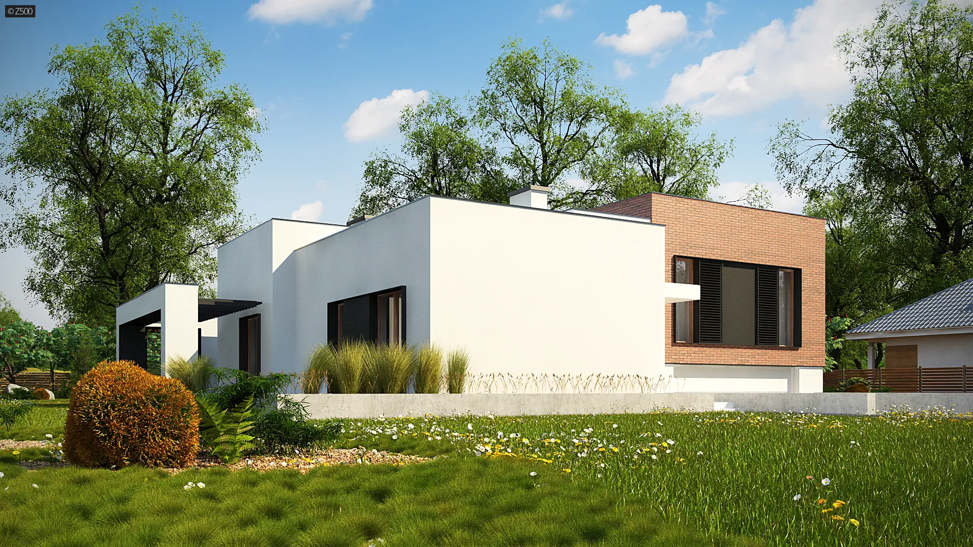 Projekt domu Zx 132 jest przeznaczony dla osób lubiących nowoczesny styl i chcących wyraźnie oddzielić dzienną przestrzeń życia od nocnej.