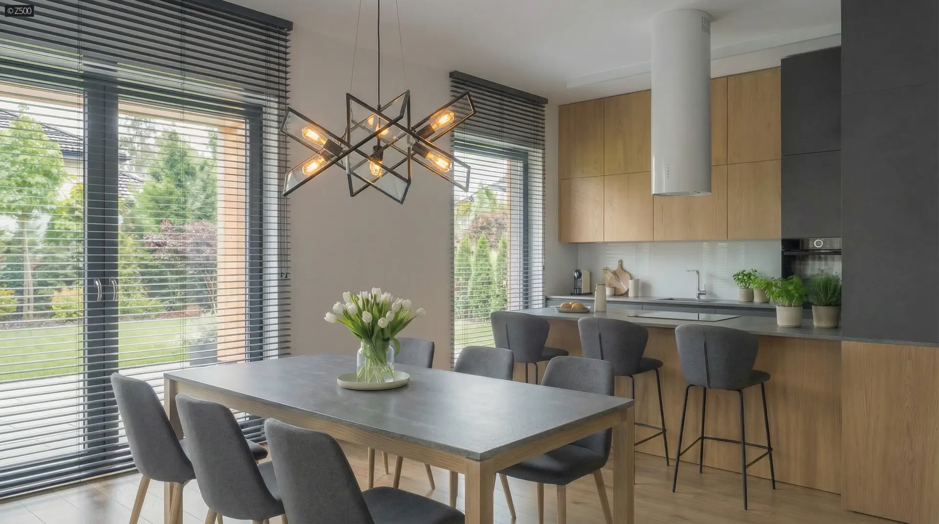 Prawa część domu jest częścią dzienną, lewa nocną. Kuchnię połączono z jadalnią i salonem na zasadzie open space. Dzięki temu jest przestronnie i możemy cieszyć się naszą reprezentacyjną powierzchnią.