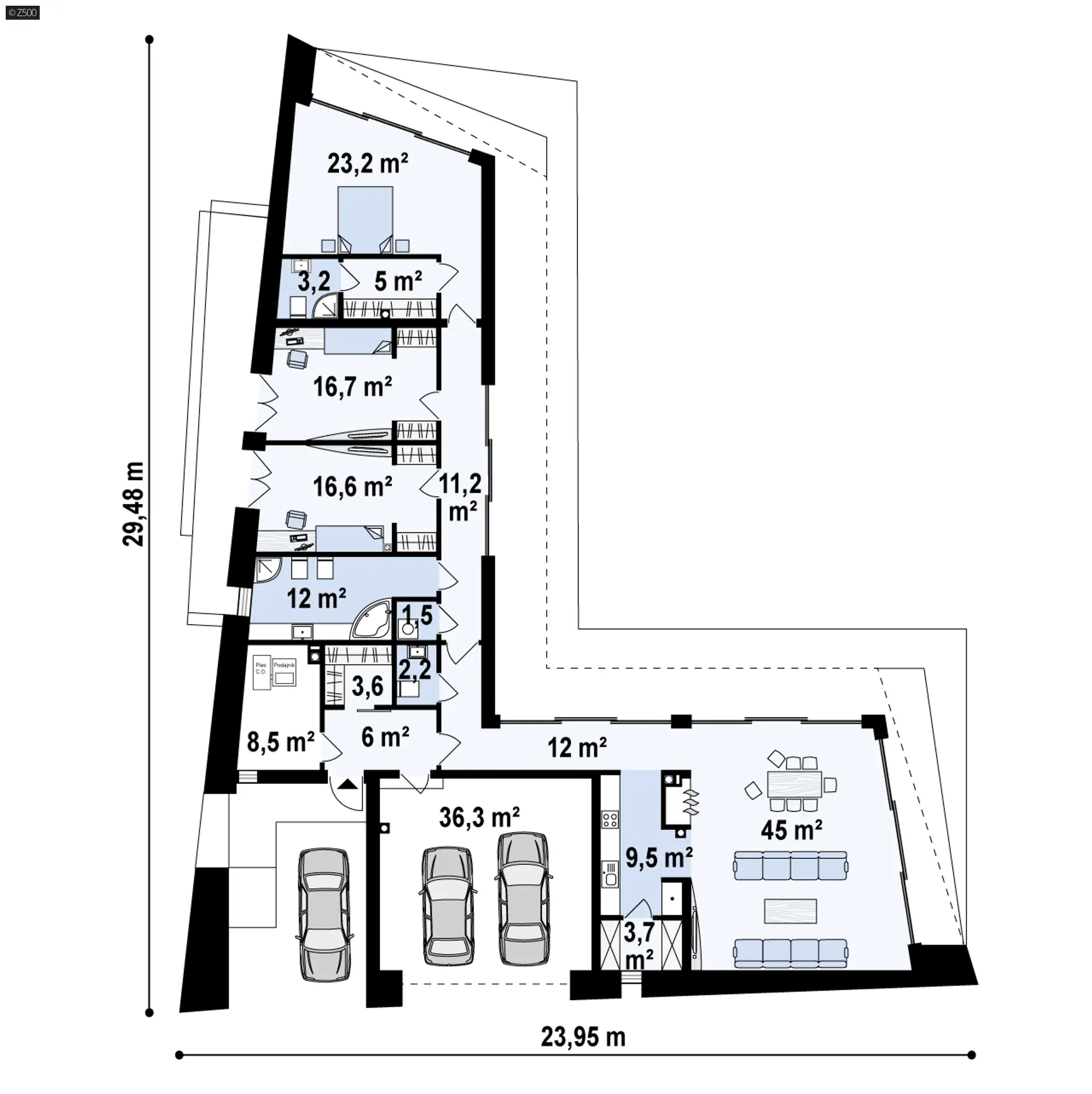 Projekt Zx142 dedykowany jest dla osób wymagających, nietuzinkowych, lubiących się wyróżniać. Architekci pragnęli stworzyć projekt pochylonej litery „L” o nieprostokreślnym charakterze.