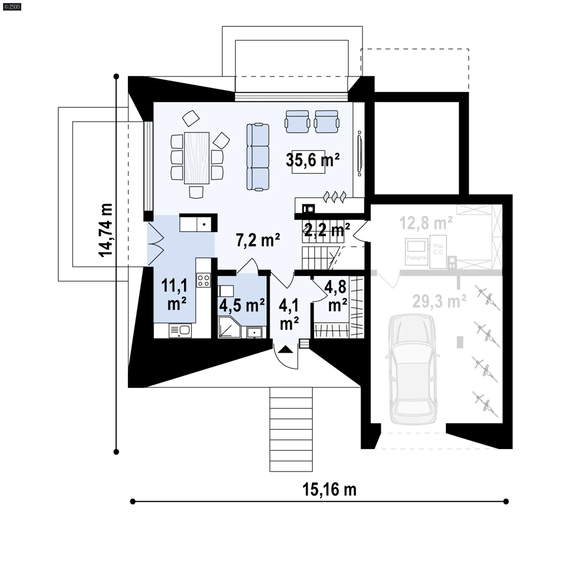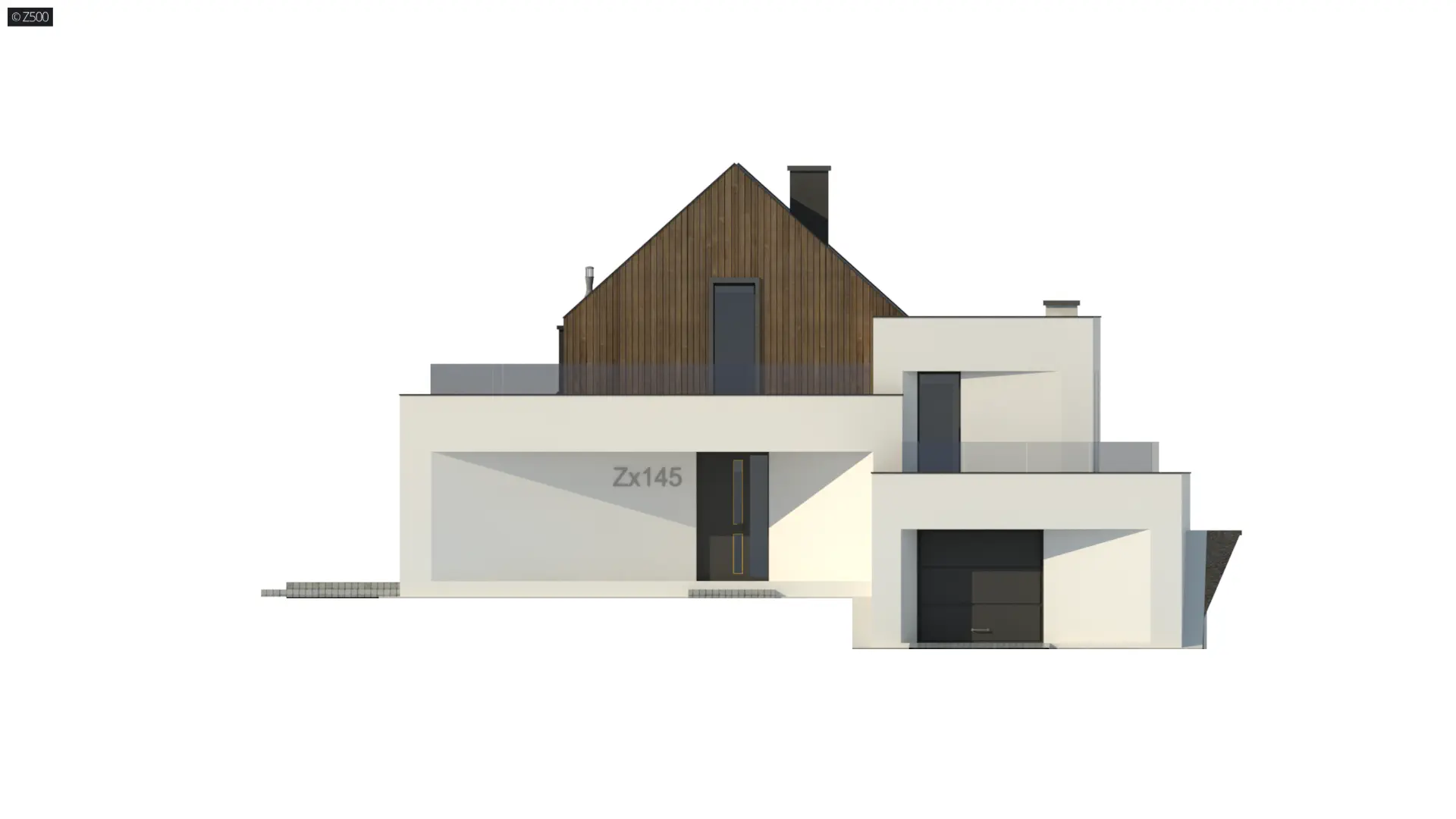 Zx145 jest propozycją domu , z półpiętrami, podpiwniczeniem i poddaszem użytkowym, tradycyjnym dachem dwuspadowym i garażem na półtora stanowiska. Powierzchnia użytkowa wynosi ok. 130 m2, a dodatkową zaletę stanowi fakt, iż może on zostać wybudowany na skarpie.