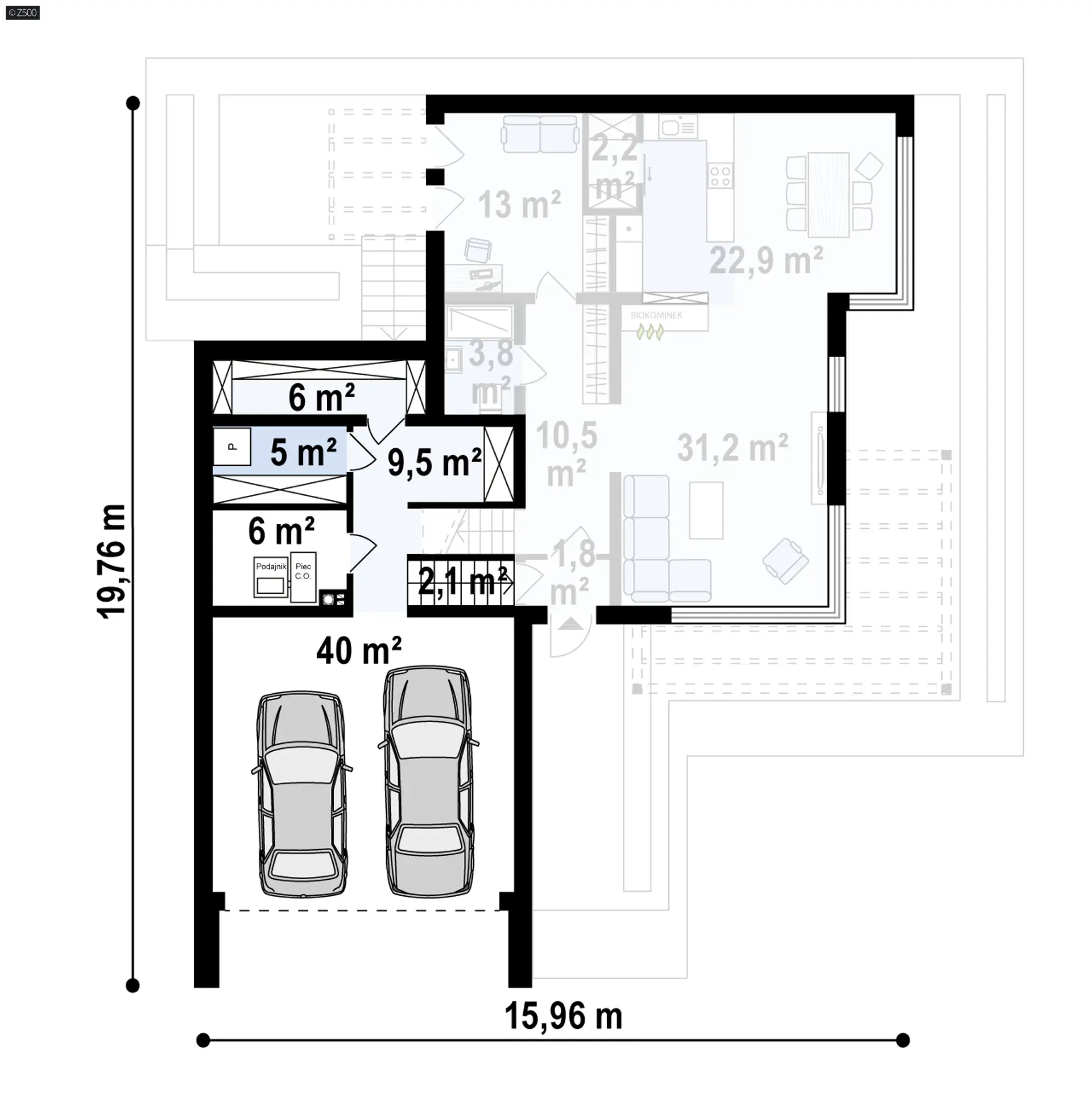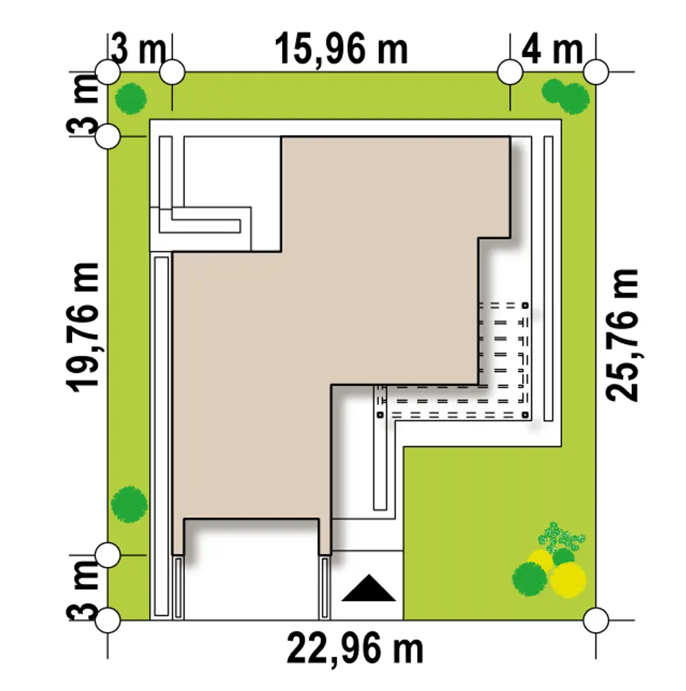 Unikalność w przedstawionym Państwu projekcie stanowi jego dedykacja. Proponowany jest osobom, które pragną nie budować budynku w przedniej części działki, blisko ulicy, lecz cofnąć dom w głąb działki, pozostawiając swobodną przestrzeń od strony frontu, nie zaś od strony ogrodu.