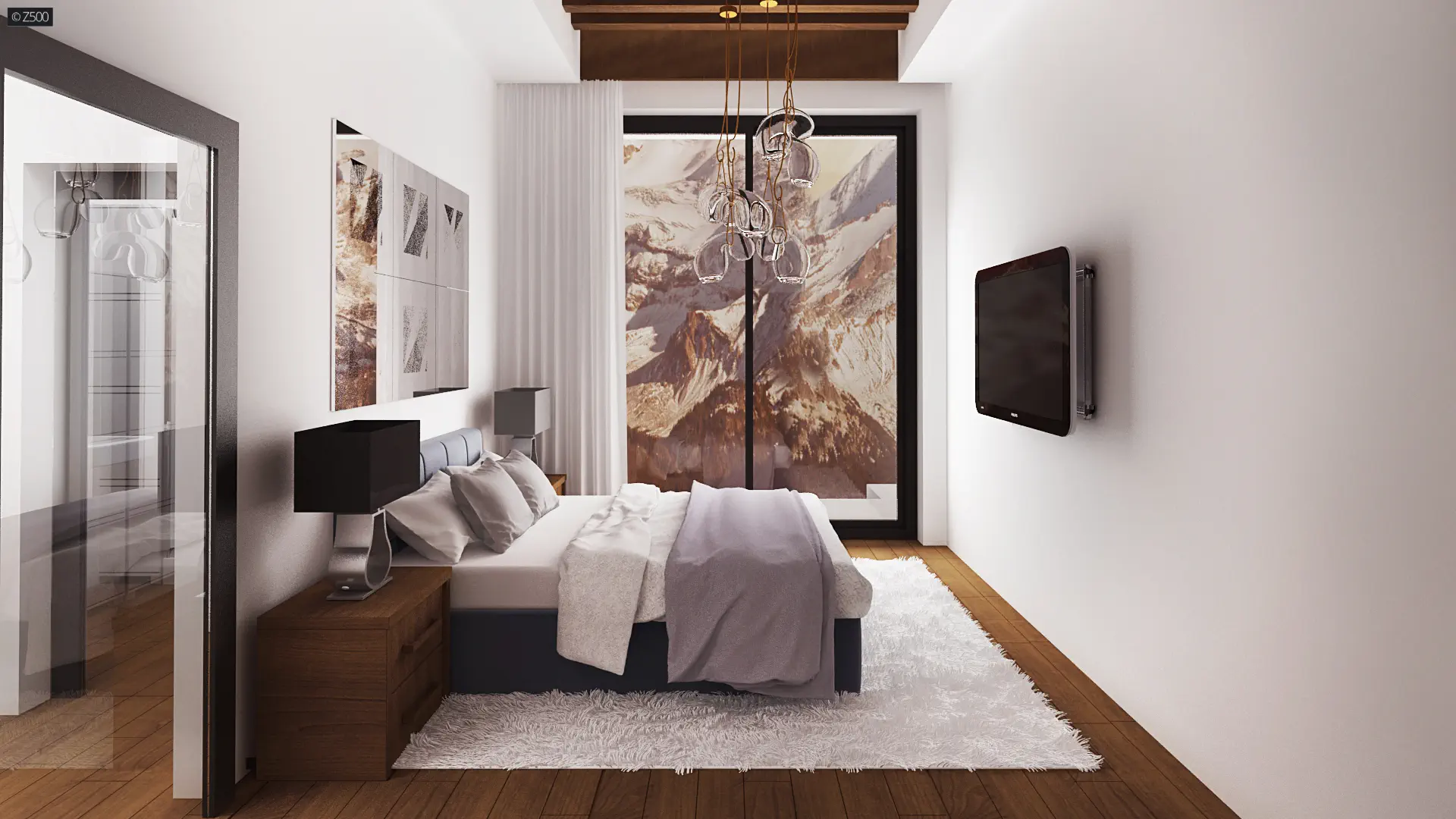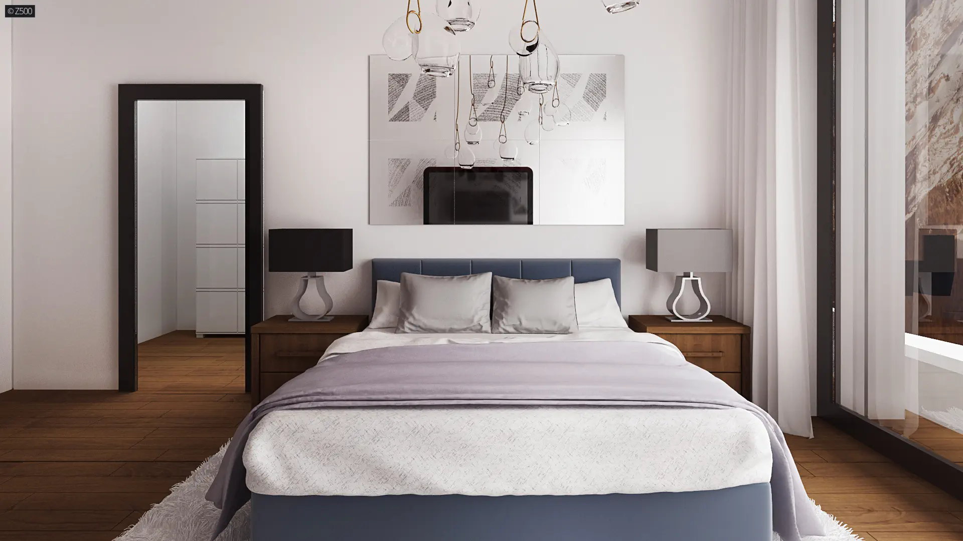 Piętro domu to 3 sypialnie z czego jedna główna została umieszczona na końcu korytarza i przeszklona z 3 stron. Każdy pokój posiada garderobę a dużą łazienkę spokojnie można nazwać pokojem kąpielowym.