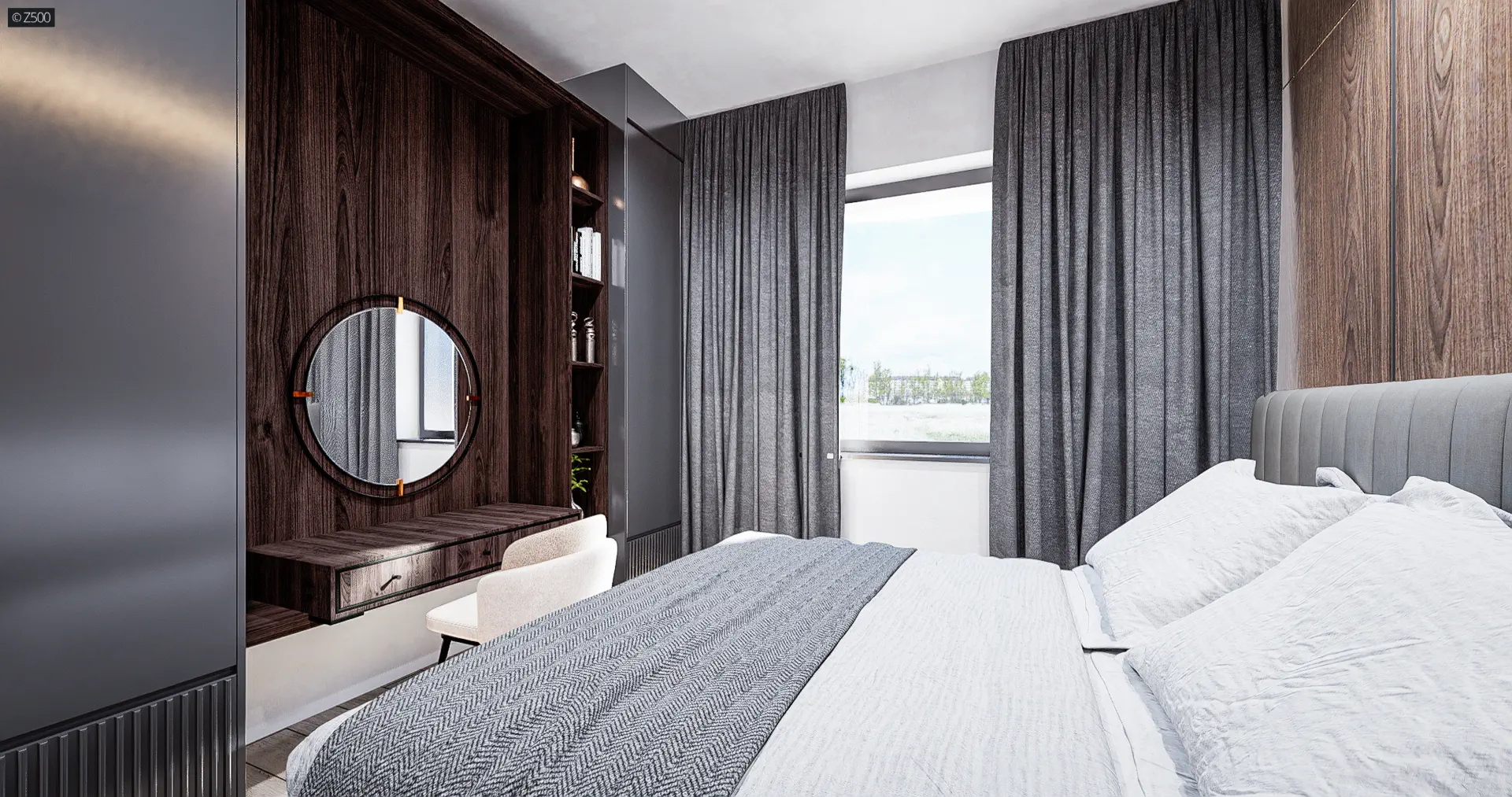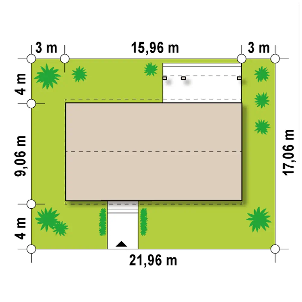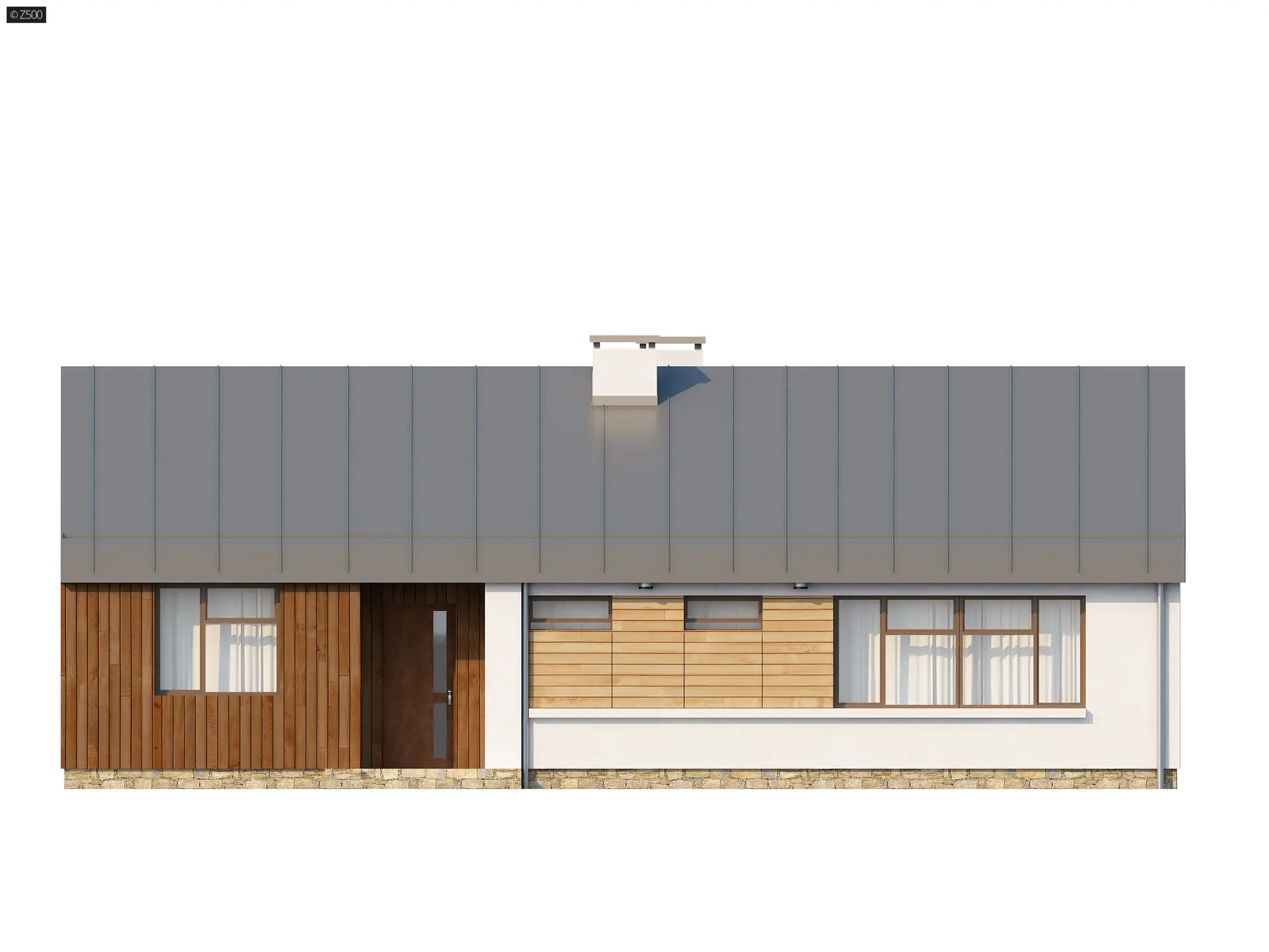 Zx17 to mały i tani w realizacji dom parterowy z dwuspadowym dachem. Prosta a zarazem nowoczesna forma pozwoli na szybką i ekonomiczną budowę. Drewniane elementy okładzin dodadzą uroku elewacjom. Podcień wejściowy zapewni nam daszek w deszczowy dzień, a zagłębienie sprawi że wiatr nie będzie nam przeszkadzał podczas otwierania drzwi. Z dużej sieni, gdzie zaprojektowaliśmy dużą szafę na ubrania przechodzimy do foremnego holu skąd mamy dostęp do wszystkich pomieszczeń. Układ pomieszczeń Zx17 zaprojektowano na planie prostokąta z holu głównego jest dostęp do trzech pokoi oraz przestronnej łazienki.