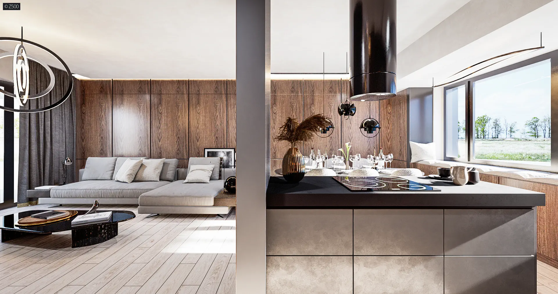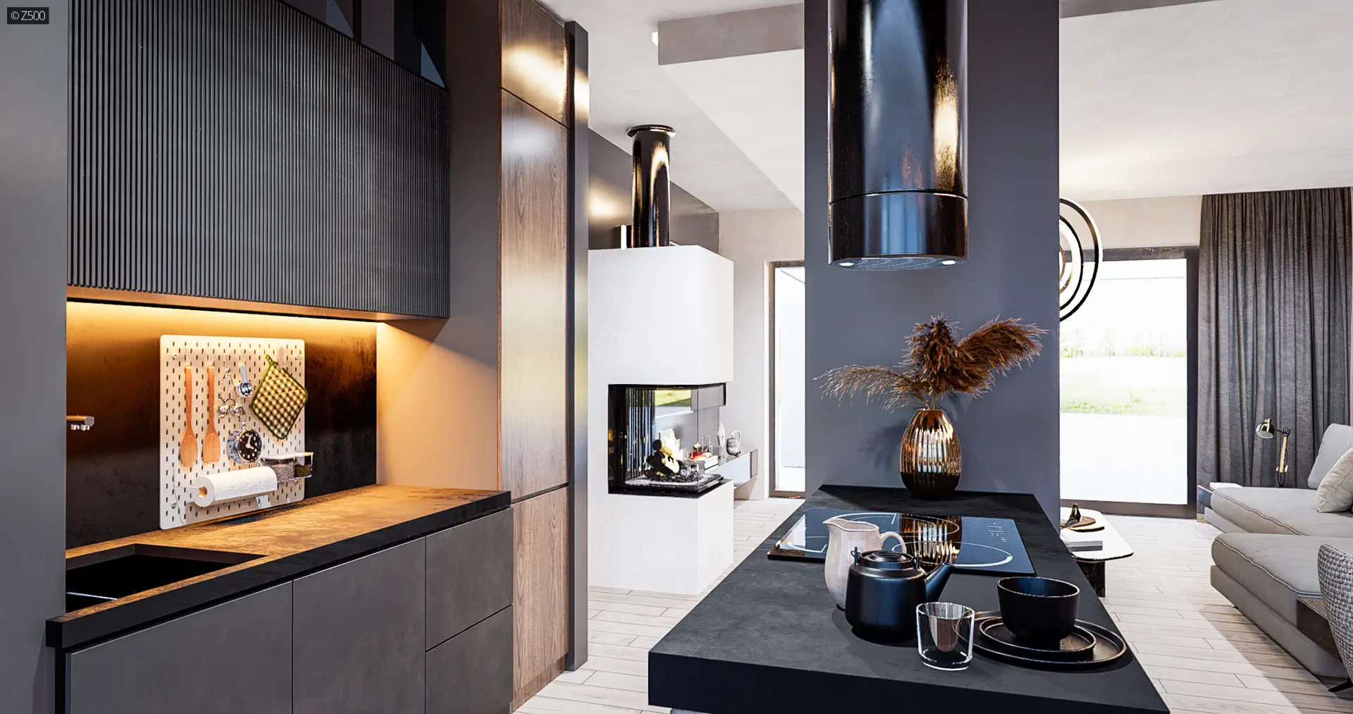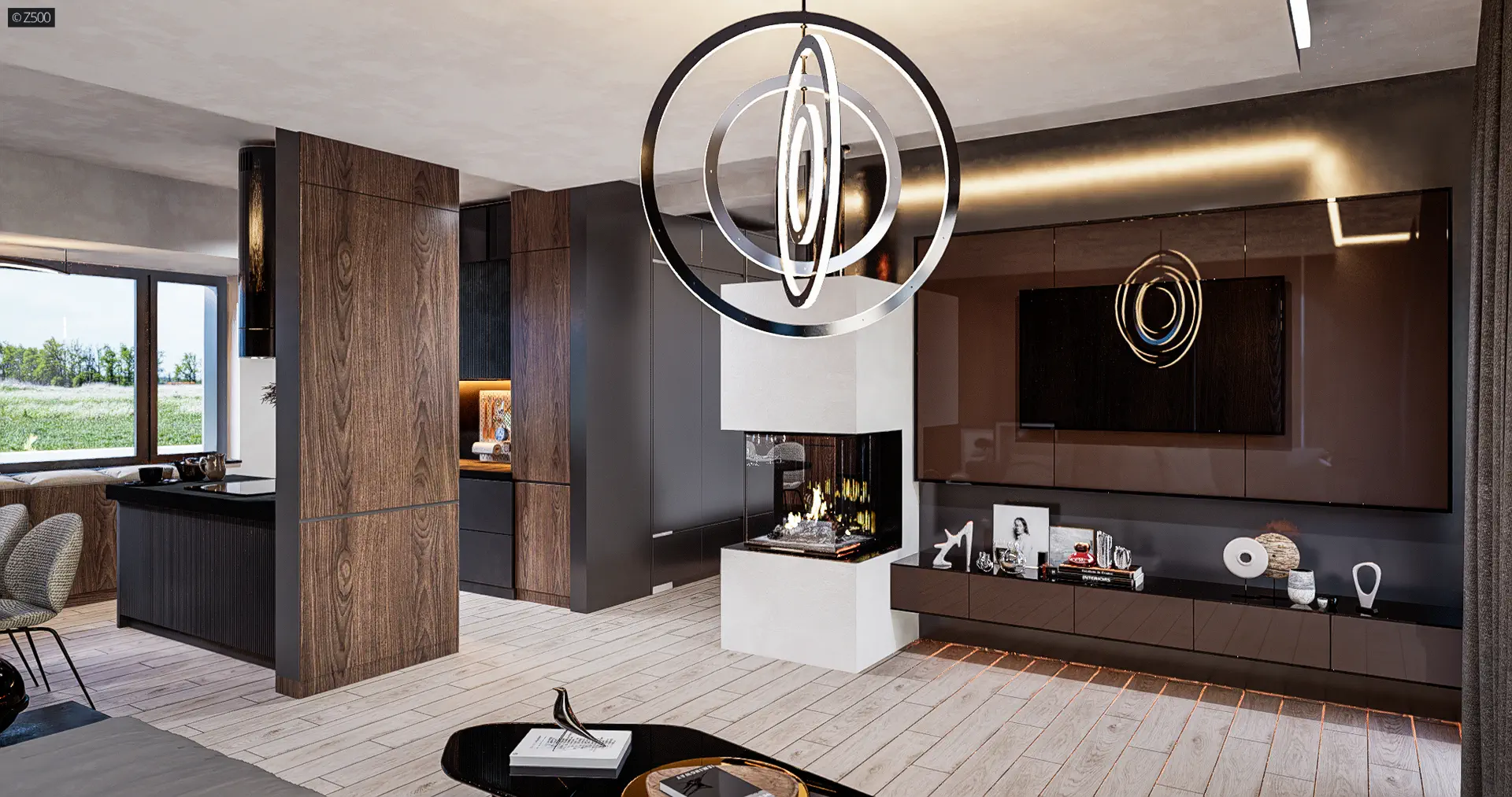 Zaletą domu jest połączenie kuchni, jadalni oraz salonu, co powiększy optycznie przestrzeń dzienną domu. Salon i jadalnia posiadają wyjścia na zadaszony taras poprzez suwane drzwi balkonowe. Zx17 to ciekawą propozycją dla osób ceniących wygodę i funkcjonalność na jednym poziomie. Ze względu na swoje małe wymiary nadaje się także na małą działkę.