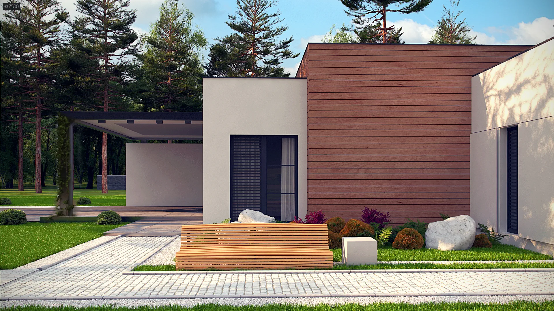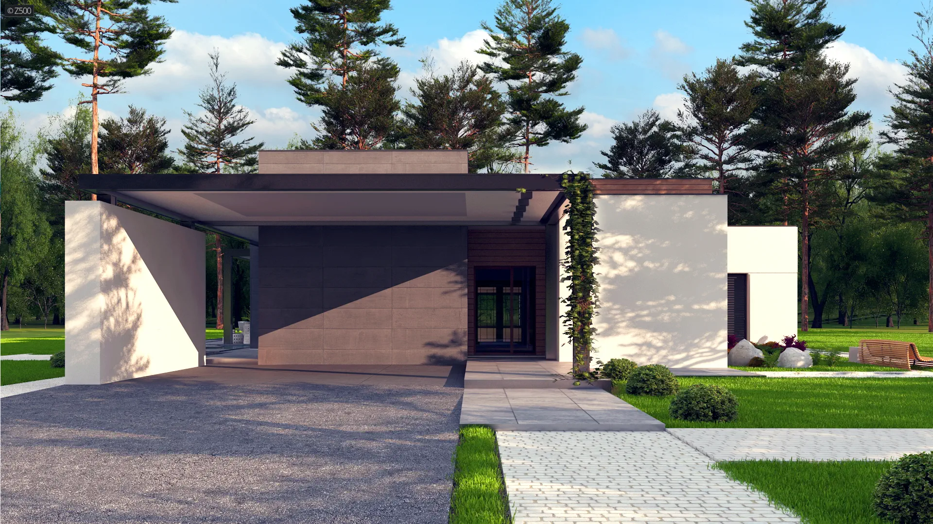 Nowoczesny parterowy dom z wiatą garażową w wyjątkowym designie