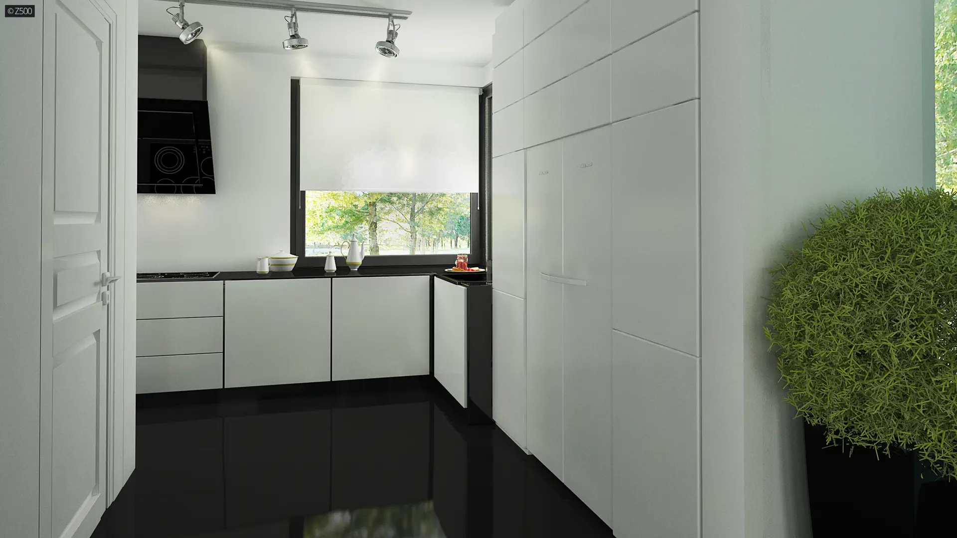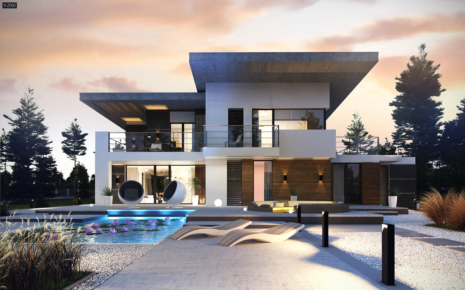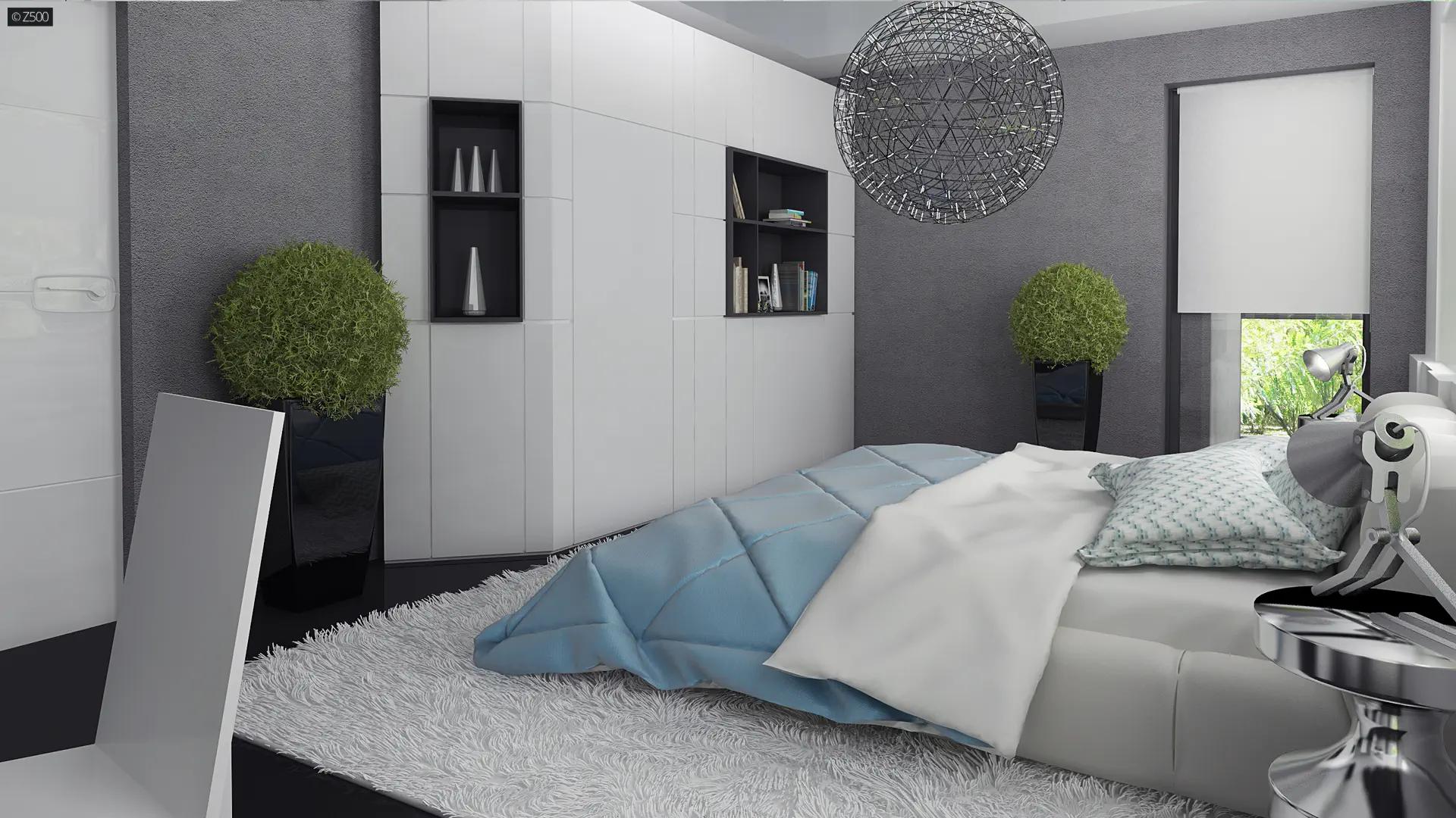 Nowoczesny piętrowy dom z garażem oraz tarasem, sypialnia na parterze z łazienką
