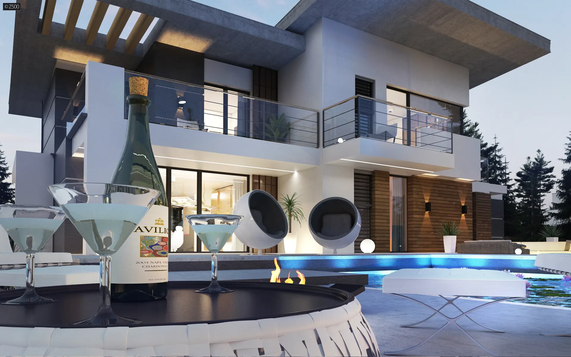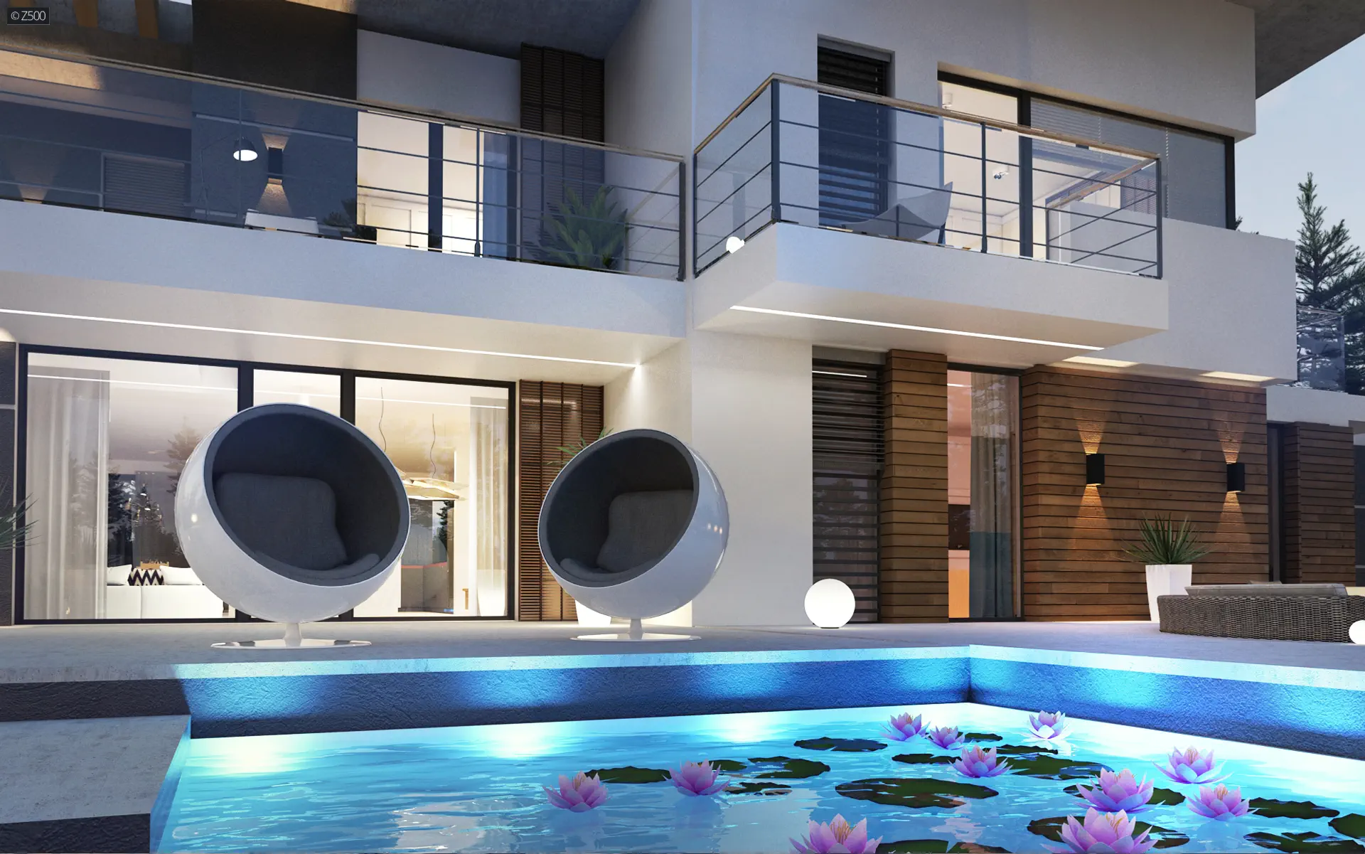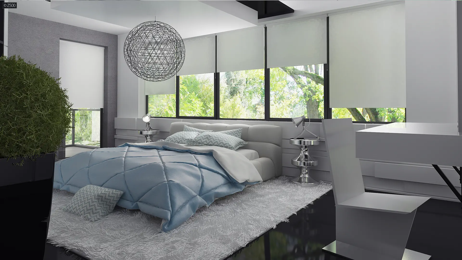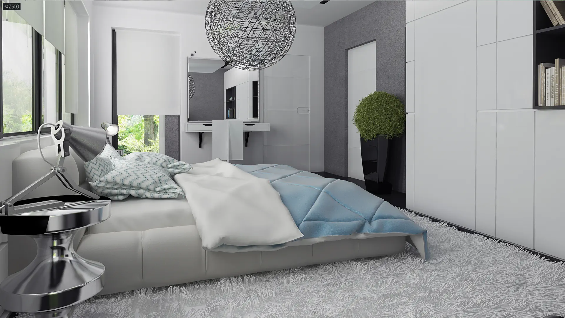 Nowoczesny piętrowy dom z garażem oraz tarasem, sypialnia na parterze z łazienką