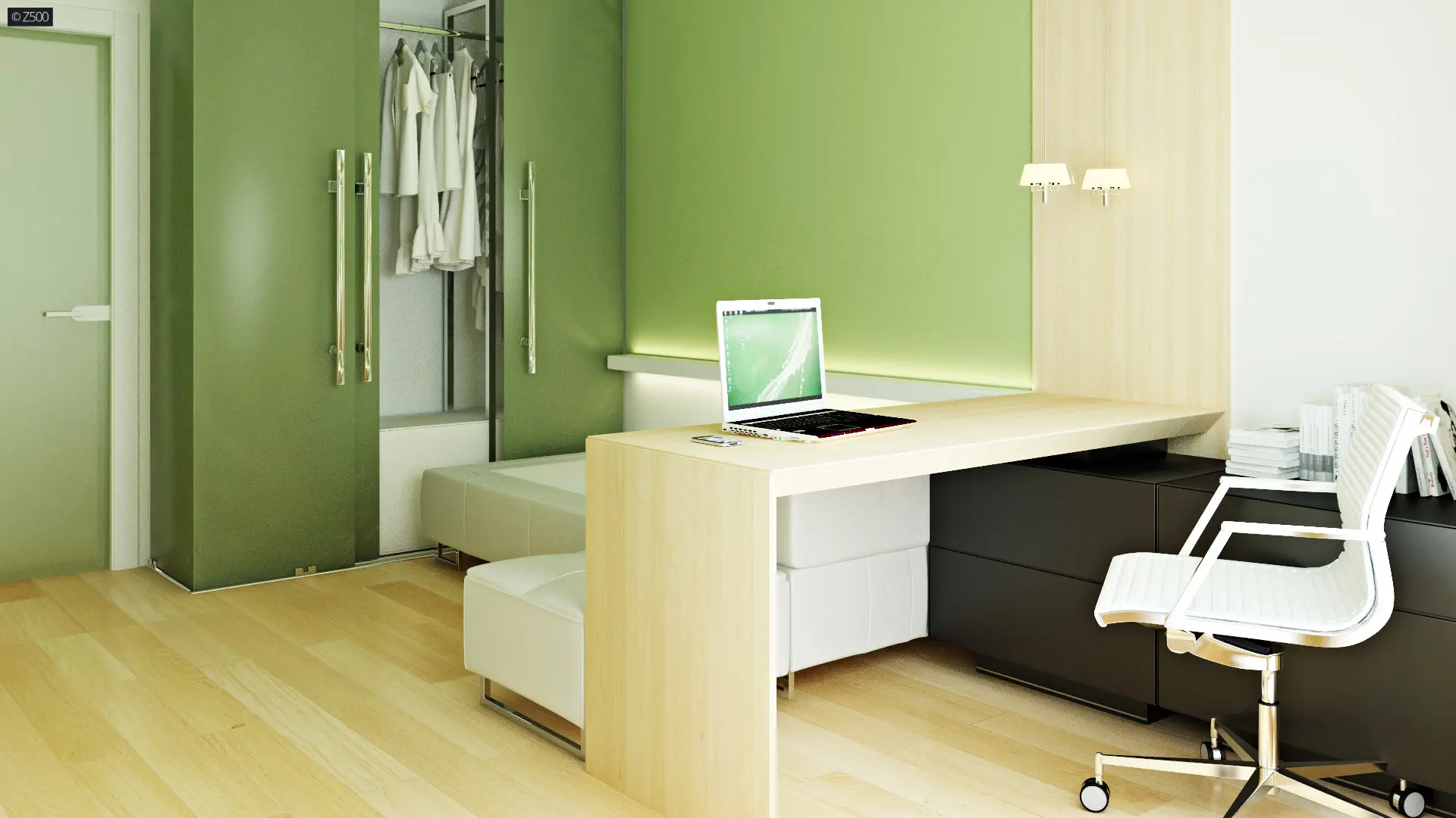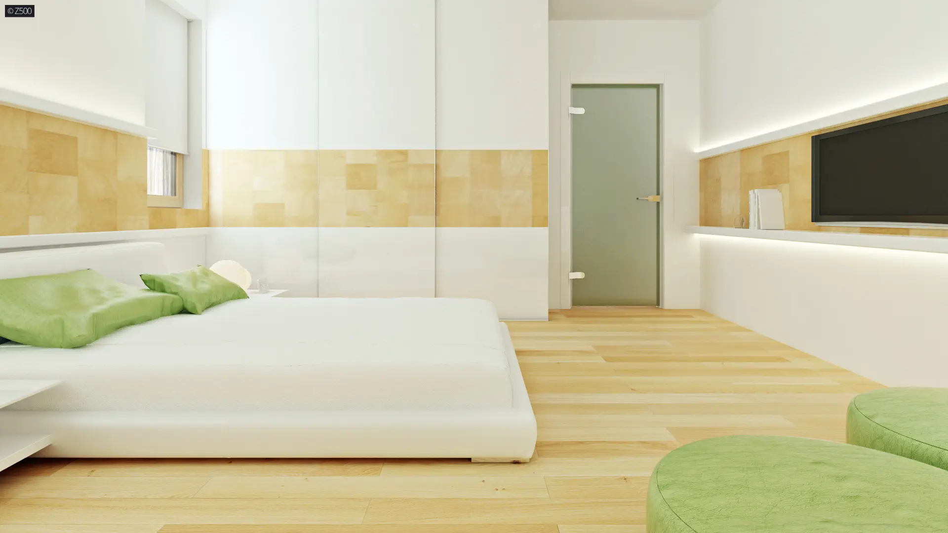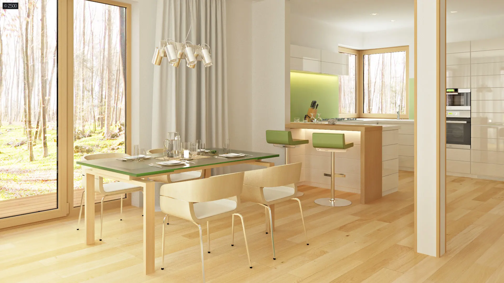 Zaprojektowano tu dwie pełne kondygnacje, które dzielą się na dwie strefy. Parter to część dzienna, znajduje się tu przestronny salon, który tworzy otwartą przestrzeń z jadalnią i kuchnią. W lewym skrzydle domu znajduje się jednostanowiskowy garaż z bezpośrednim przejściem do sieni oraz pomieszczenia gospodarczego znajdującego się na jego tyłach. Piętro zaś to część nocna, znajdują się tu trzy wygodne sypialnie, każda z miejscem na dużą szafę, oraz komfortowa łazienka. Hol stanowi łącznik pomiędzy pomieszczeniami.