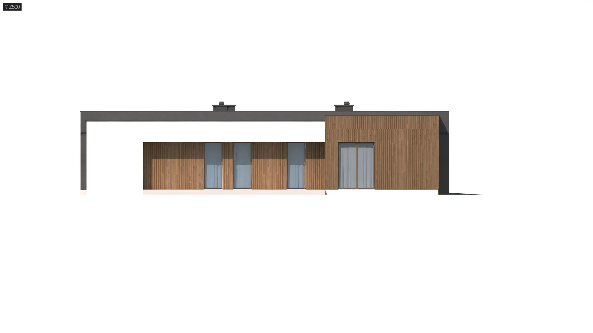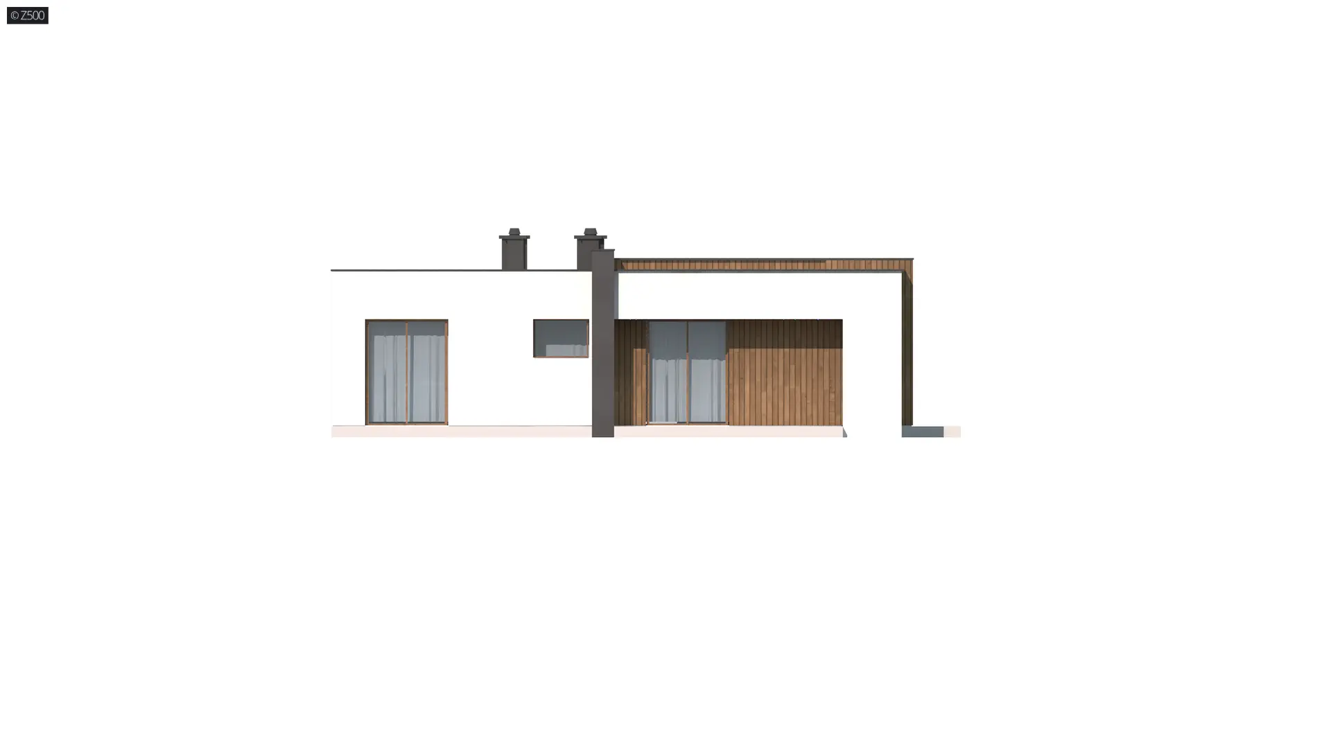 Zx49- to parterowy dom jednorodzinny z garażem o eleganckim, modernistycznym charakterze. Prosta, kubiczna forma została wzbogacona okładzinami z naturalnych materiałów na elewacjach. Zx49- zaprojektowano jako dom energooszczędny zharmonizowany z otoczeniem. Zadaszony taras powiększa przestrzeń o dodatkowe miejsce wypoczynku.