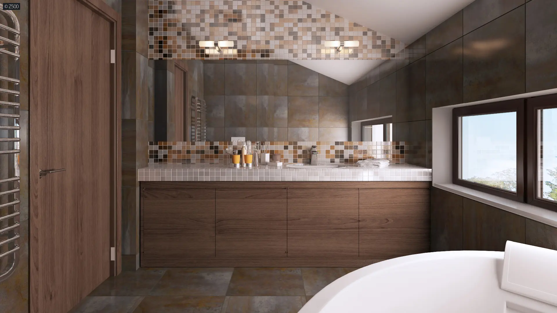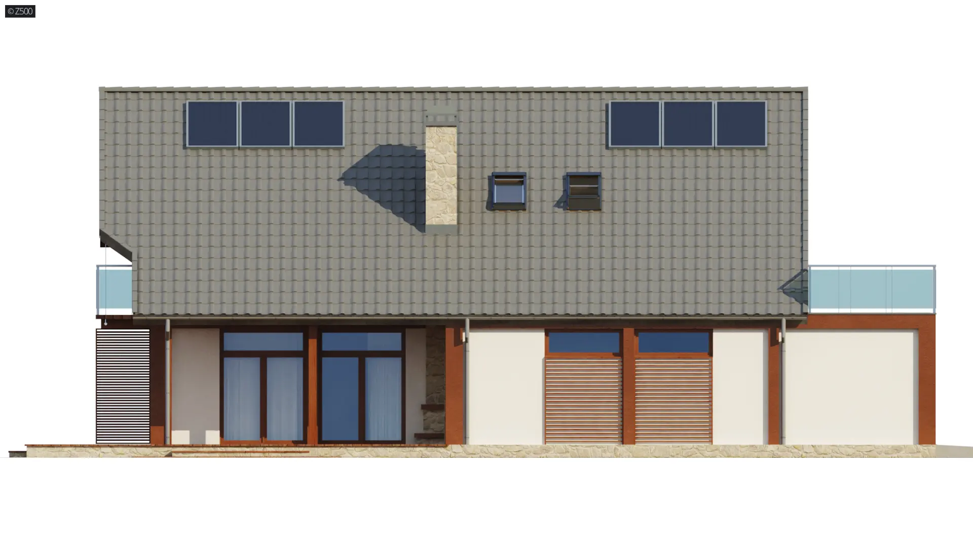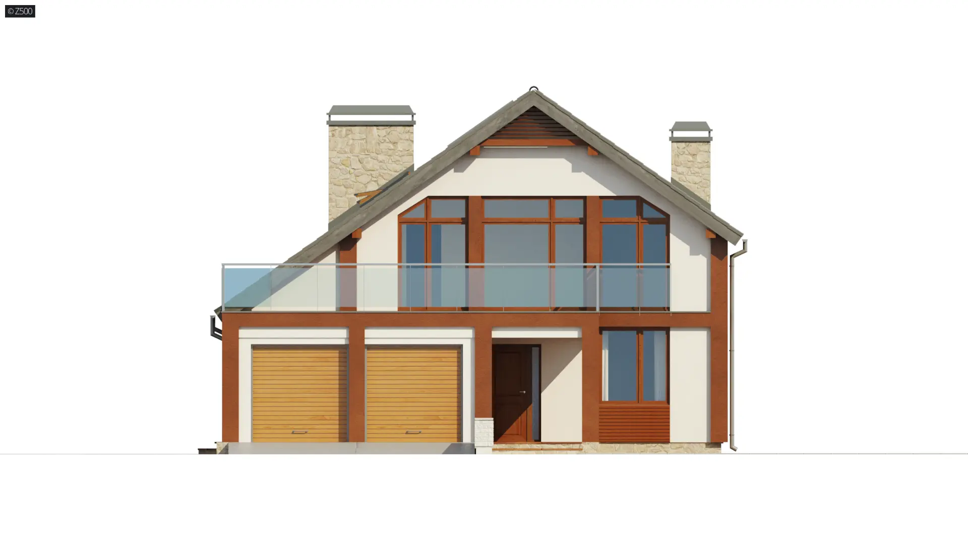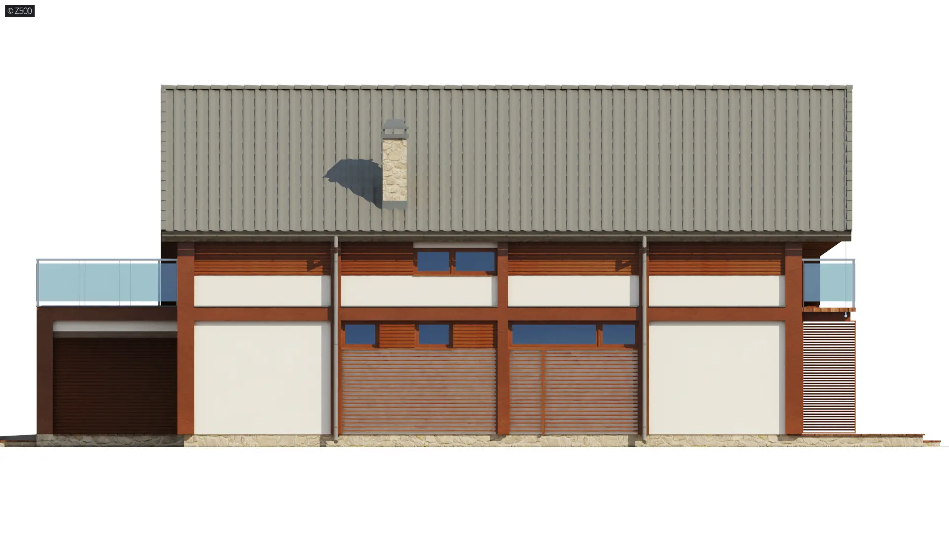 Projekt Zx50 jest nowoczesnym piętrowym domem z garażem dwustanowiskowym i tarasami na piętrze. Dach dwuspadowy oraz prosta bryła w połączeniu z naturalnymi okładzinami ścian sprawiają, że dom ma niepowtarzalny elegancki i współczesny wygląd. Duże okna powodują, że wnętrza są jasne i otwarte na otoczenie. Delikatne wstawki drewna stanowią subtelny element designu.