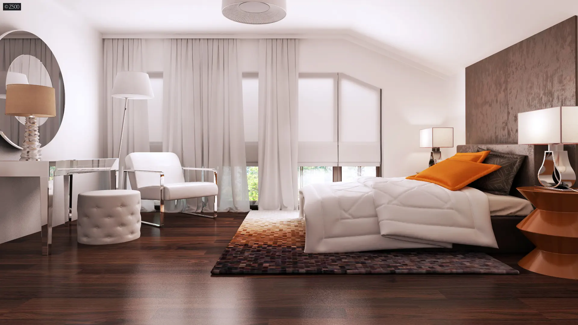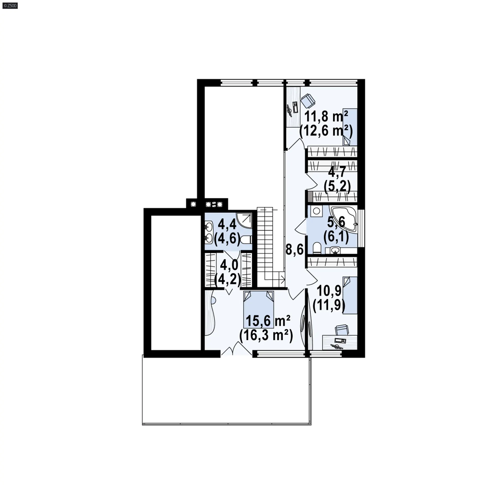 Na poddaszu sypialnie są połączone ciekawą antresolą nad holem i salonem. Sypialnia rodziców posiada własną garderobę i łazienkę.